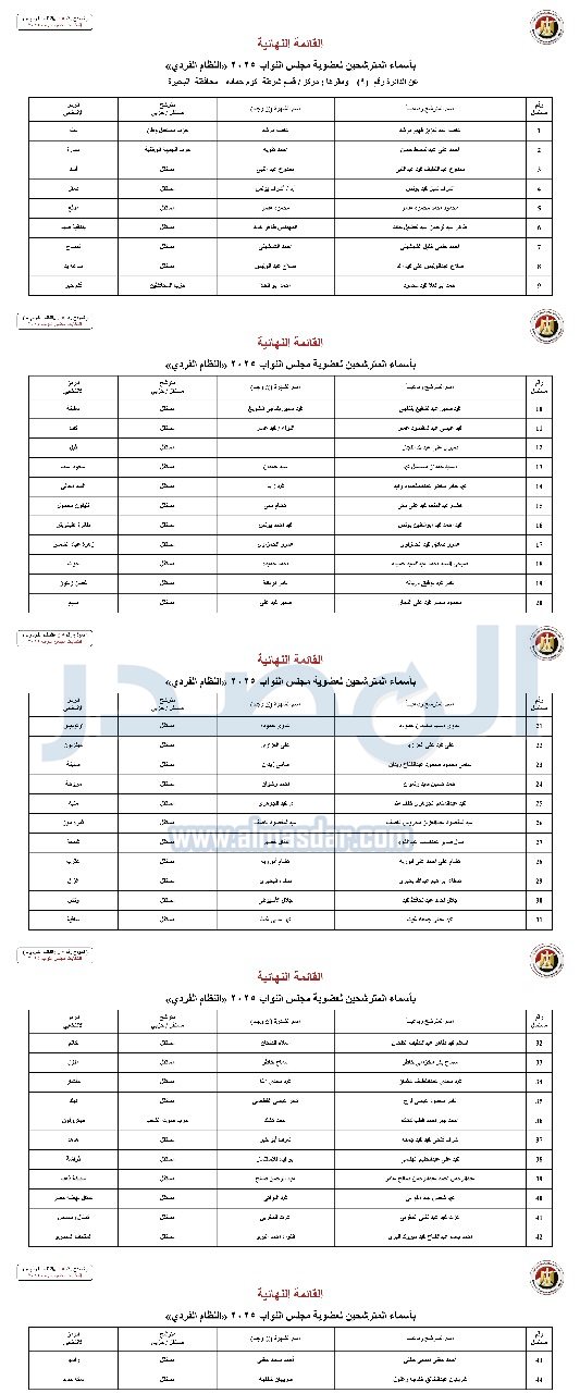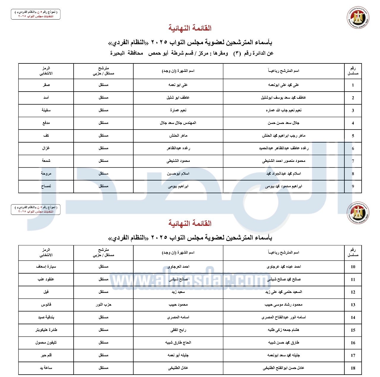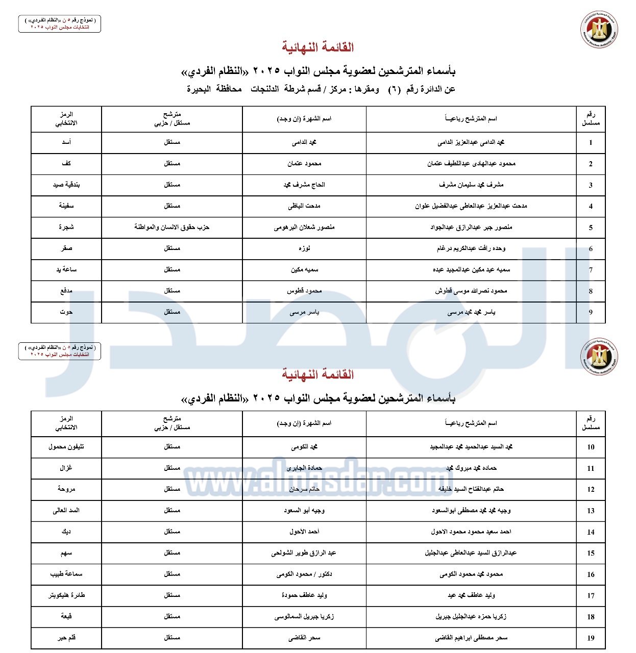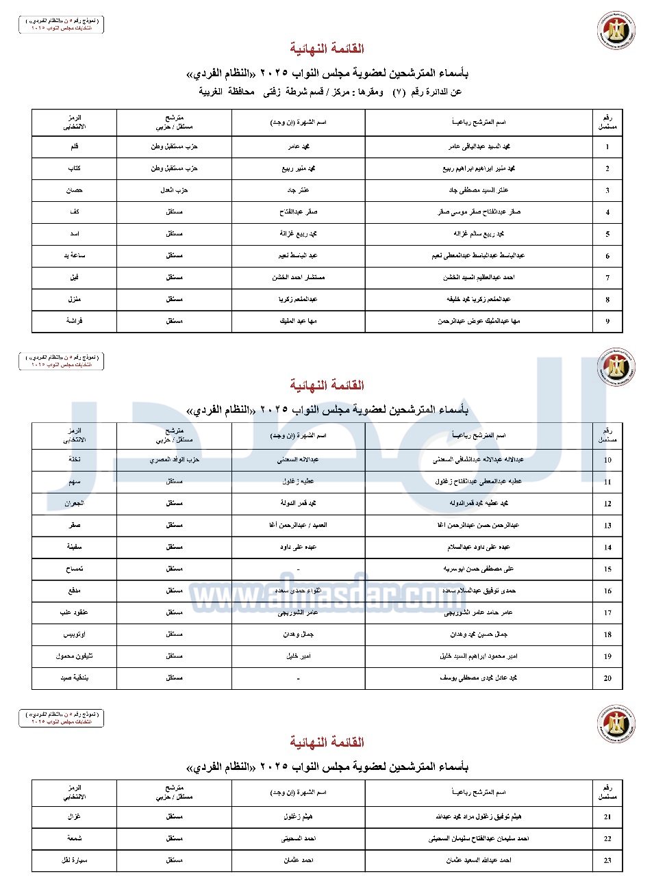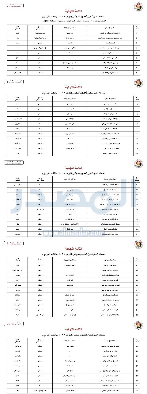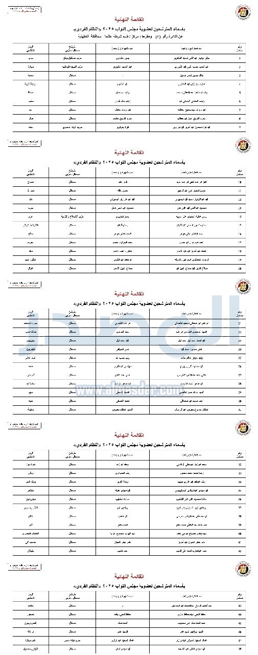 وفيما يلي قائمة الكشوف النهائية لجميع الدوائر الانتخابية على مستوى الجمهورية: