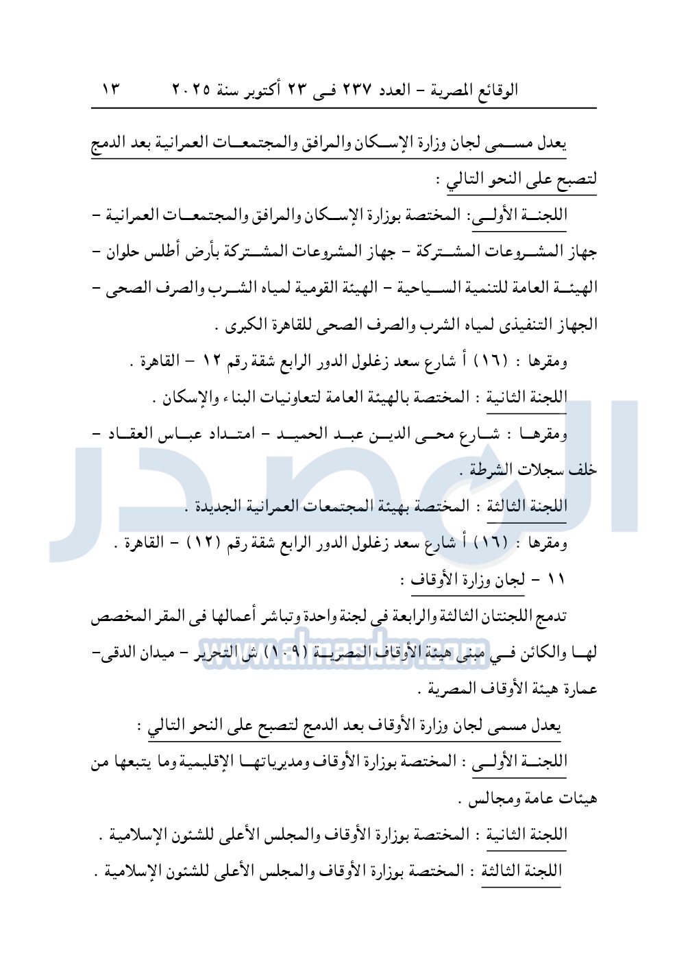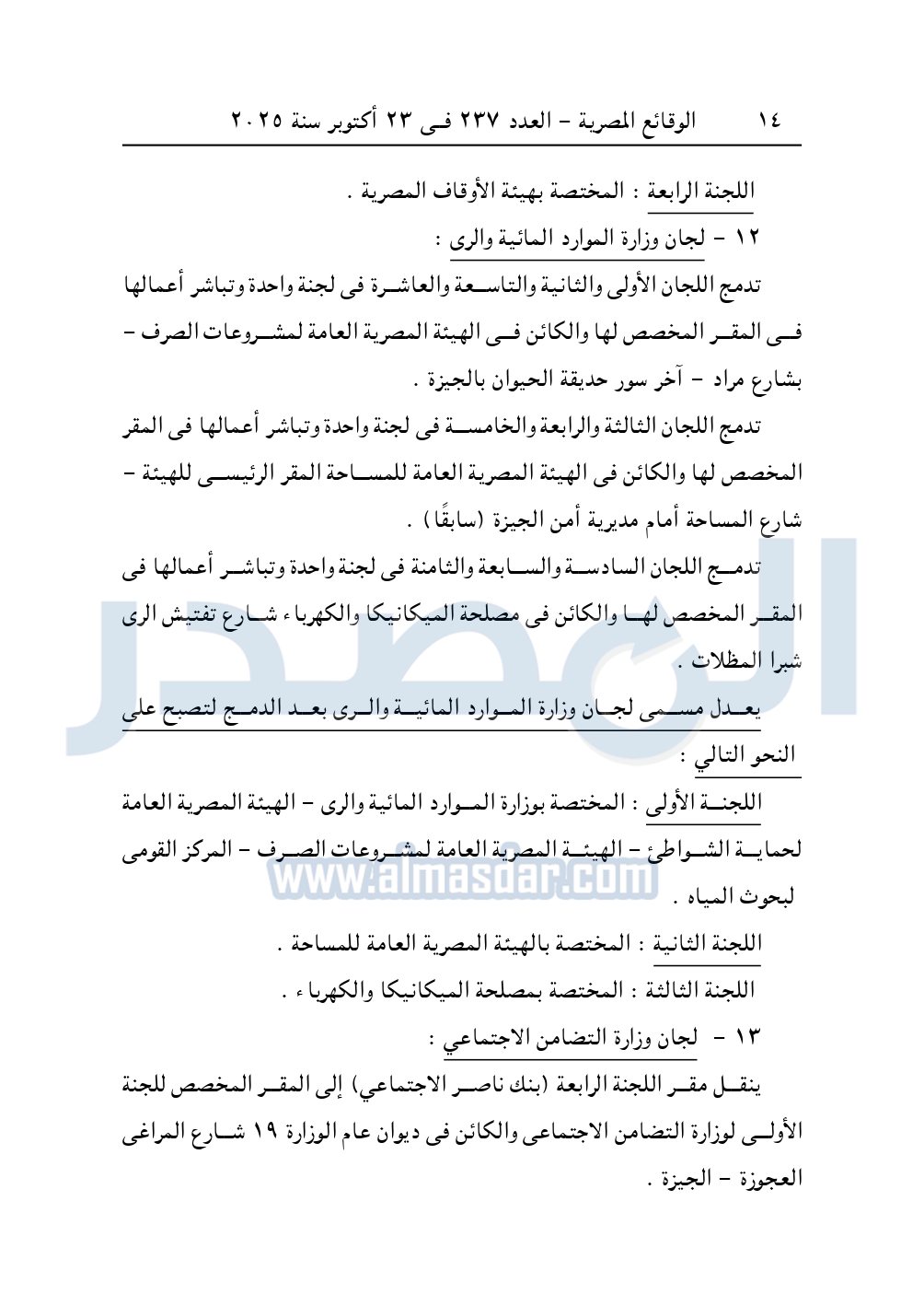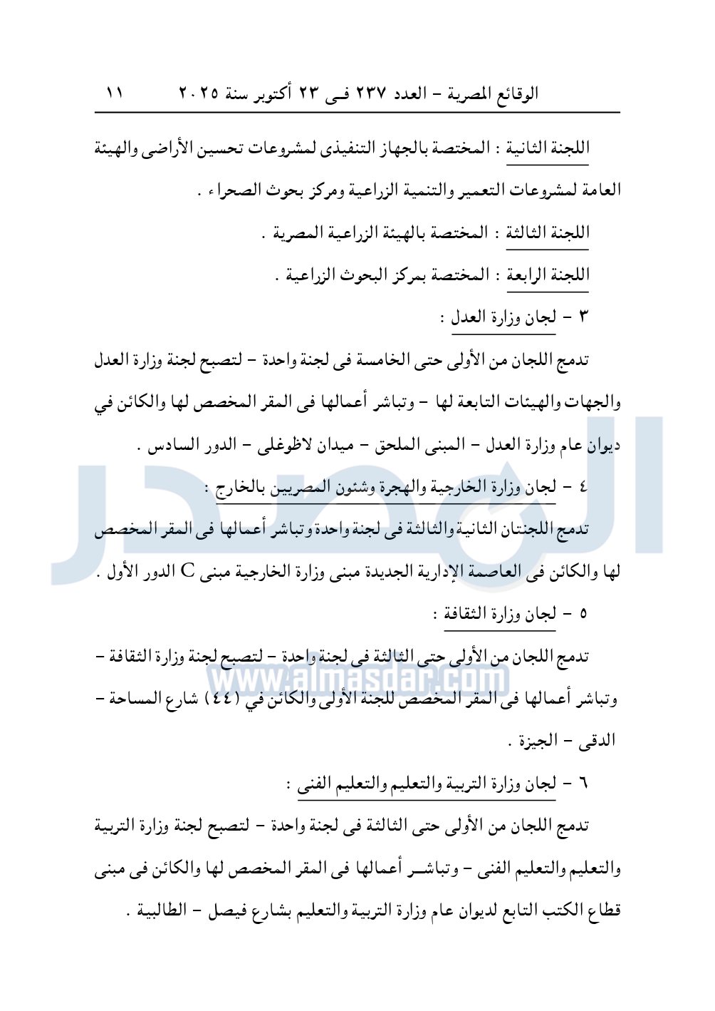 يعدل مسمى لجان وزارة الزراعة بعد الدمج لتصبح على النحو التالي: