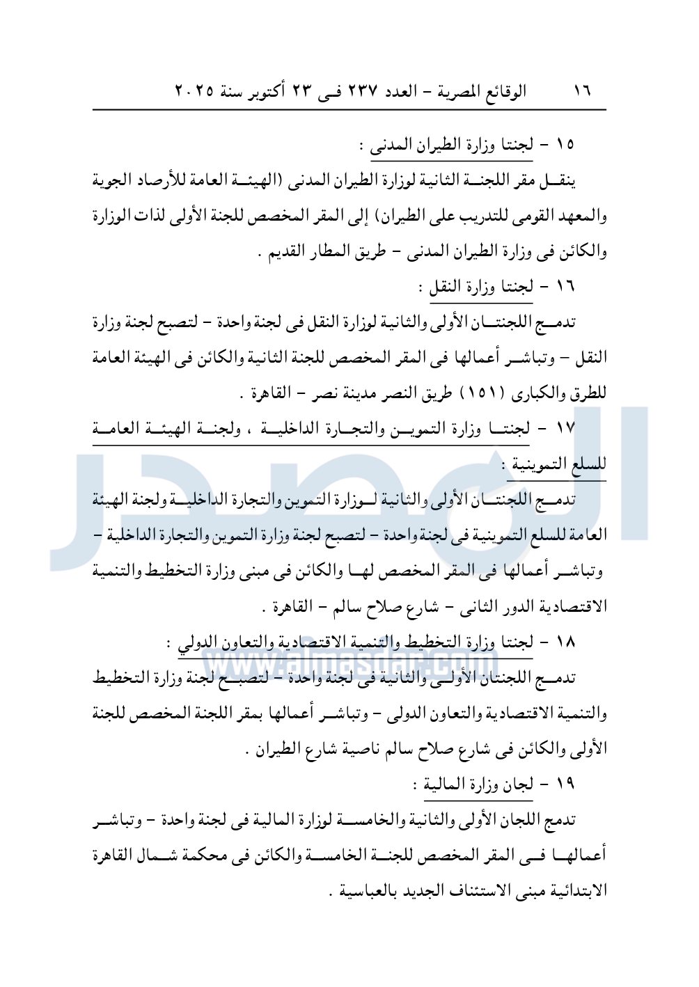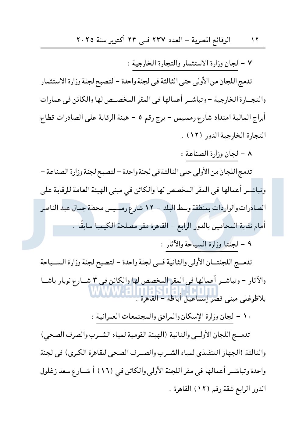 تدمج اللجان من الثانية عشرة حتى الخامسة عشرة "مركز البحوث الزراعية" في لجنة واحدة وتباشر أعمالها فى المقر المخصص لها والكائن في مركز البحوث الزراعية "9" شارع الجامعة – الجيزة.