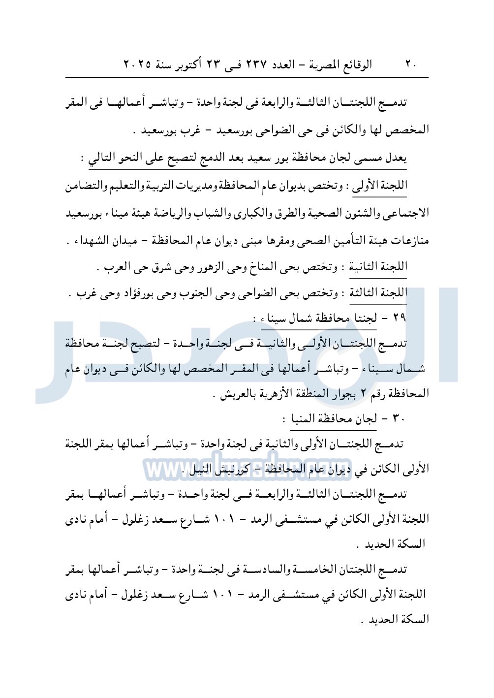تدمج اللجان الأولى ومن السادسة حتى الحادية عشرة في لجنة واحدة وتباشر أعمالها في المقر المخصص لها والكائن في محكمة جنوب الجيزة الابتدائية.