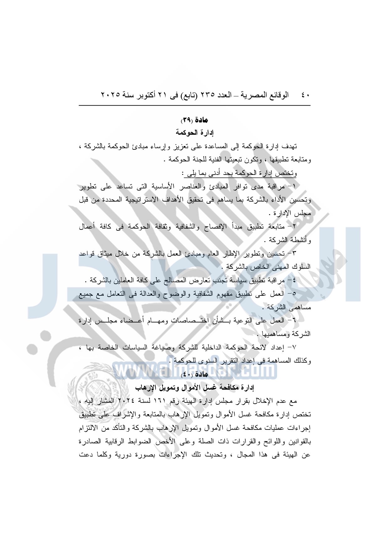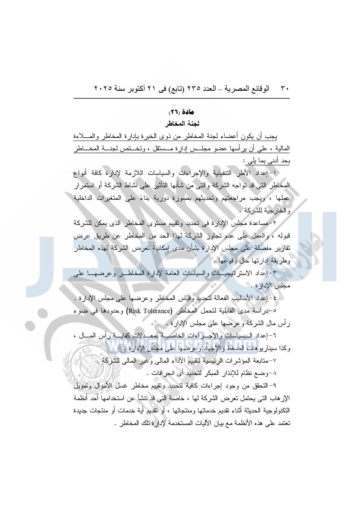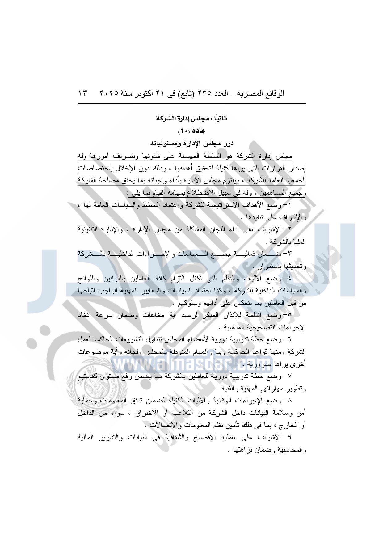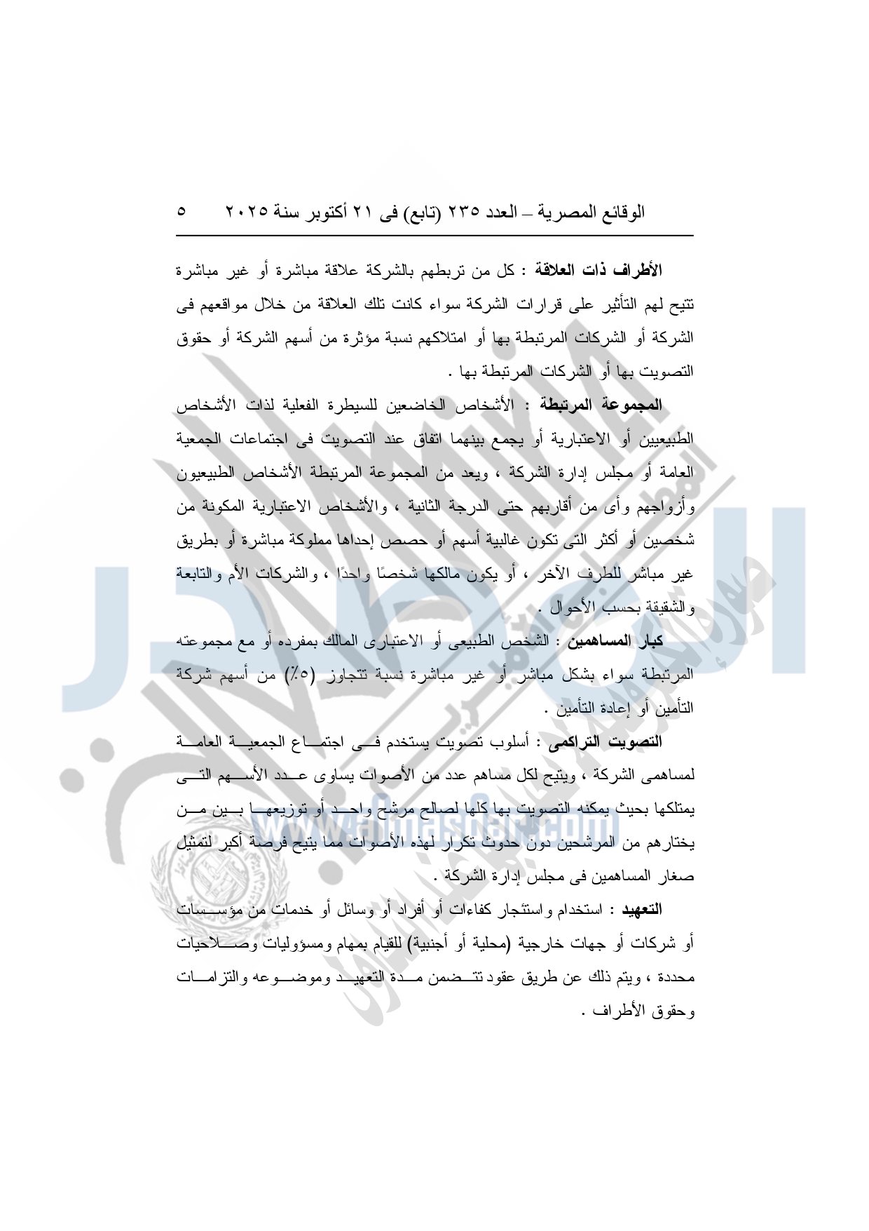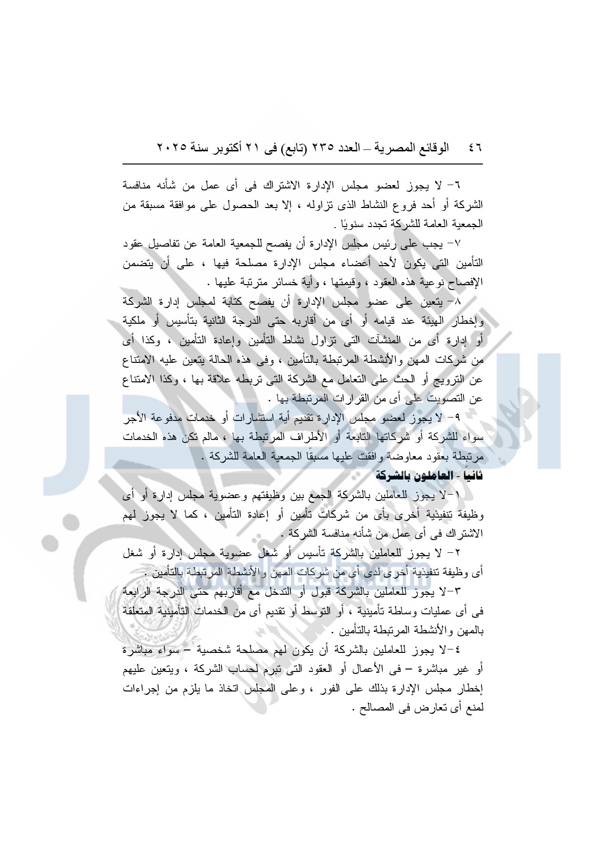 نشرت الوقائع المصرية في العدد 235 "تابع"، بتاريخ 21 أكتوبر 2025، قرار الهيئة العامة للرقابة المالية، رقم 200 لسنة 2025، بشأن قواعد حوكمة شركات التأمين وإعادة التأمين.
