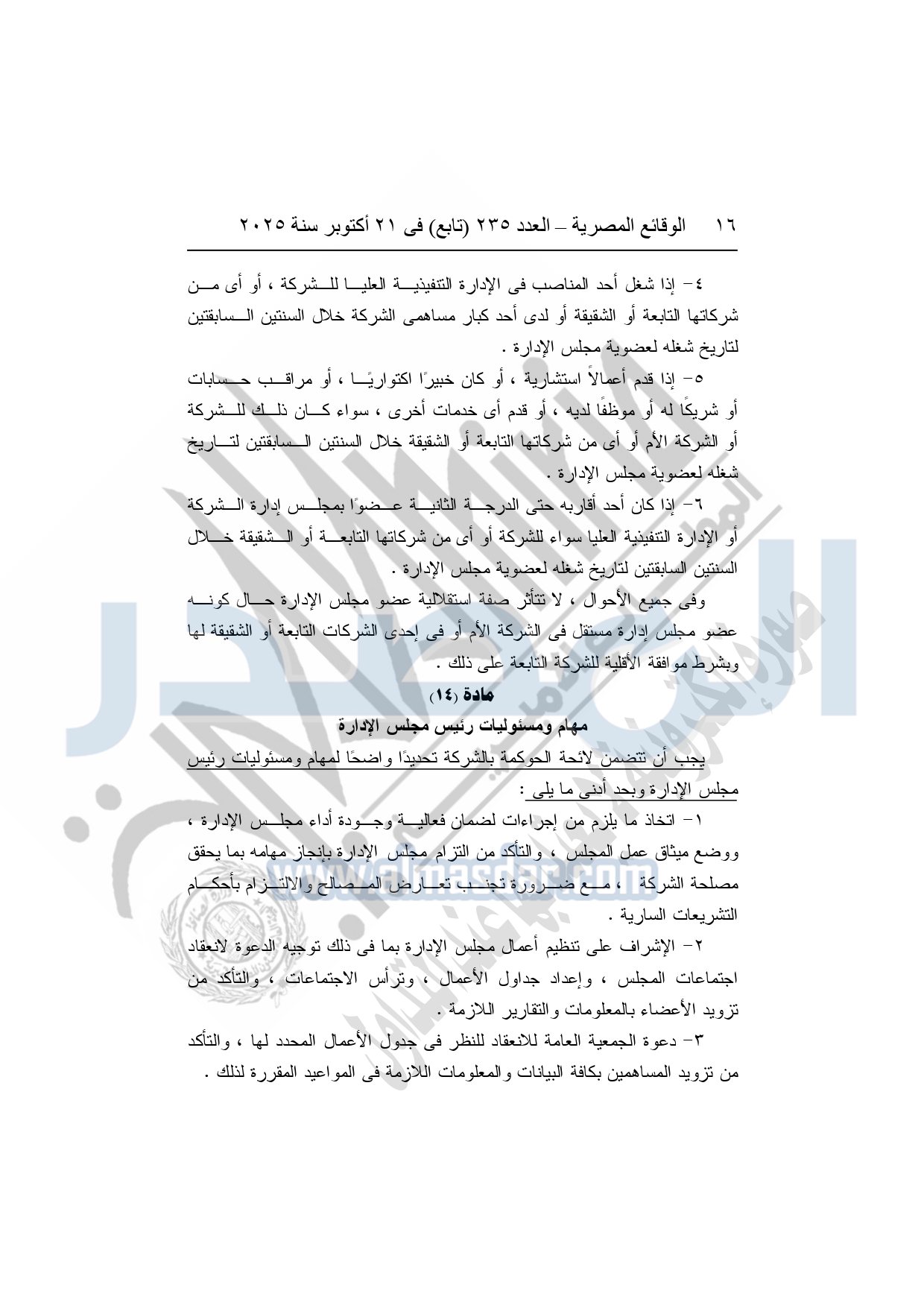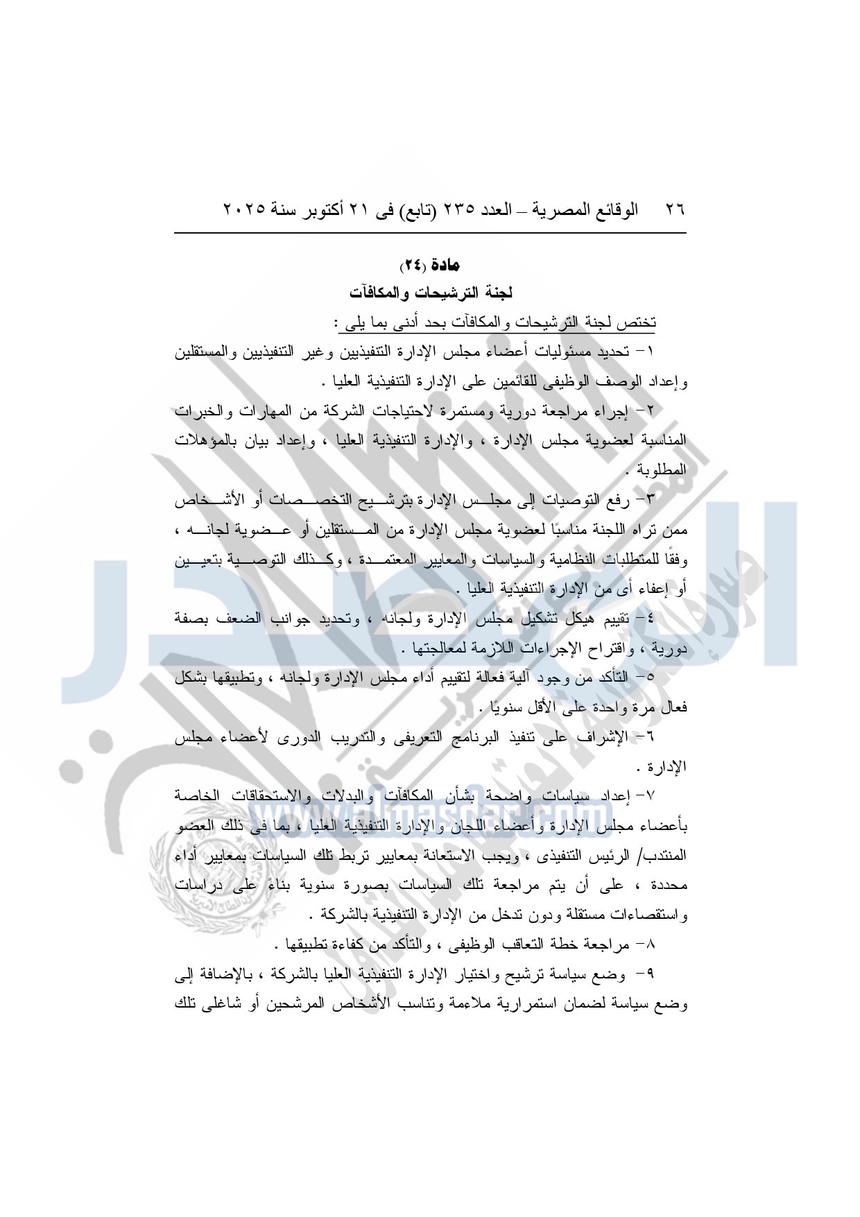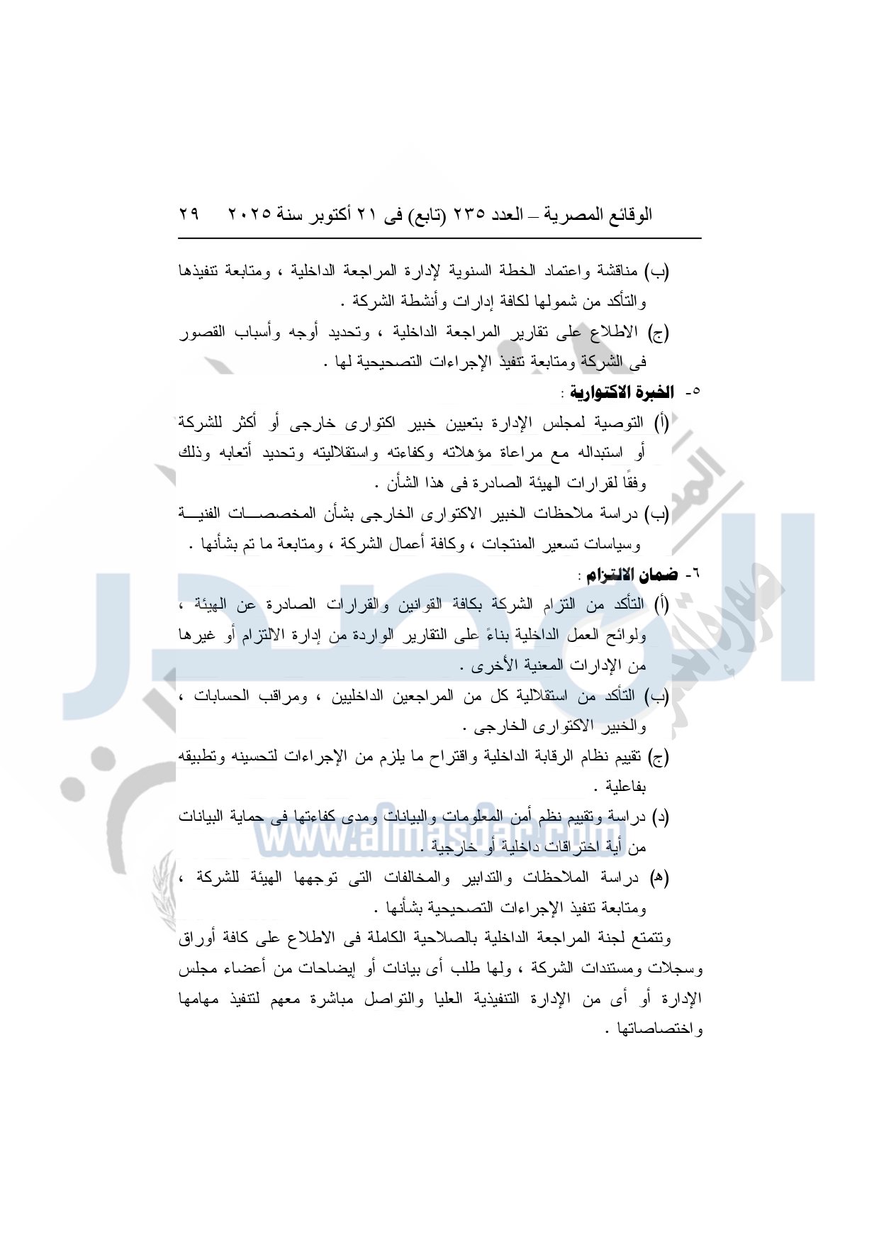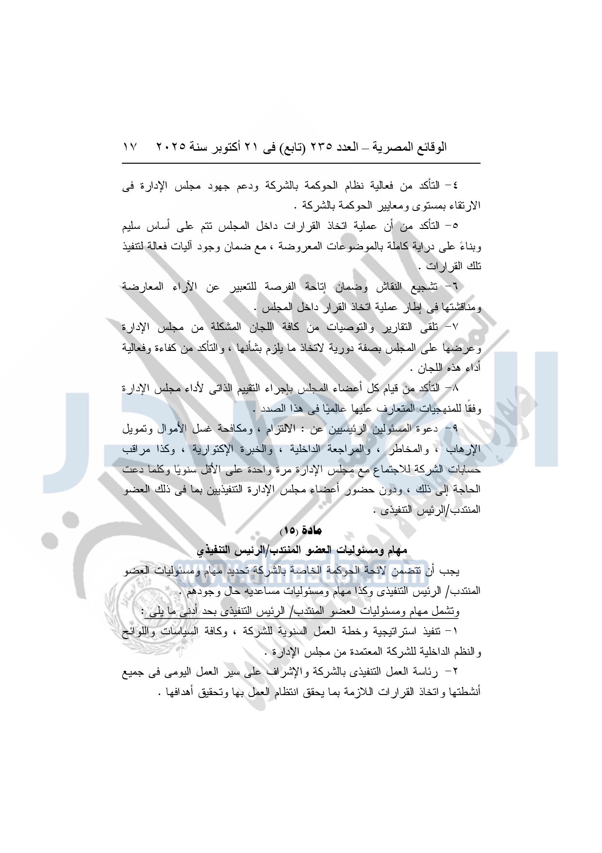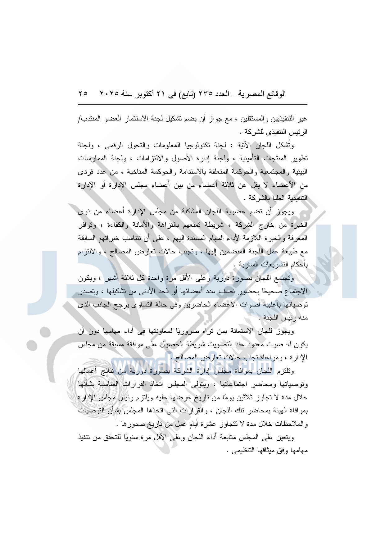 نشرت الوقائع المصرية في العدد 235 "تابع"، بتاريخ 21 أكتوبر 2025، قرار الهيئة العامة للرقابة المالية، رقم 200 لسنة 2025، بشأن قواعد حوكمة شركات التأمين وإعادة التأمين.