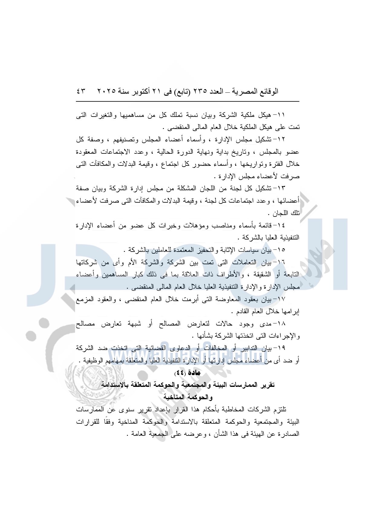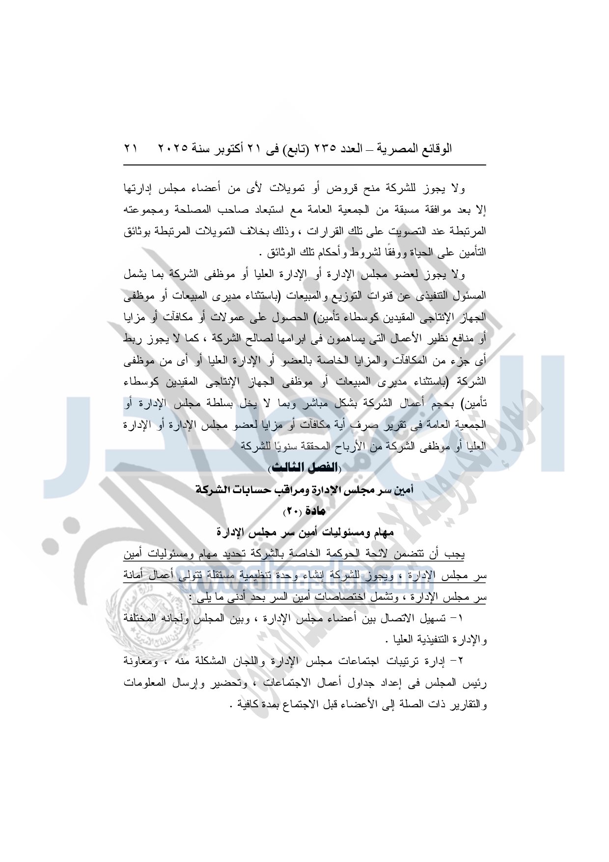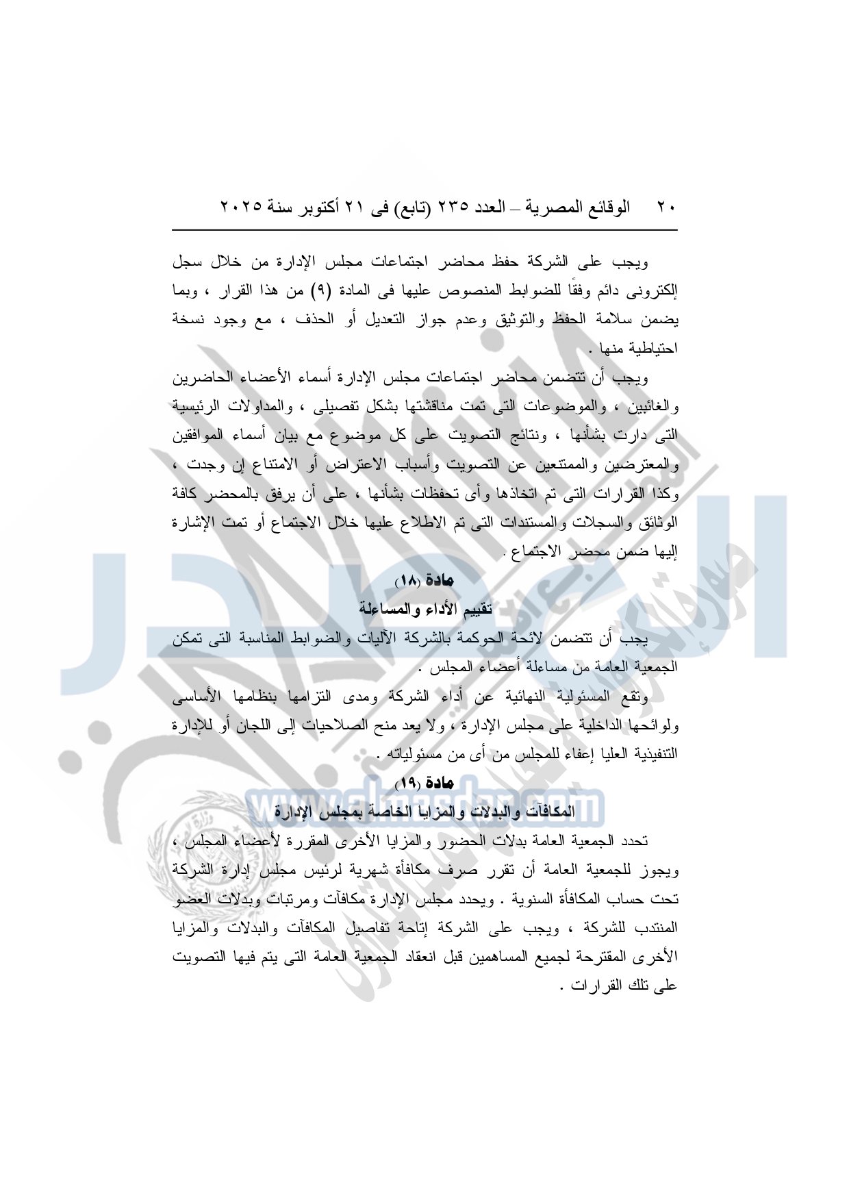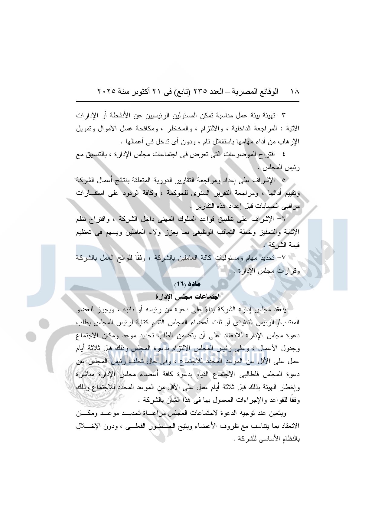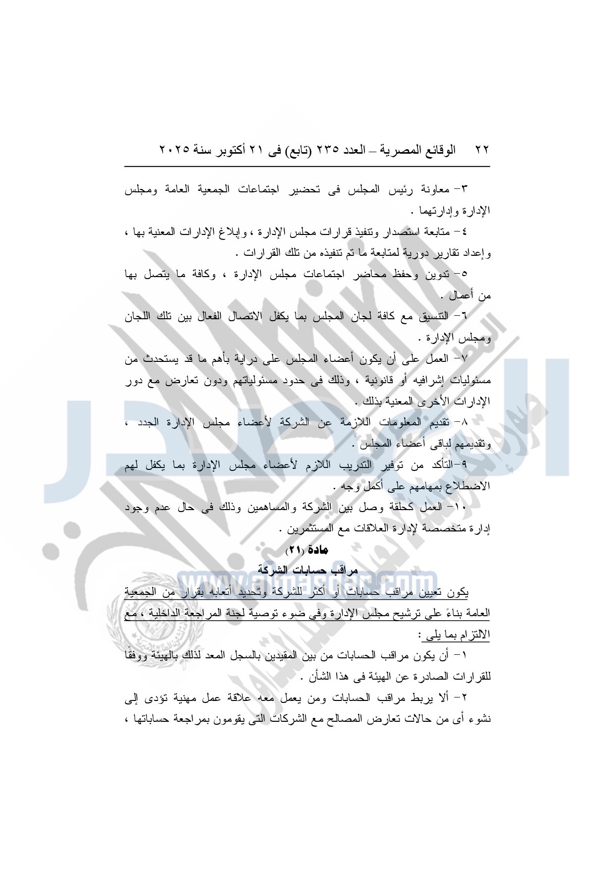 نشرت الوقائع المصرية في العدد 235 "تابع"، بتاريخ 21 أكتوبر 2025، قرار الهيئة العامة للرقابة المالية، رقم 200 لسنة 2025، بشأن قواعد حوكمة شركات التأمين وإعادة التأمين.