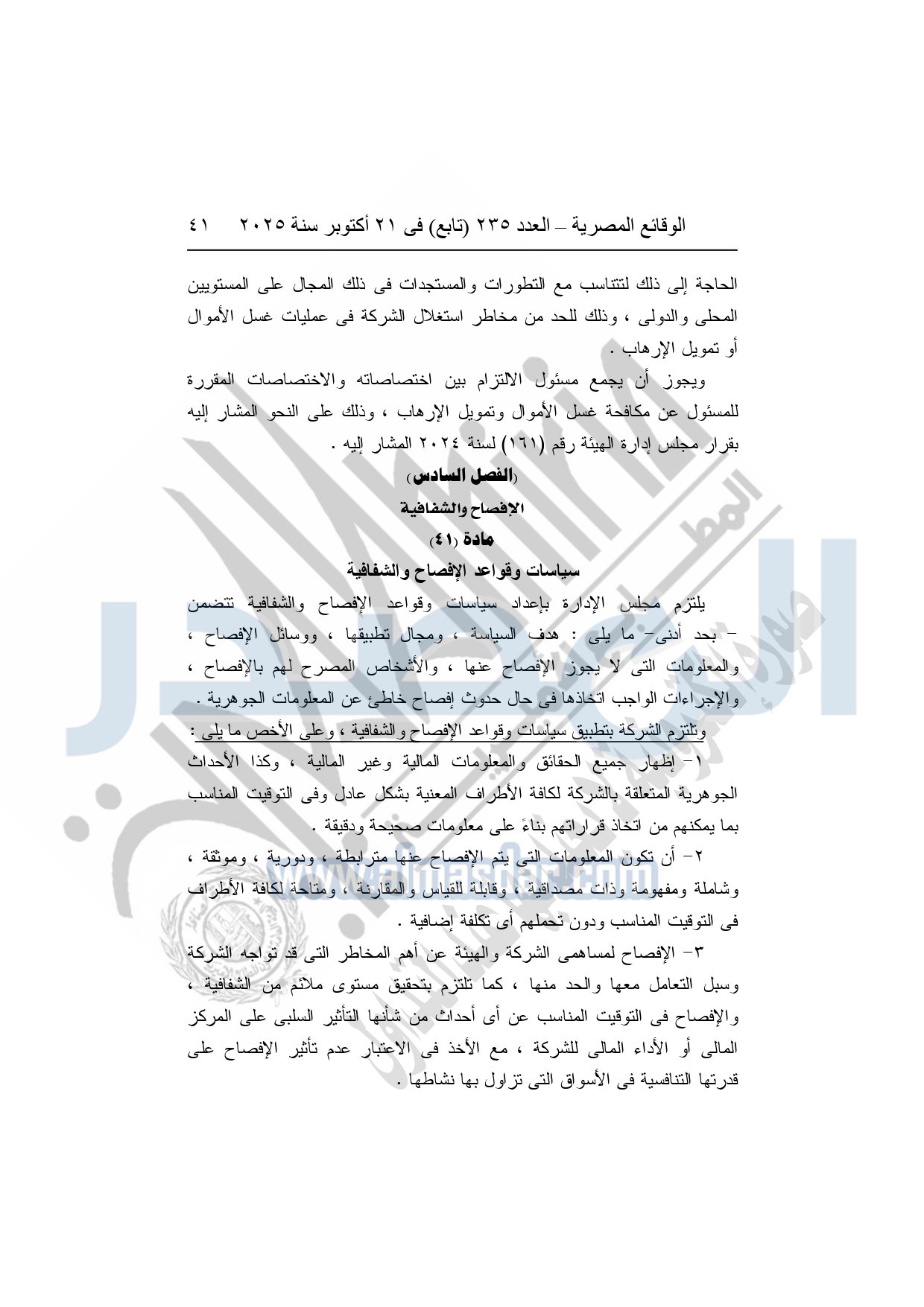يُنشر هذا القرار في الوقائع المصرية وعلى الموقع الإلكتروني للهيئة، ويُعمل به من اليوم التالي لتاريخ نشره بالوقائع المصرية.