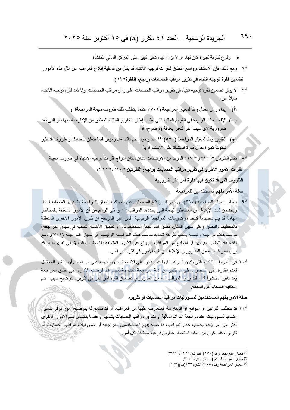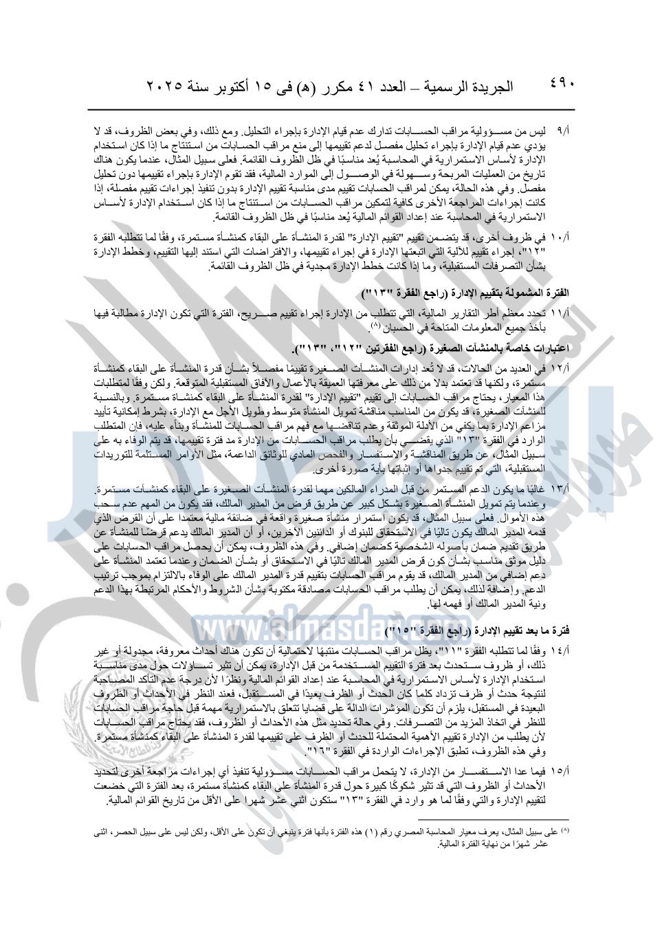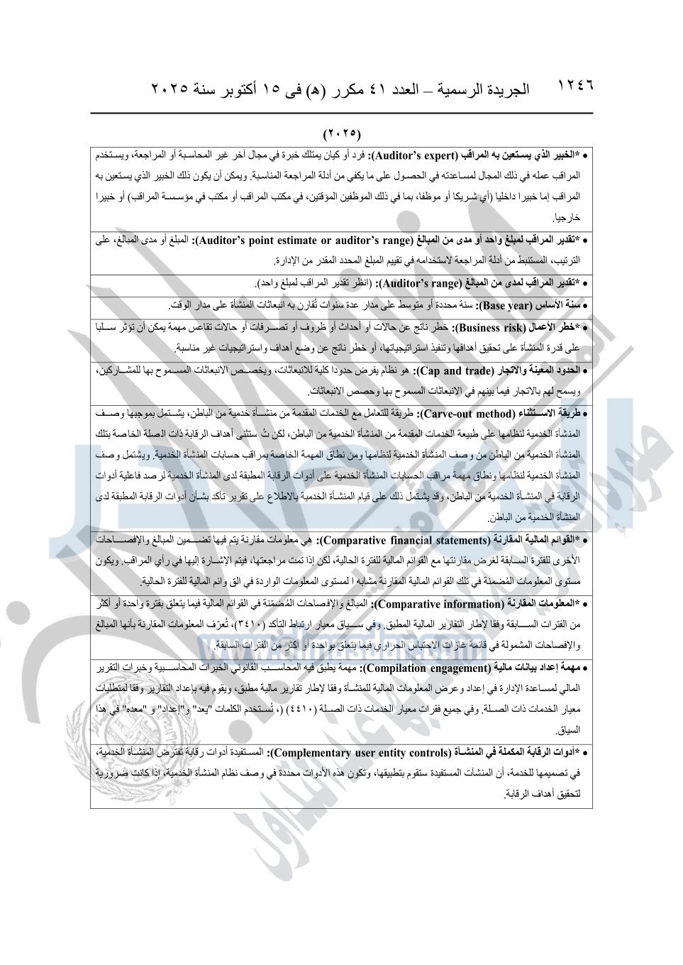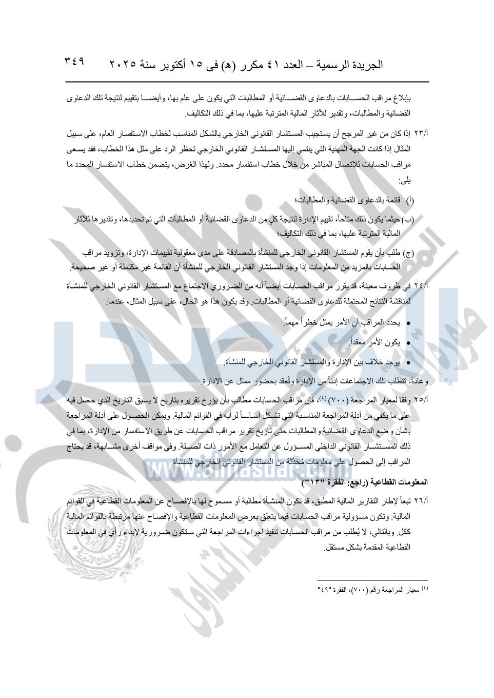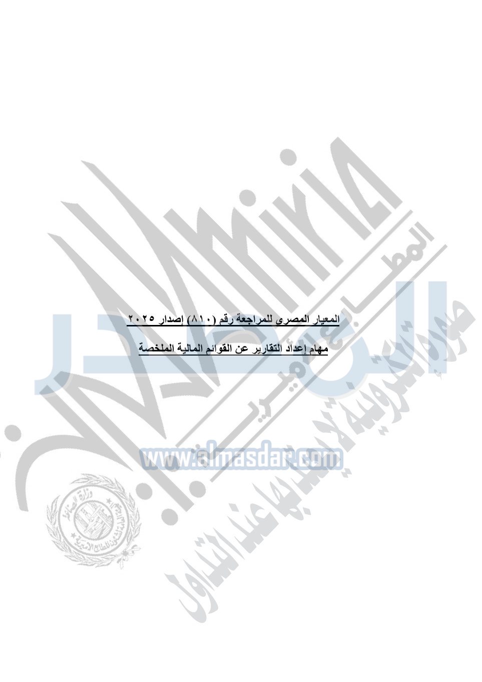 نشرت الجريدة الرسمية في العدد 41 مكرر "هـ" الصادر في 15 أكتوبر سنة 2025، قرار رئيس مجلس الوزراء رقم 3725 لسنة 2025، بشأن العمل بالمعايير المصرية للمراجعة والفحص المحدود ومهام التأكد الأخرى المرافقة لهذا القرار.