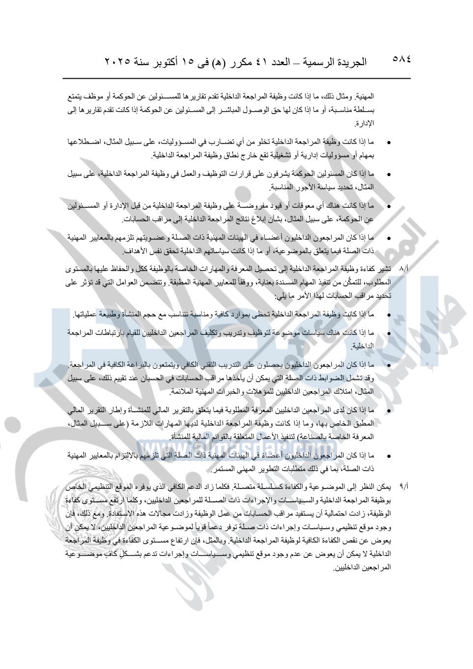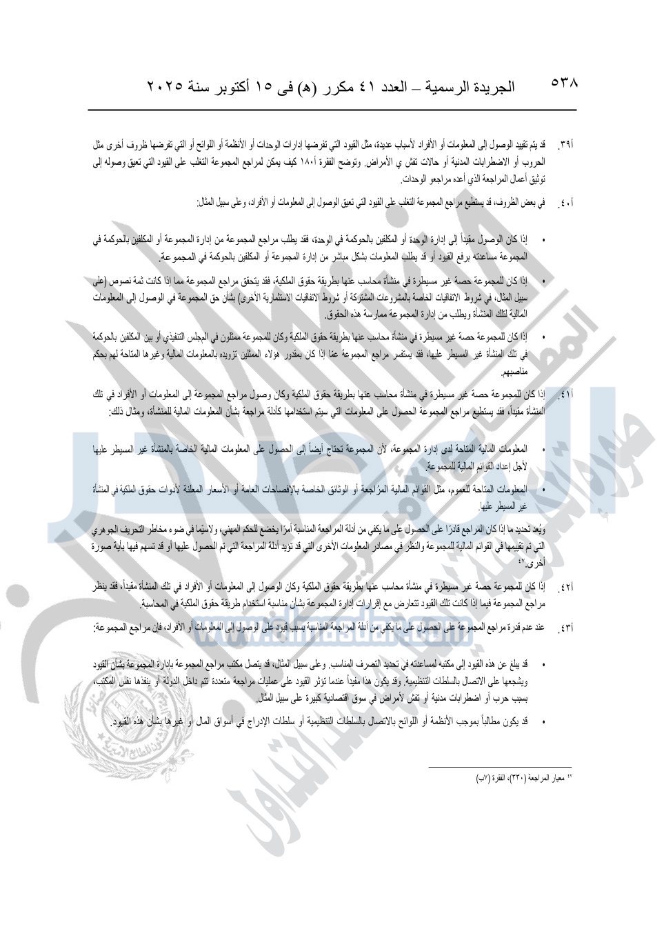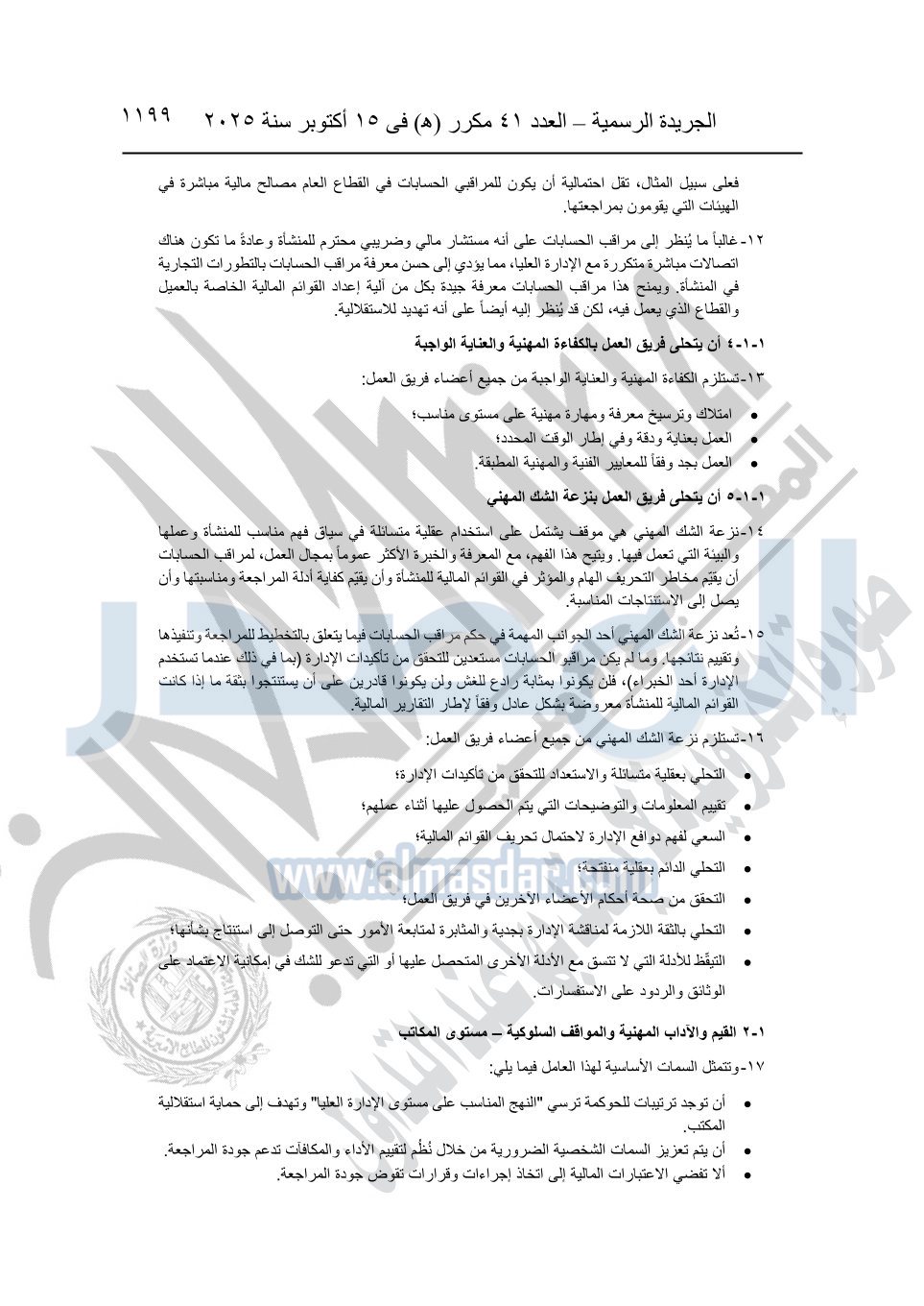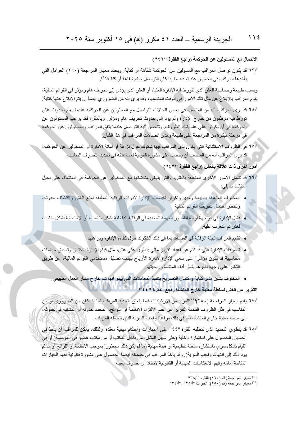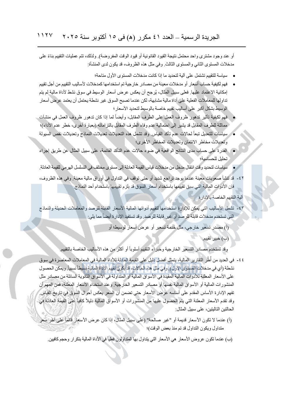 نشرت الجريدة الرسمية في العدد 41 مكرر "هـ" الصادر في 15 أكتوبر سنة 2025، قرار رئيس مجلس الوزراء رقم 3725 لسنة 2025، بشأن العمل بالمعايير المصرية للمراجعة والفحص المحدود ومهام التأكد الأخرى المرافقة لهذا القرار.