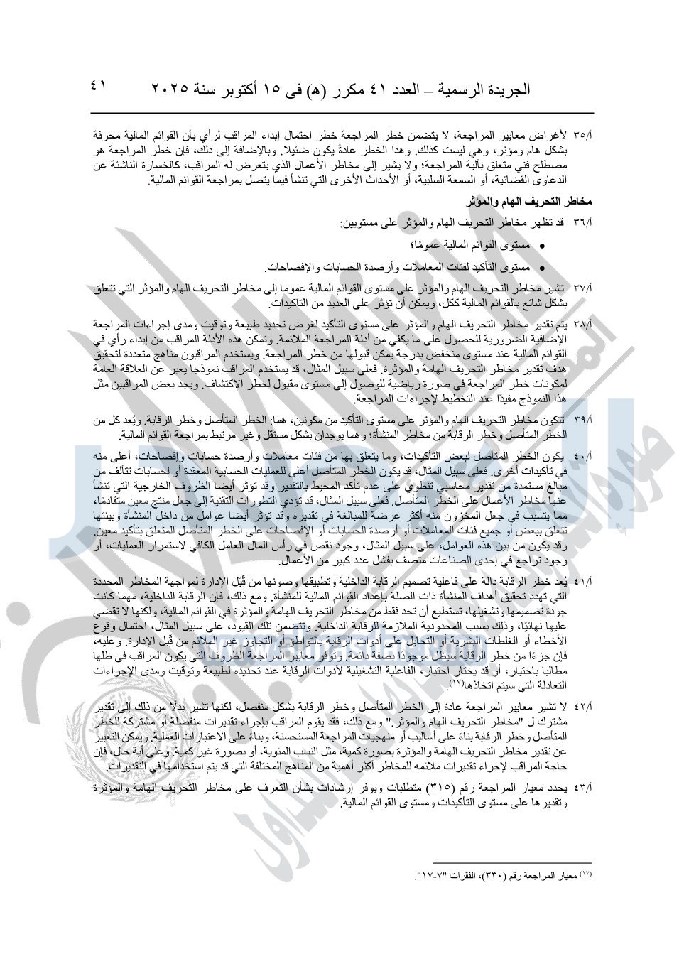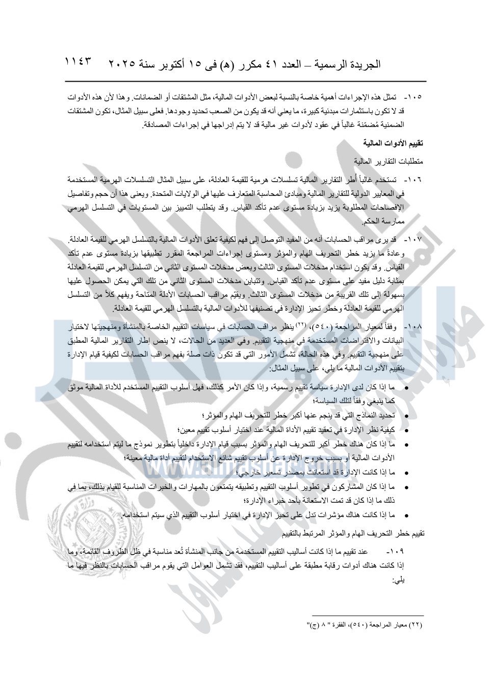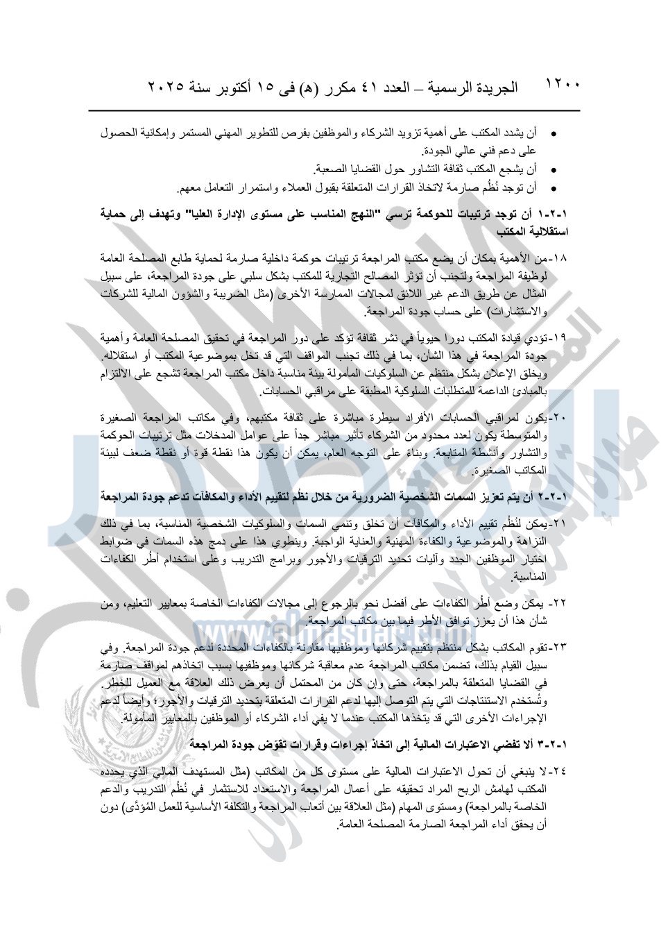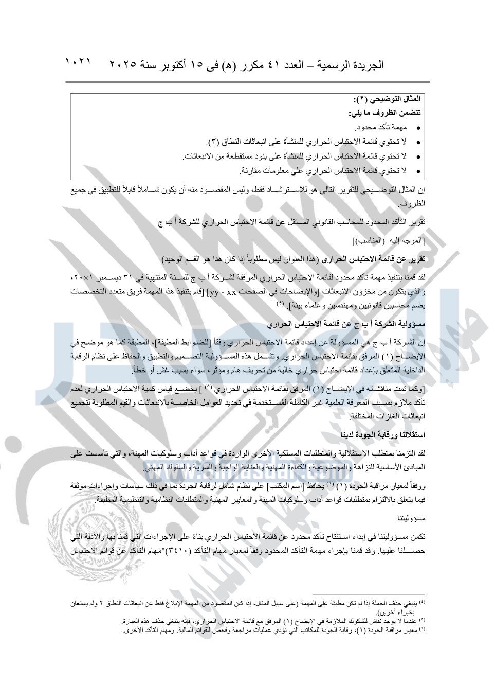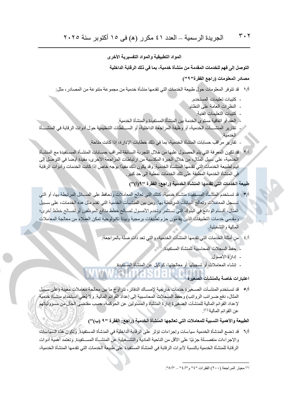 نشرت الجريدة الرسمية في العدد 41 مكرر "هـ" الصادر في 15 أكتوبر سنة 2025، قرار رئيس مجلس الوزراء رقم 3725 لسنة 2025، بشأن العمل بالمعايير المصرية للمراجعة والفحص المحدود ومهام التأكد الأخرى المرافقة لهذا القرار.