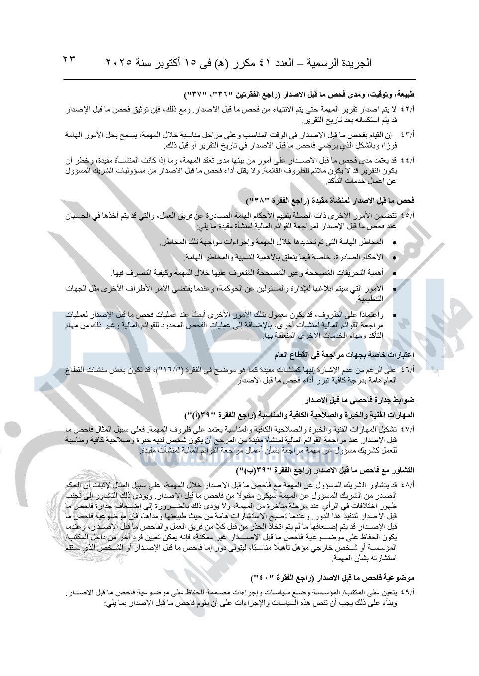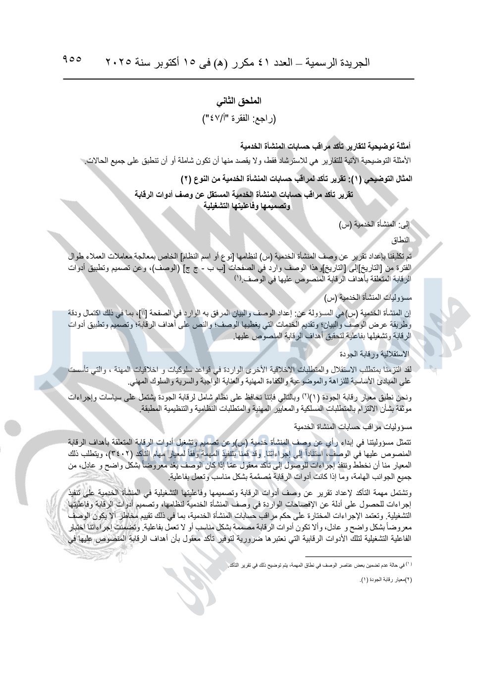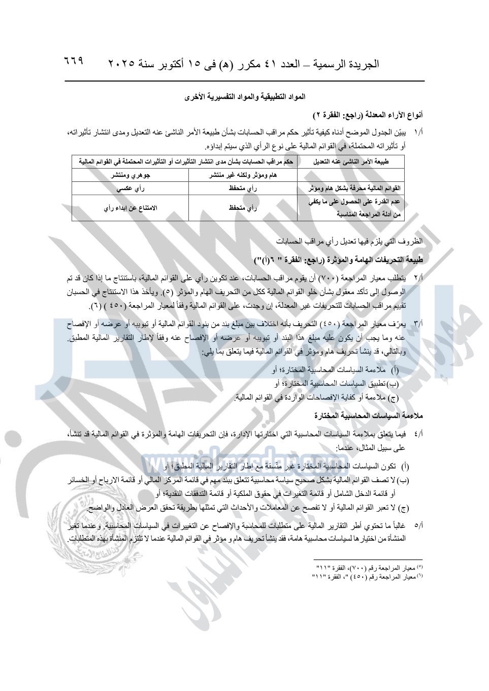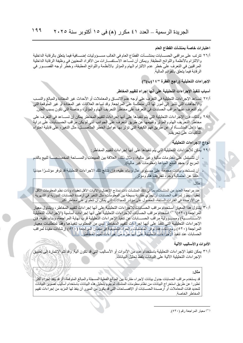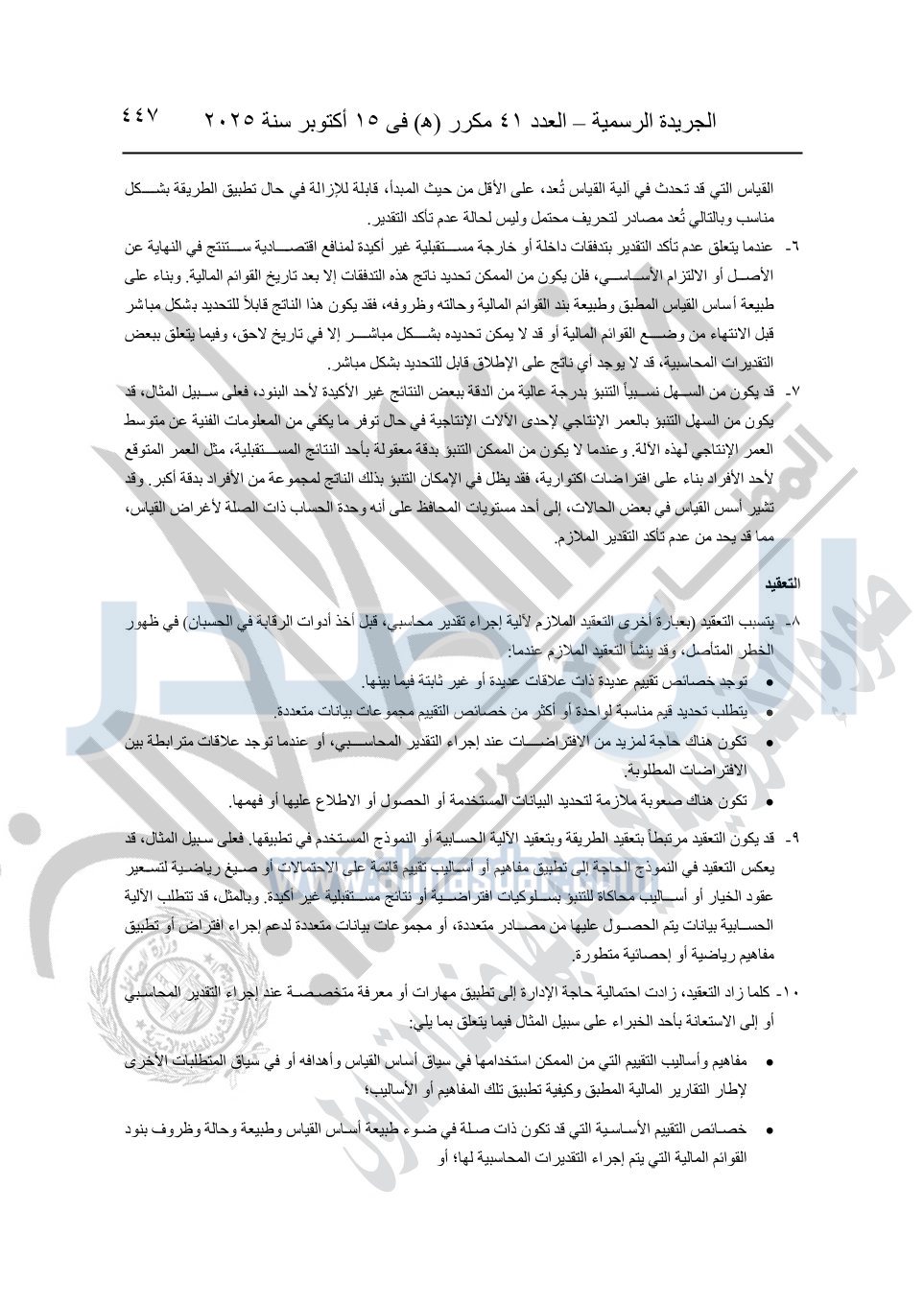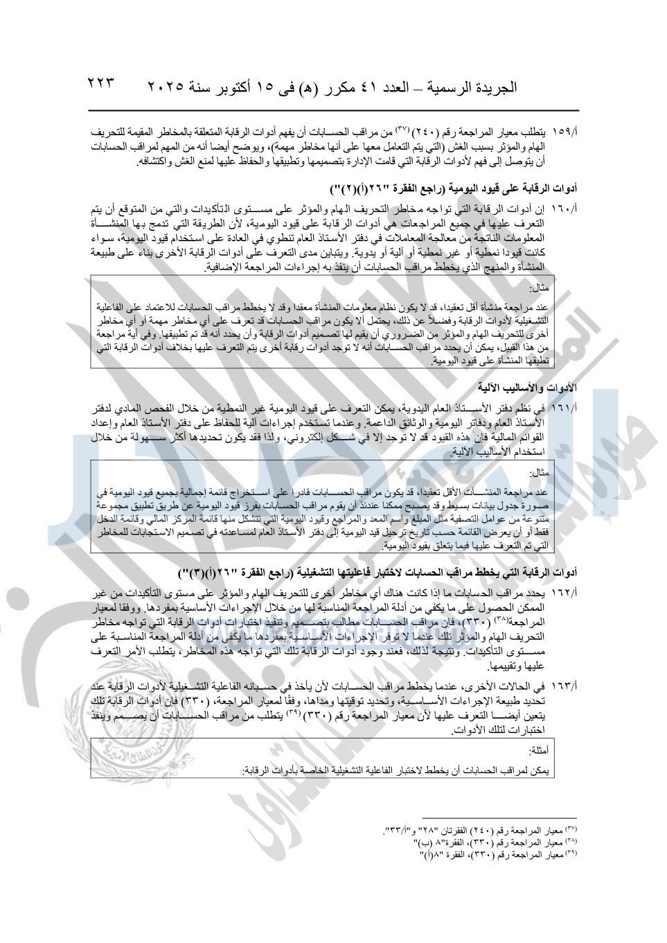 نشرت الجريدة الرسمية في العدد 41 مكرر "هـ" الصادر في 15 أكتوبر سنة 2025، قرار رئيس مجلس الوزراء رقم 3725 لسنة 2025، بشأن العمل بالمعايير المصرية للمراجعة والفحص المحدود ومهام التأكد الأخرى المرافقة لهذا القرار.