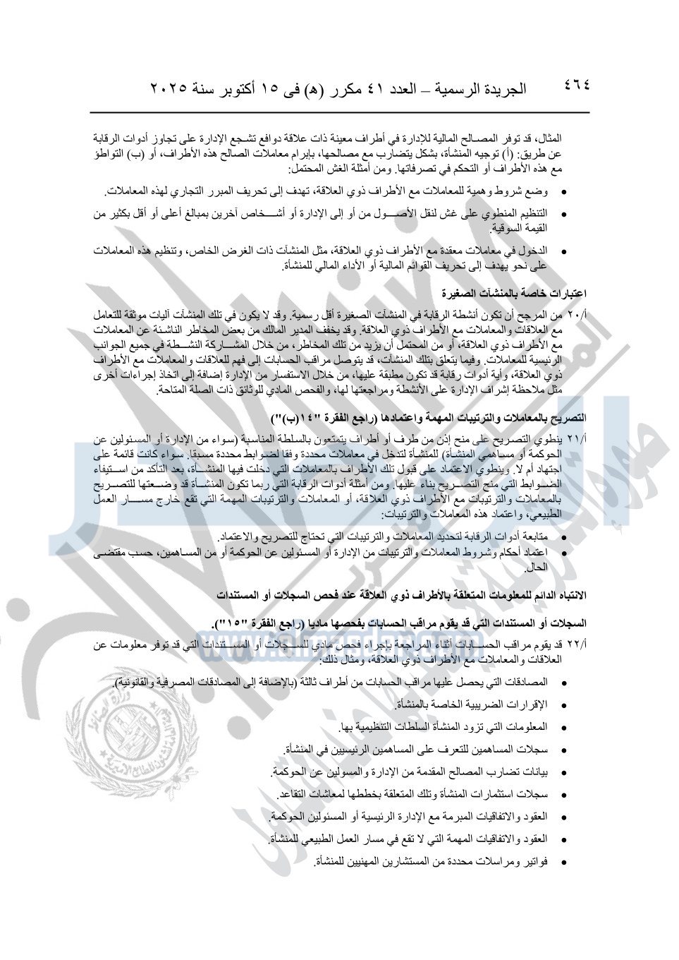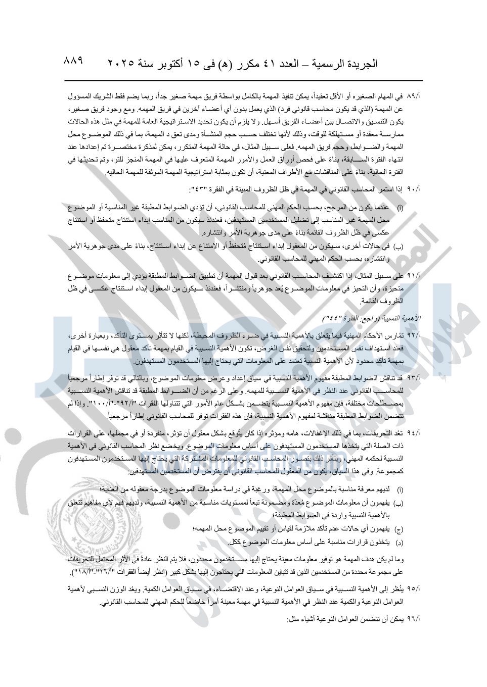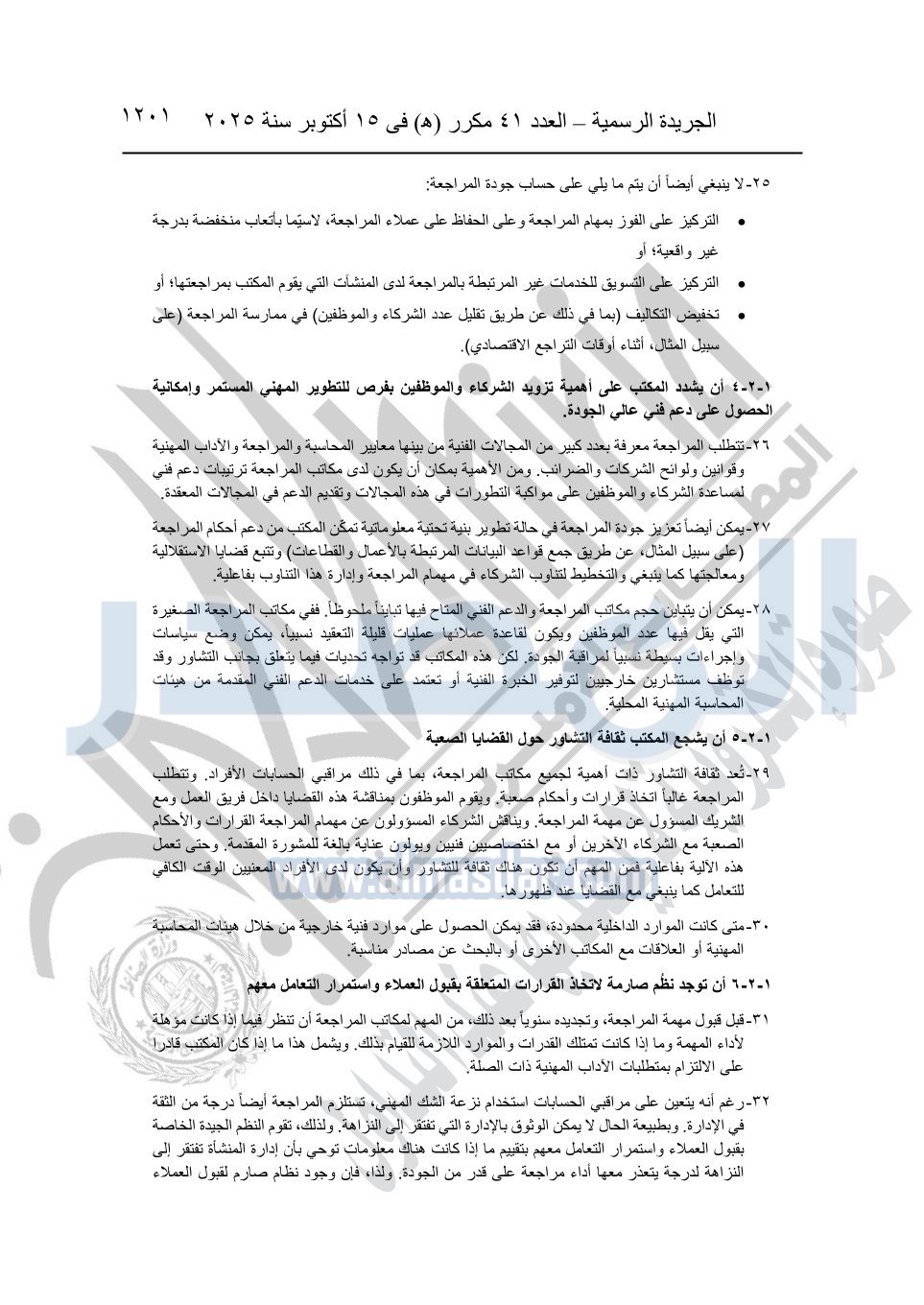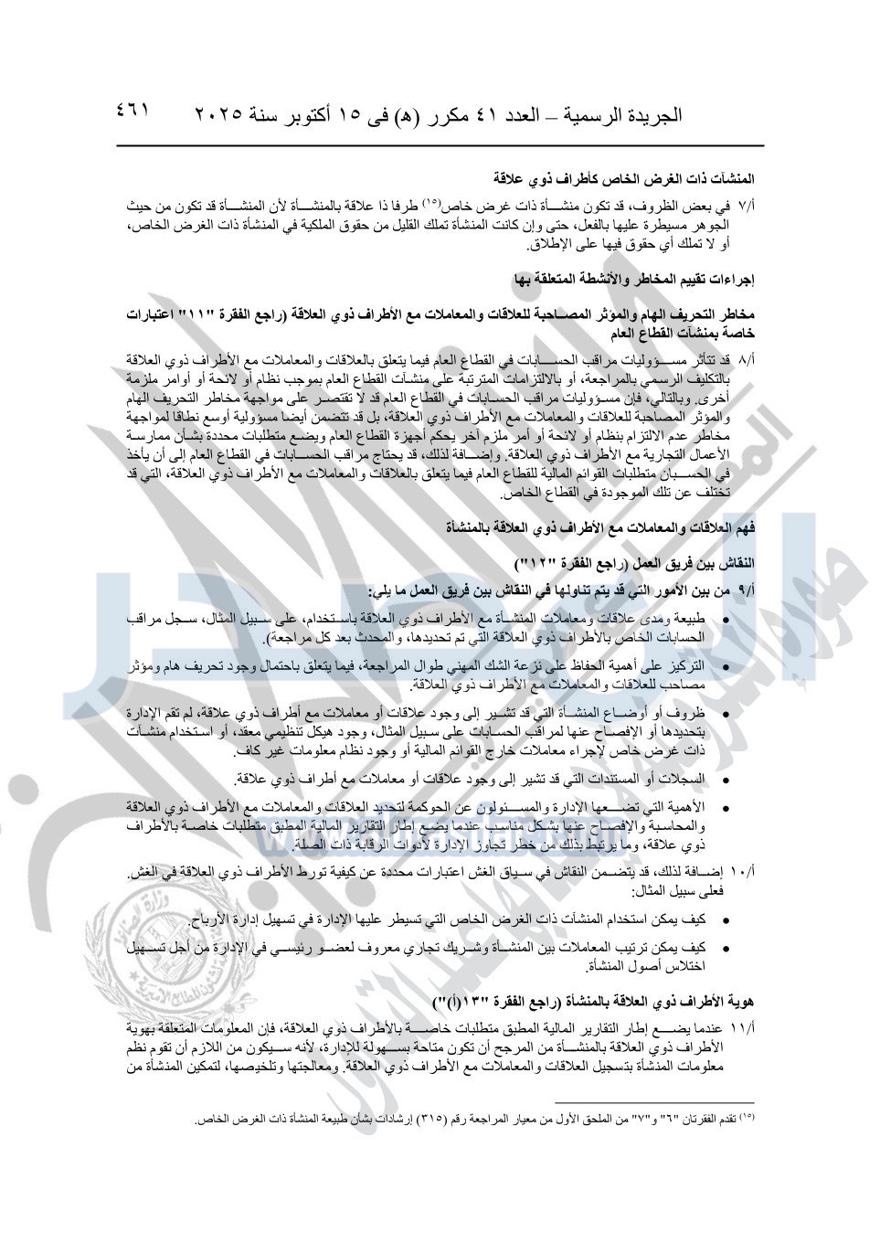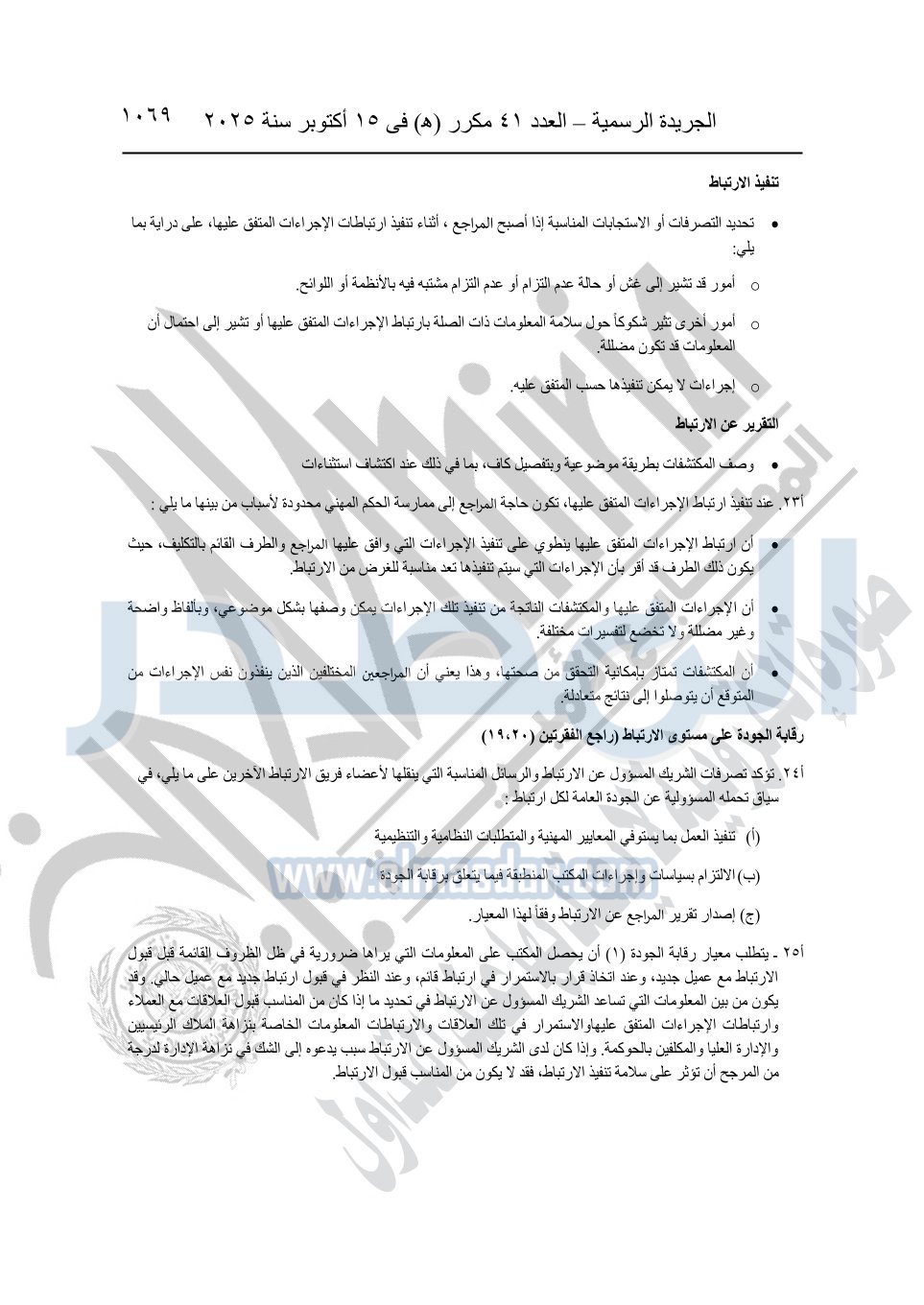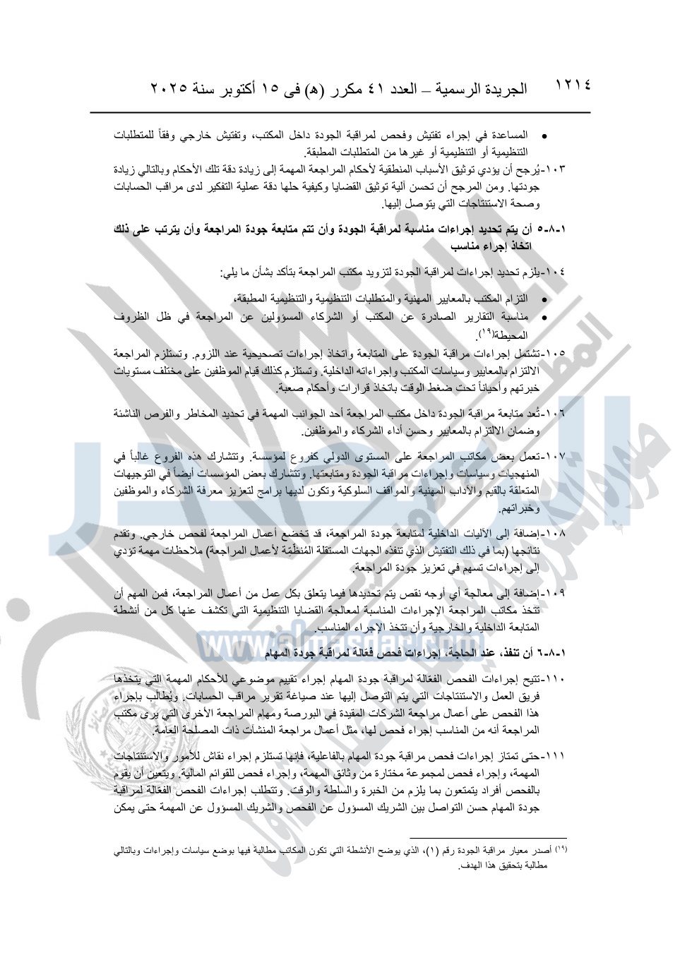 نشرت الجريدة الرسمية في العدد 41 مكرر "هـ" الصادر في 15 أكتوبر سنة 2025، قرار رئيس مجلس الوزراء رقم 3725 لسنة 2025، بشأن العمل بالمعايير المصرية للمراجعة والفحص المحدود ومهام التأكد الأخرى المرافقة لهذا القرار.