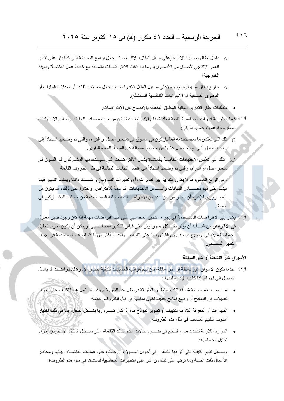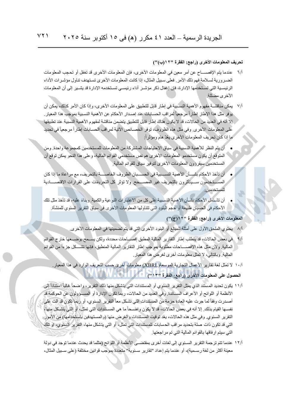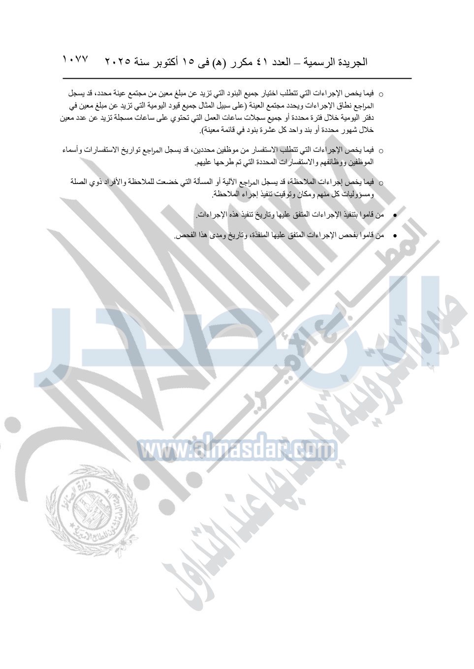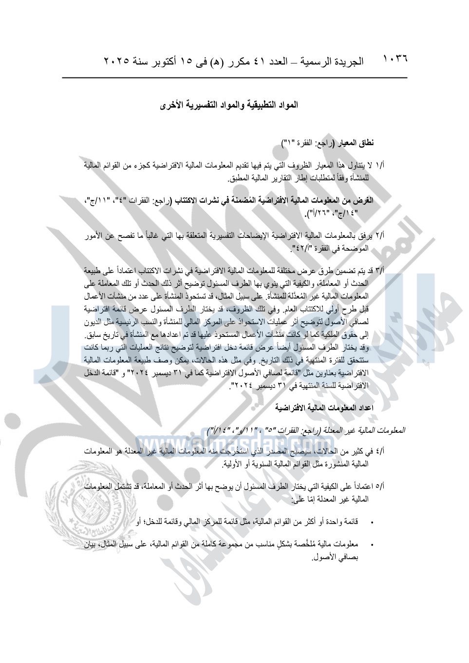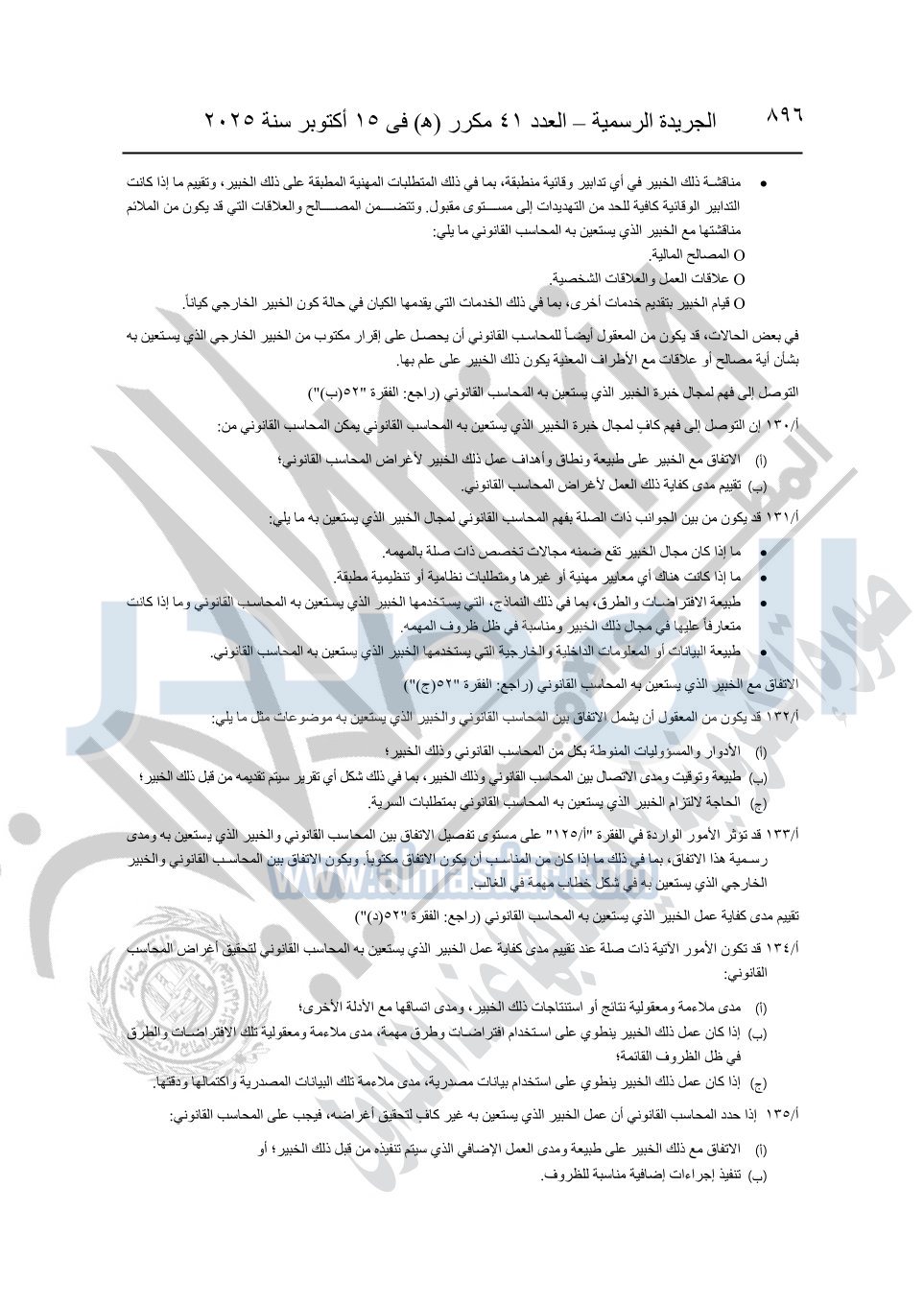نشرت الجريدة الرسمية في العدد 41 مكرر "هـ" الصادر في 15 أكتوبر سنة 2025، قرار رئيس مجلس الوزراء رقم 3725 لسنة 2025، بشأن العمل بالمعايير المصرية للمراجعة والفحص المحدود ومهام التأكد الأخرى المرافقة لهذا القرار.