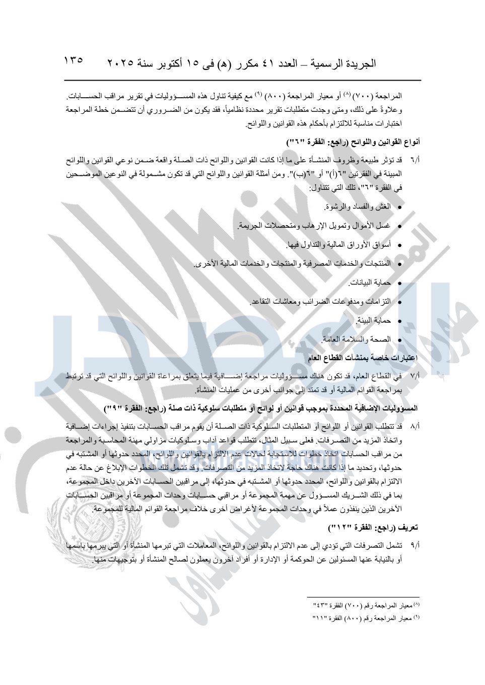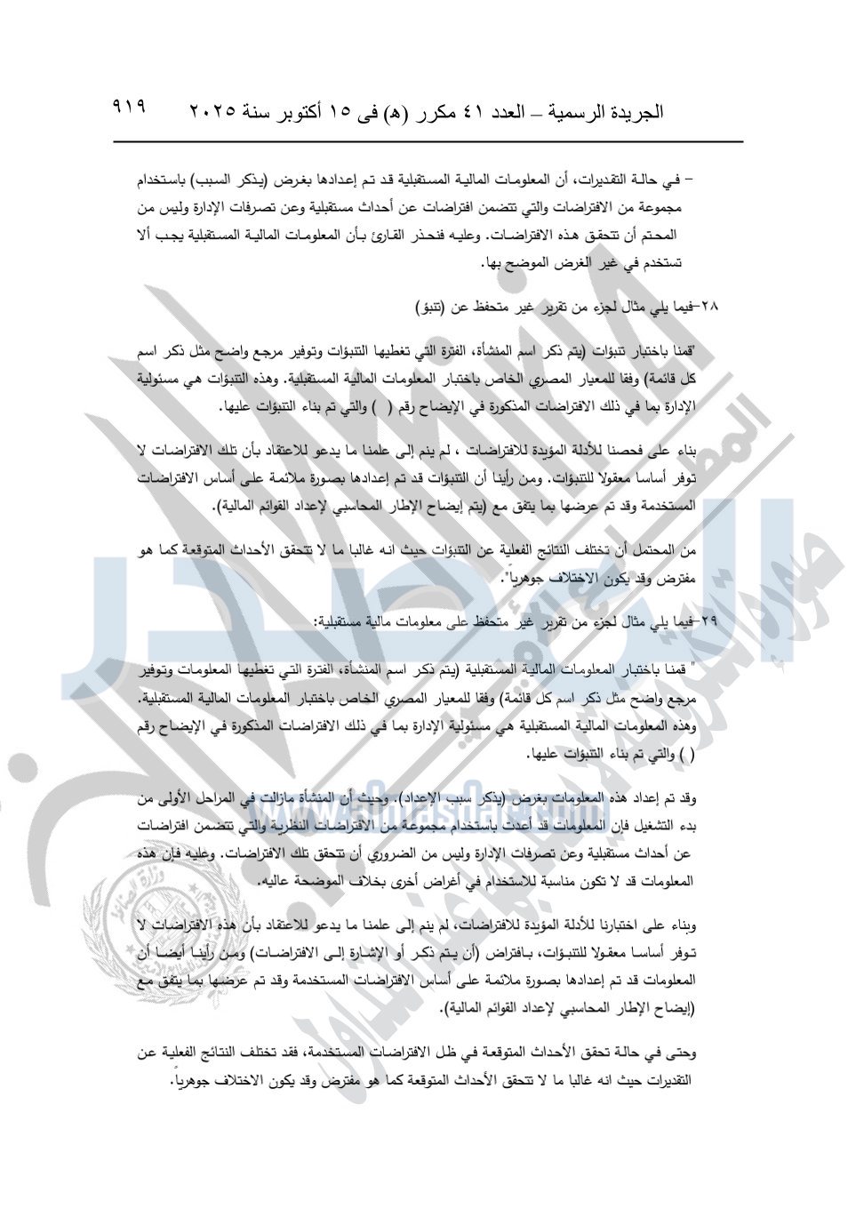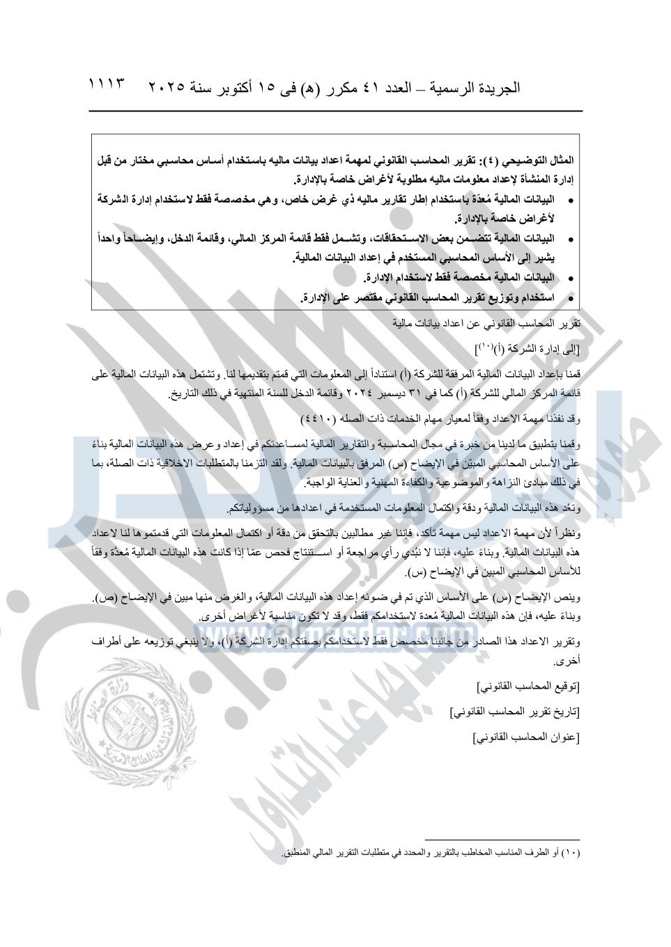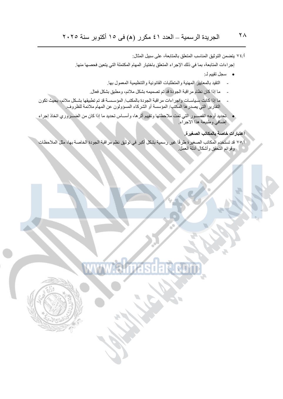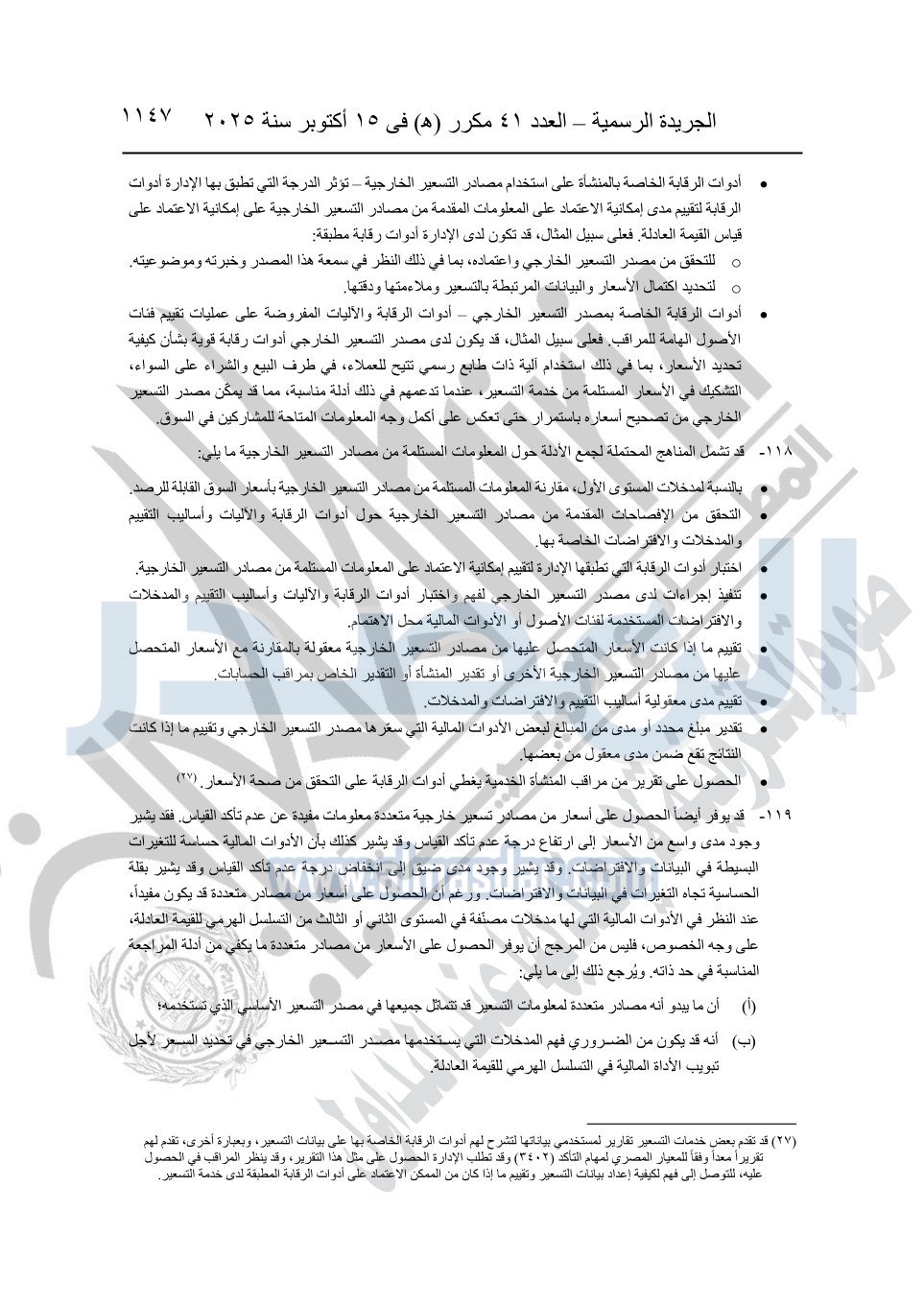 نشرت الجريدة الرسمية في العدد 41 مكرر "هـ" الصادر في 15 أكتوبر سنة 2025، قرار رئيس مجلس الوزراء رقم 3725 لسنة 2025، بشأن العمل بالمعايير المصرية للمراجعة والفحص المحدود ومهام التأكد الأخرى المرافقة لهذا القرار.