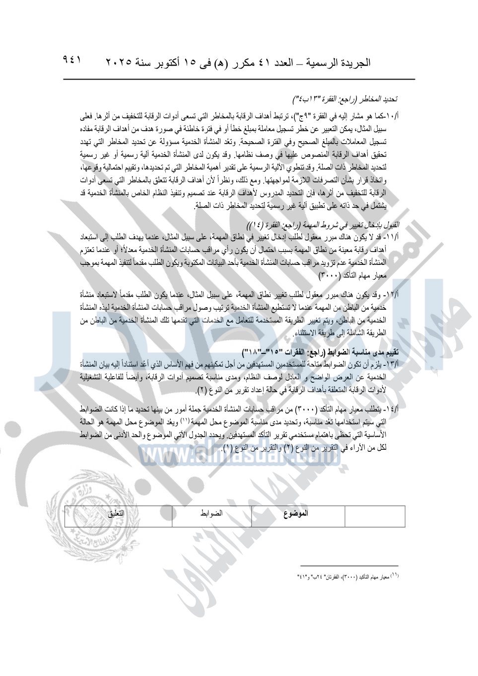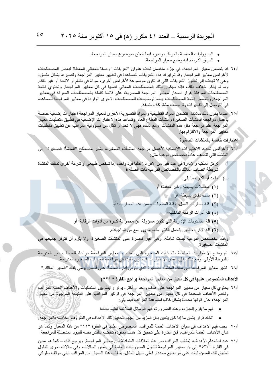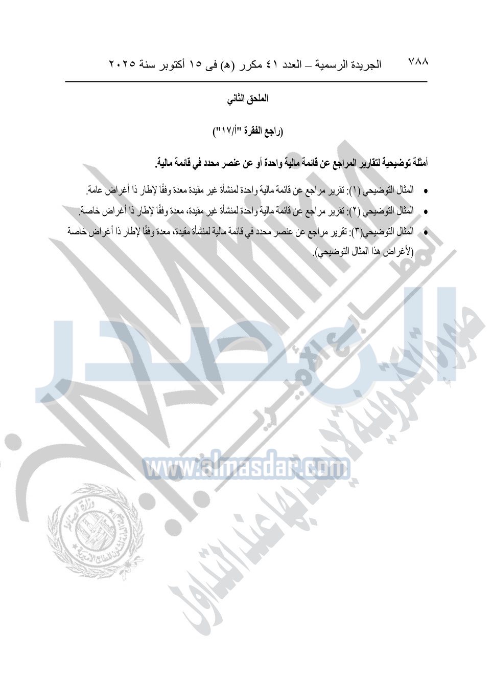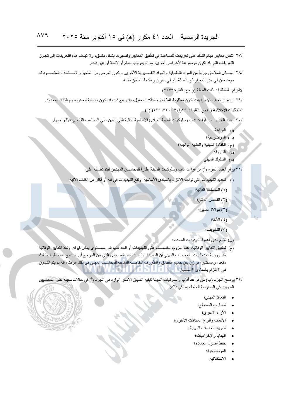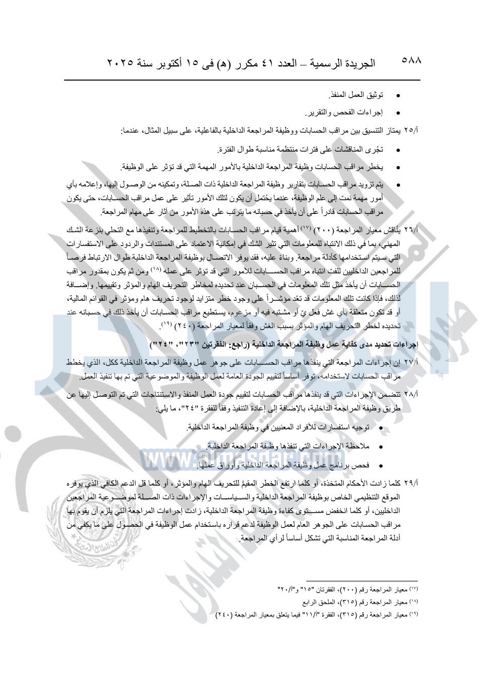 نشرت الجريدة الرسمية في العدد 41 مكرر "هـ" الصادر في 15 أكتوبر سنة 2025، قرار رئيس مجلس الوزراء رقم 3725 لسنة 2025، بشأن العمل بالمعايير المصرية للمراجعة والفحص المحدود ومهام التأكد الأخرى المرافقة لهذا القرار.