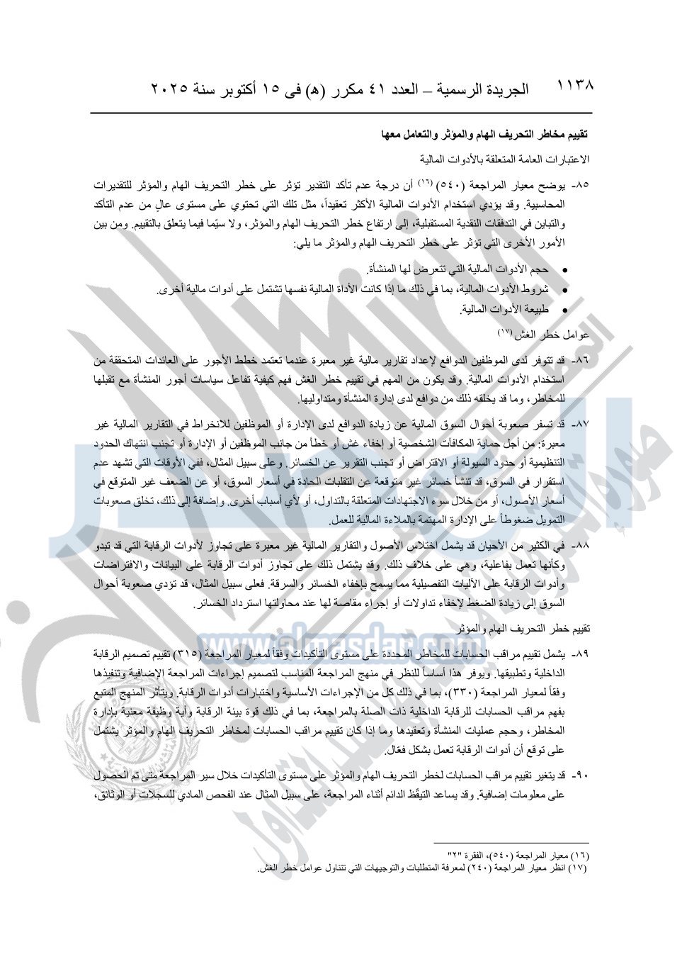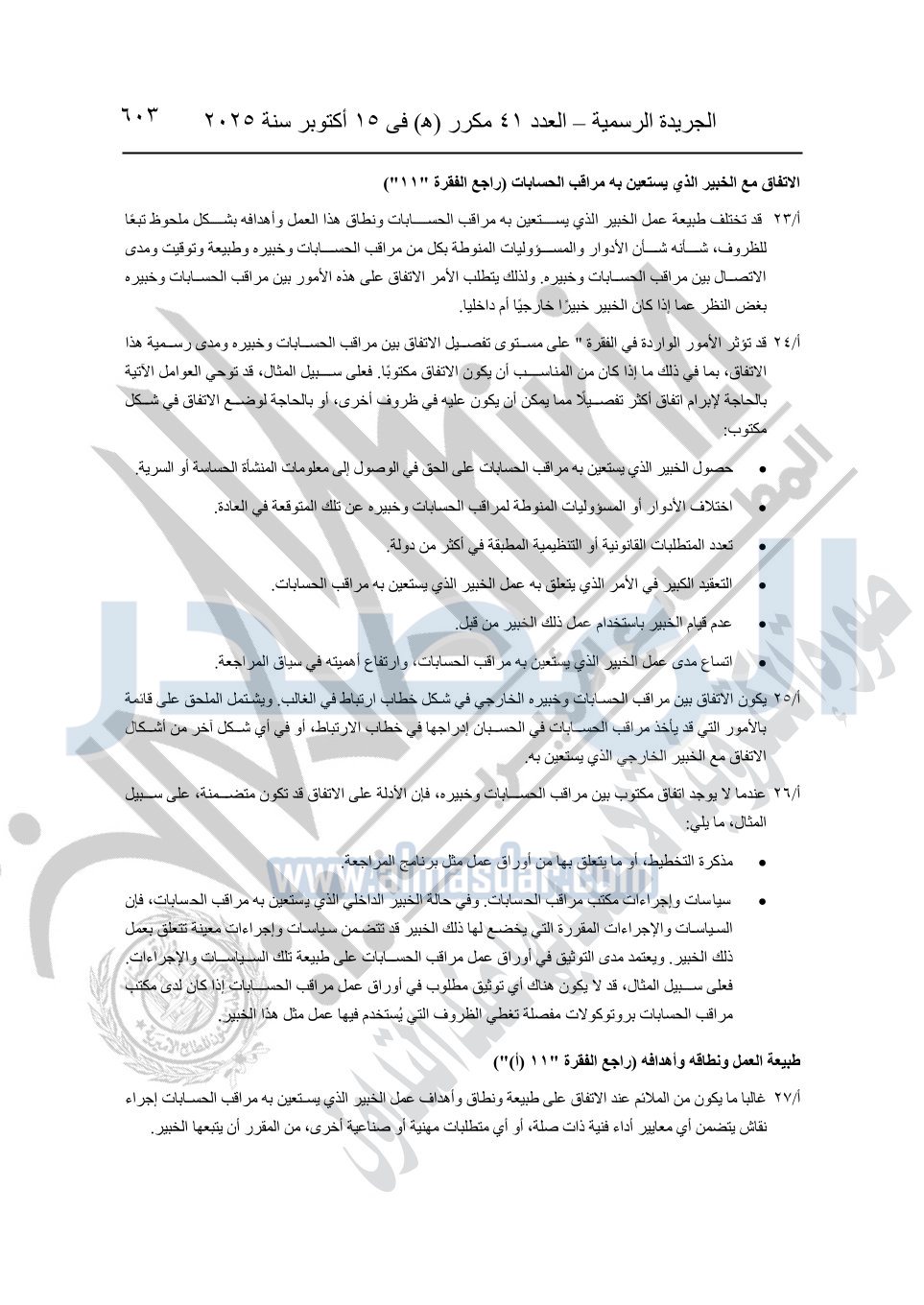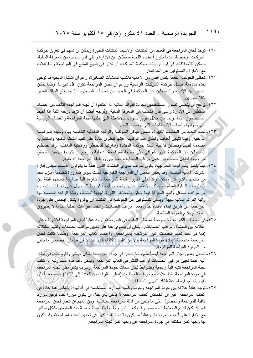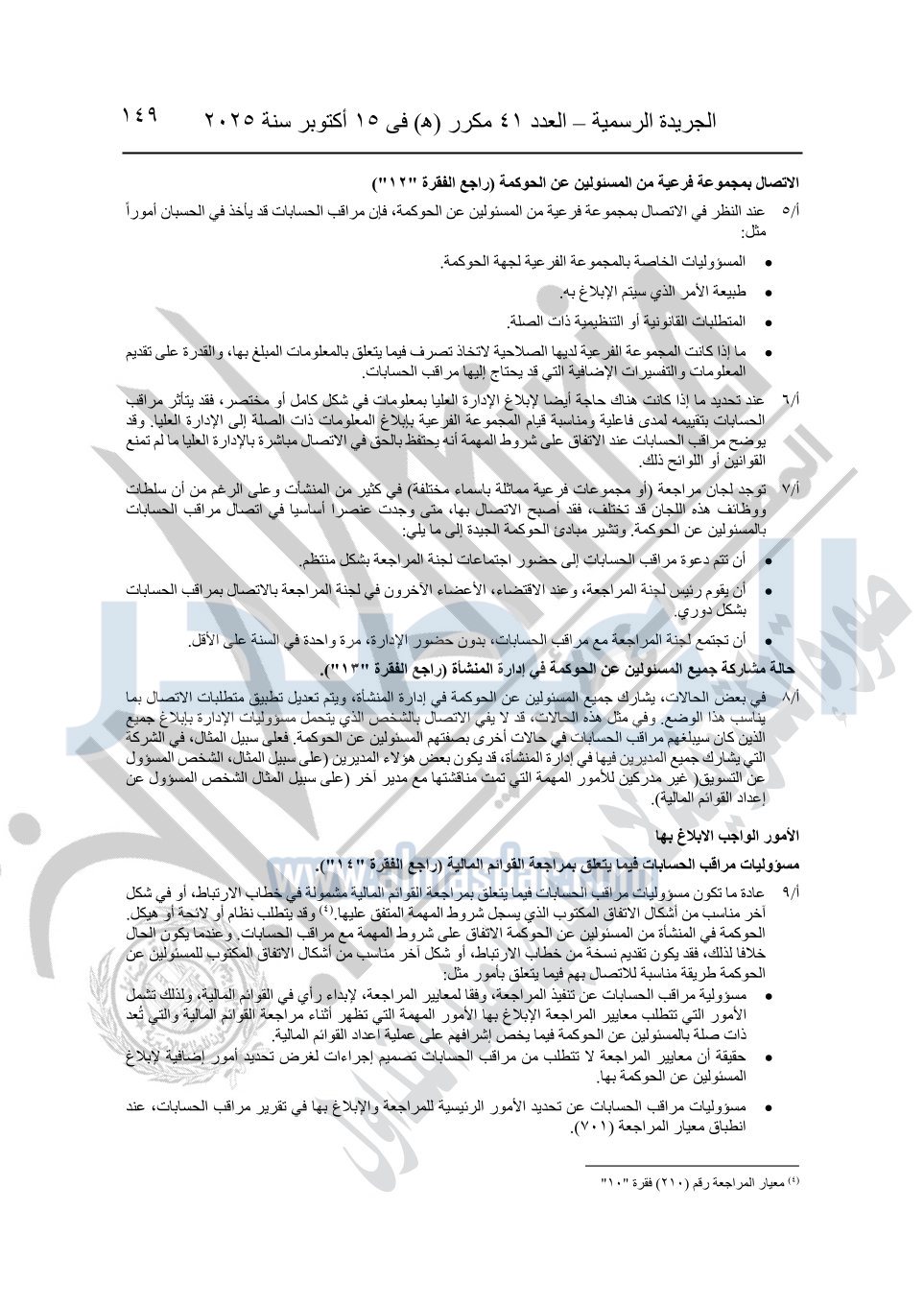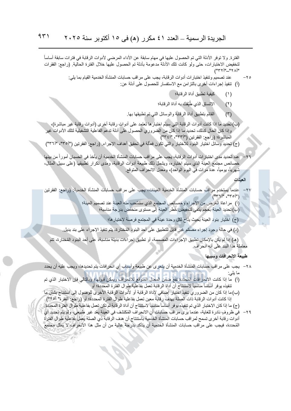 نشرت الجريدة الرسمية في العدد 41 مكرر "هـ" الصادر في 15 أكتوبر سنة 2025، قرار رئيس مجلس الوزراء رقم 3725 لسنة 2025، بشأن العمل بالمعايير المصرية للمراجعة والفحص المحدود ومهام التأكد الأخرى المرافقة لهذا القرار.