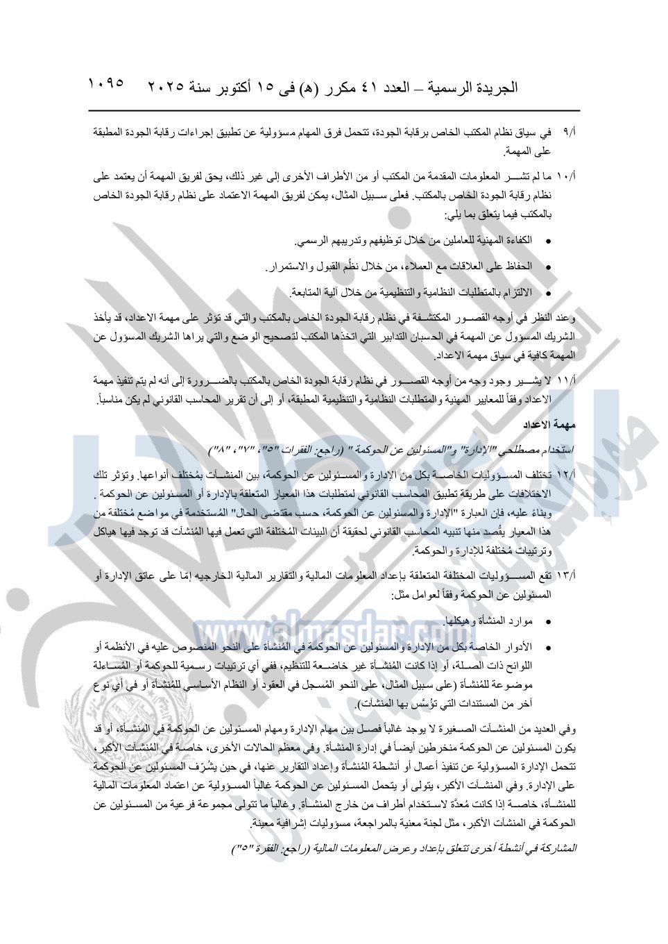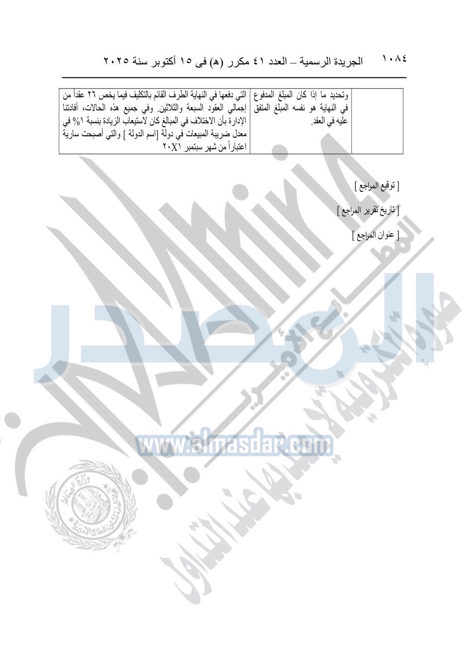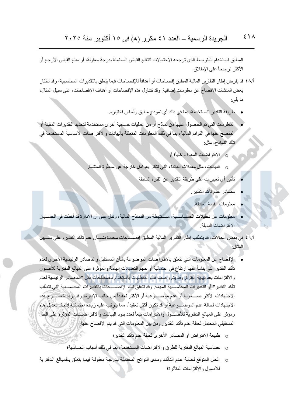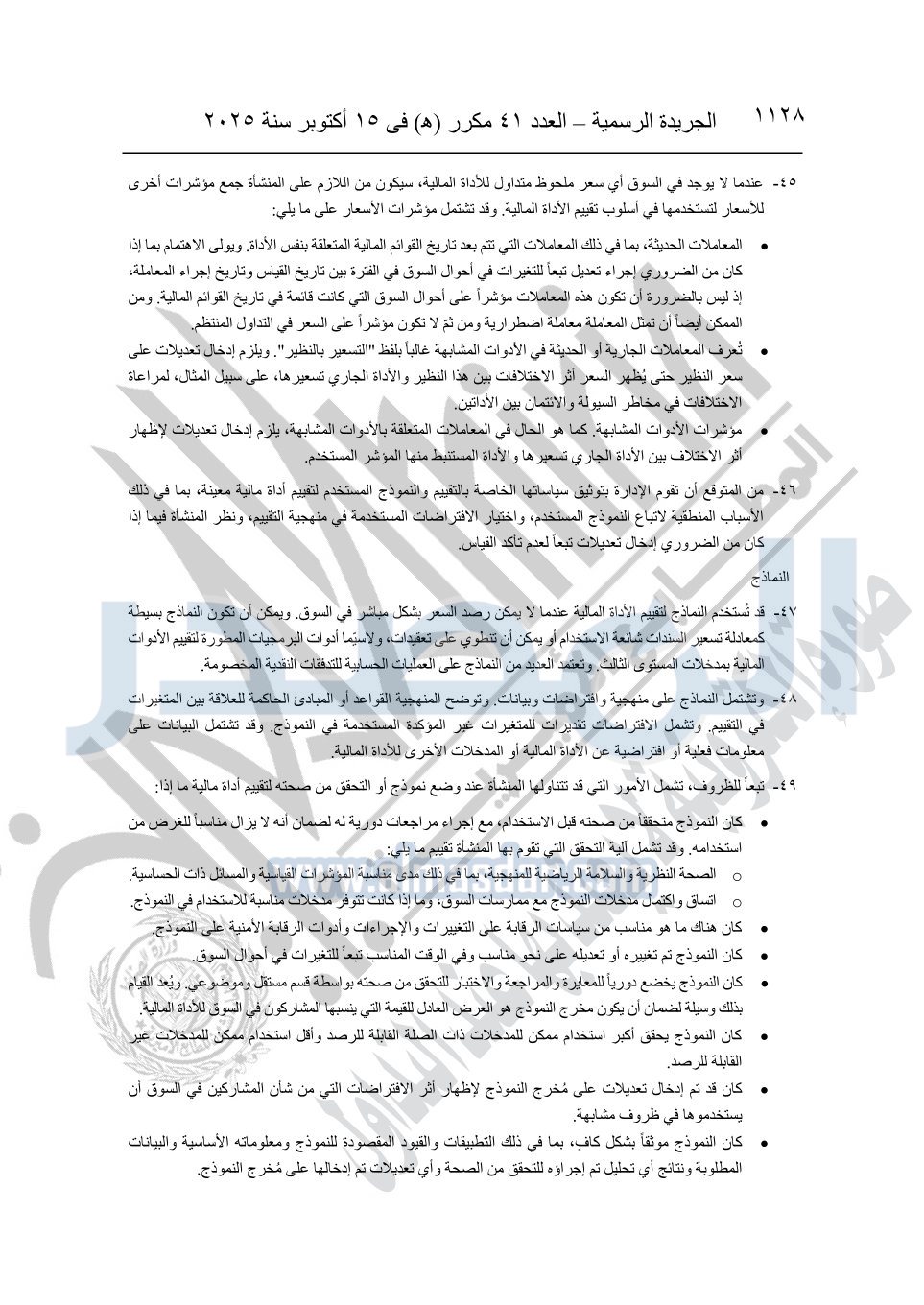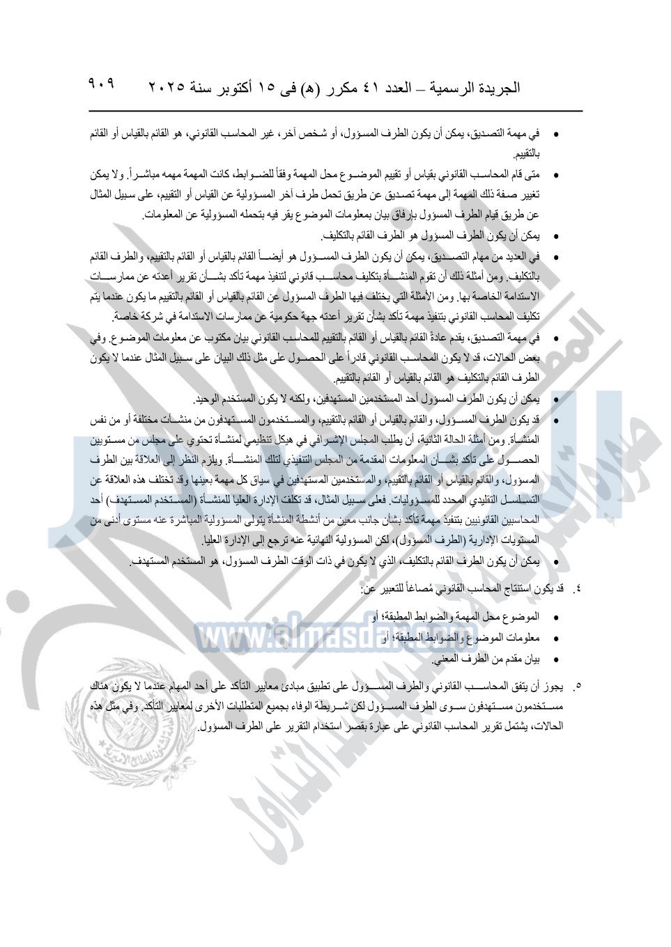 نشرت الجريدة الرسمية في العدد 41 مكرر "هـ" الصادر في 15 أكتوبر سنة 2025، قرار رئيس مجلس الوزراء رقم 3725 لسنة 2025، بشأن العمل بالمعايير المصرية للمراجعة والفحص المحدود ومهام التأكد الأخرى المرافقة لهذا القرار.