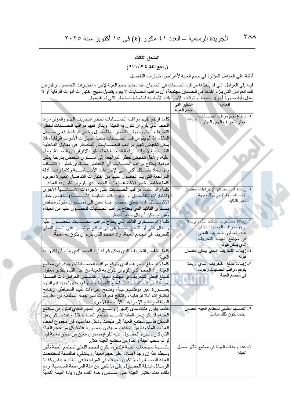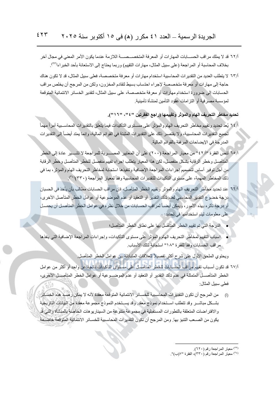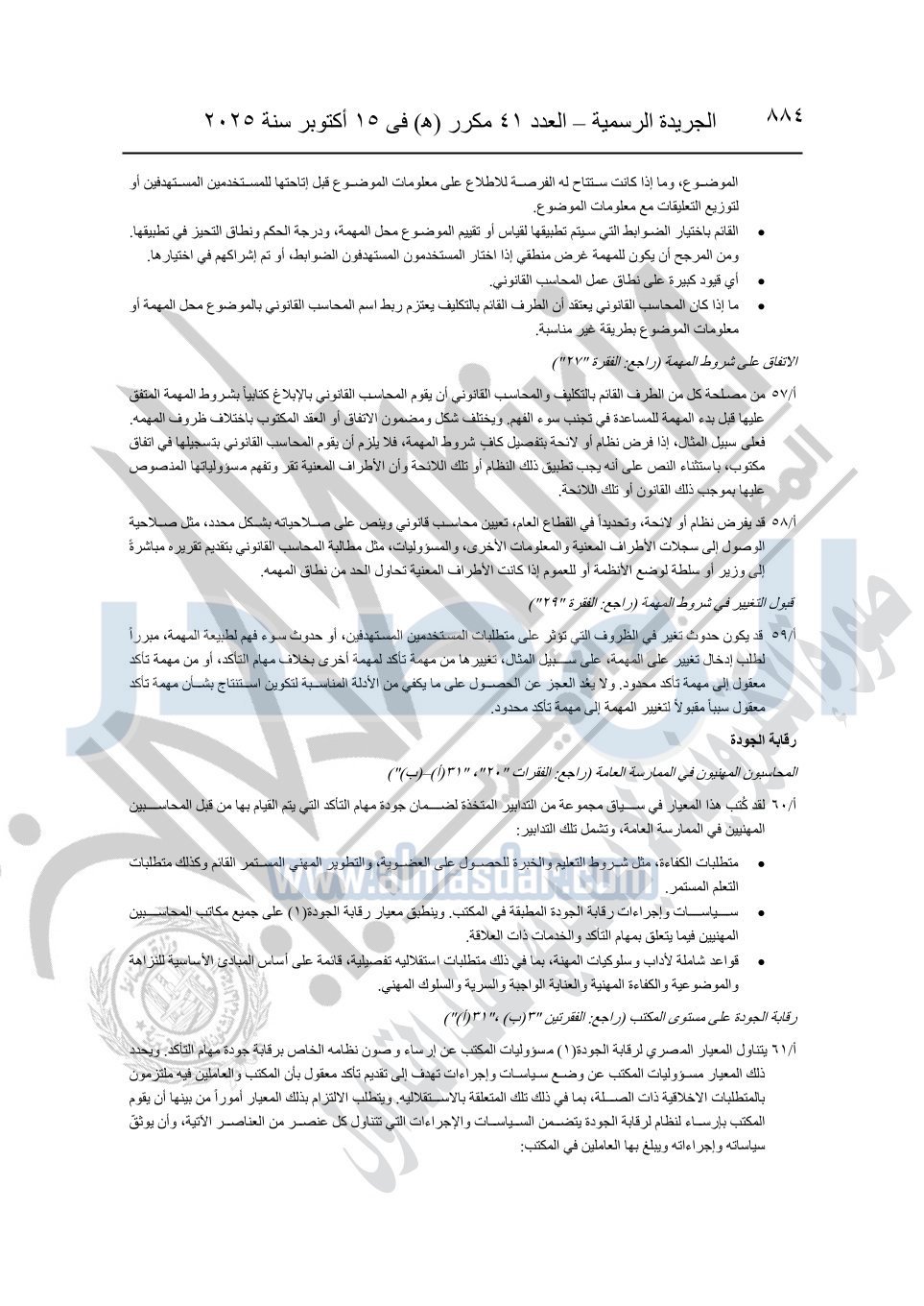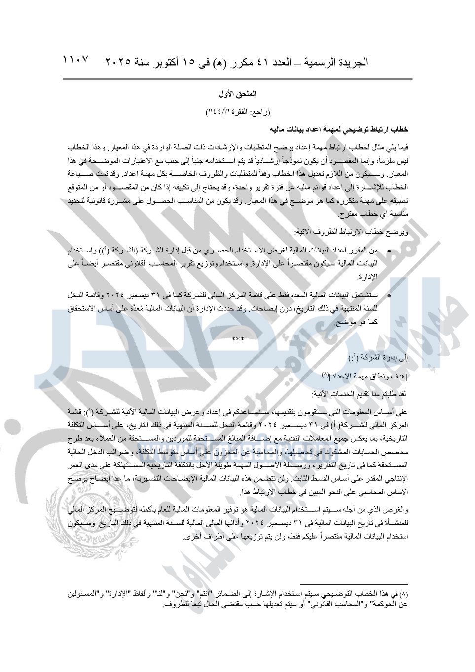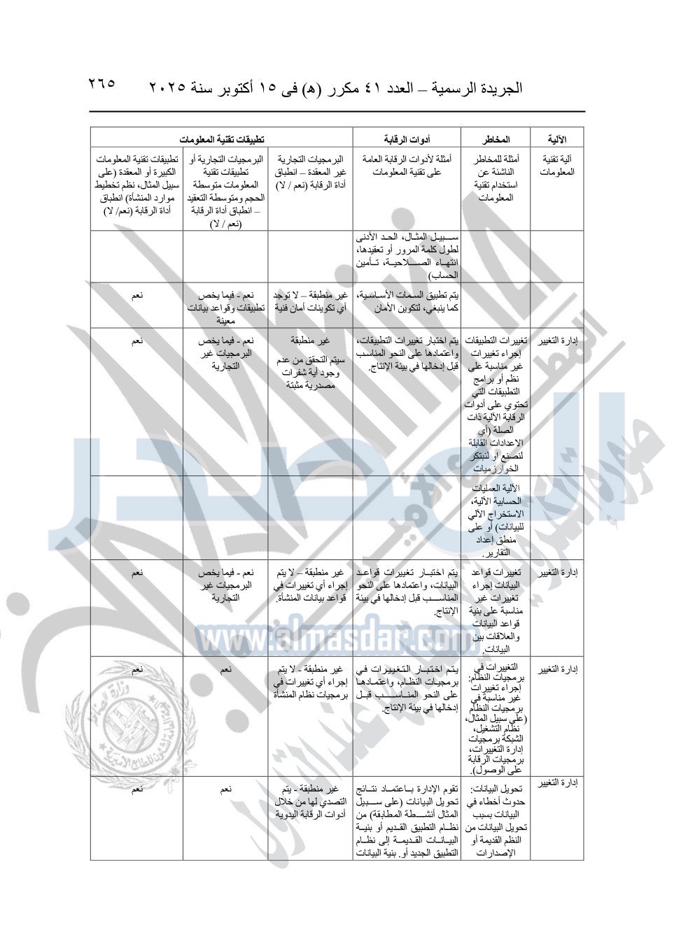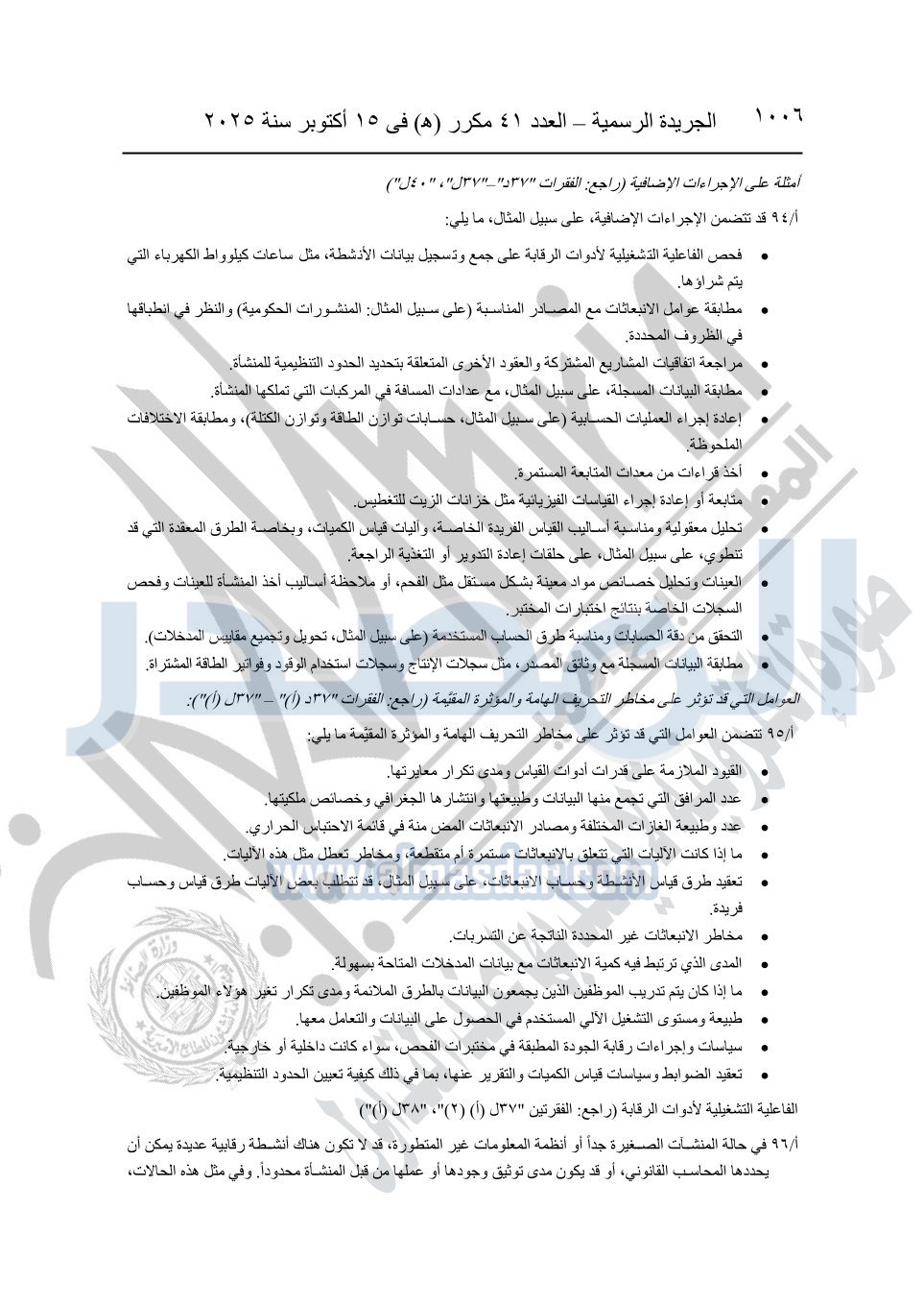 نشرت الجريدة الرسمية في العدد 41 مكرر "هـ" الصادر في 15 أكتوبر سنة 2025، قرار رئيس مجلس الوزراء رقم 3725 لسنة 2025، بشأن العمل بالمعايير المصرية للمراجعة والفحص المحدود ومهام التأكد الأخرى المرافقة لهذا القرار.