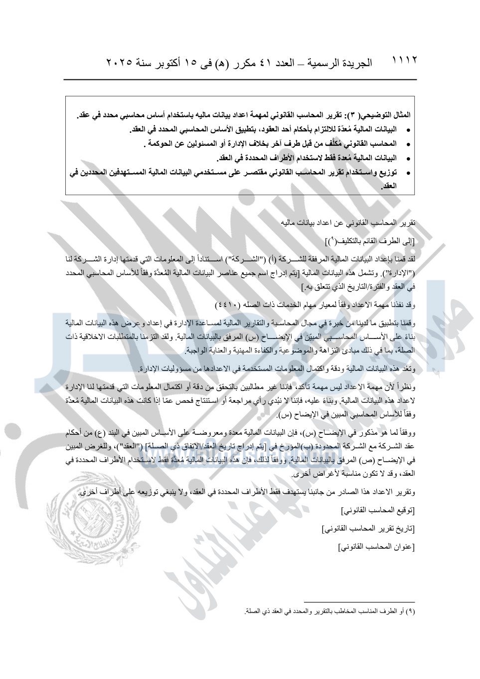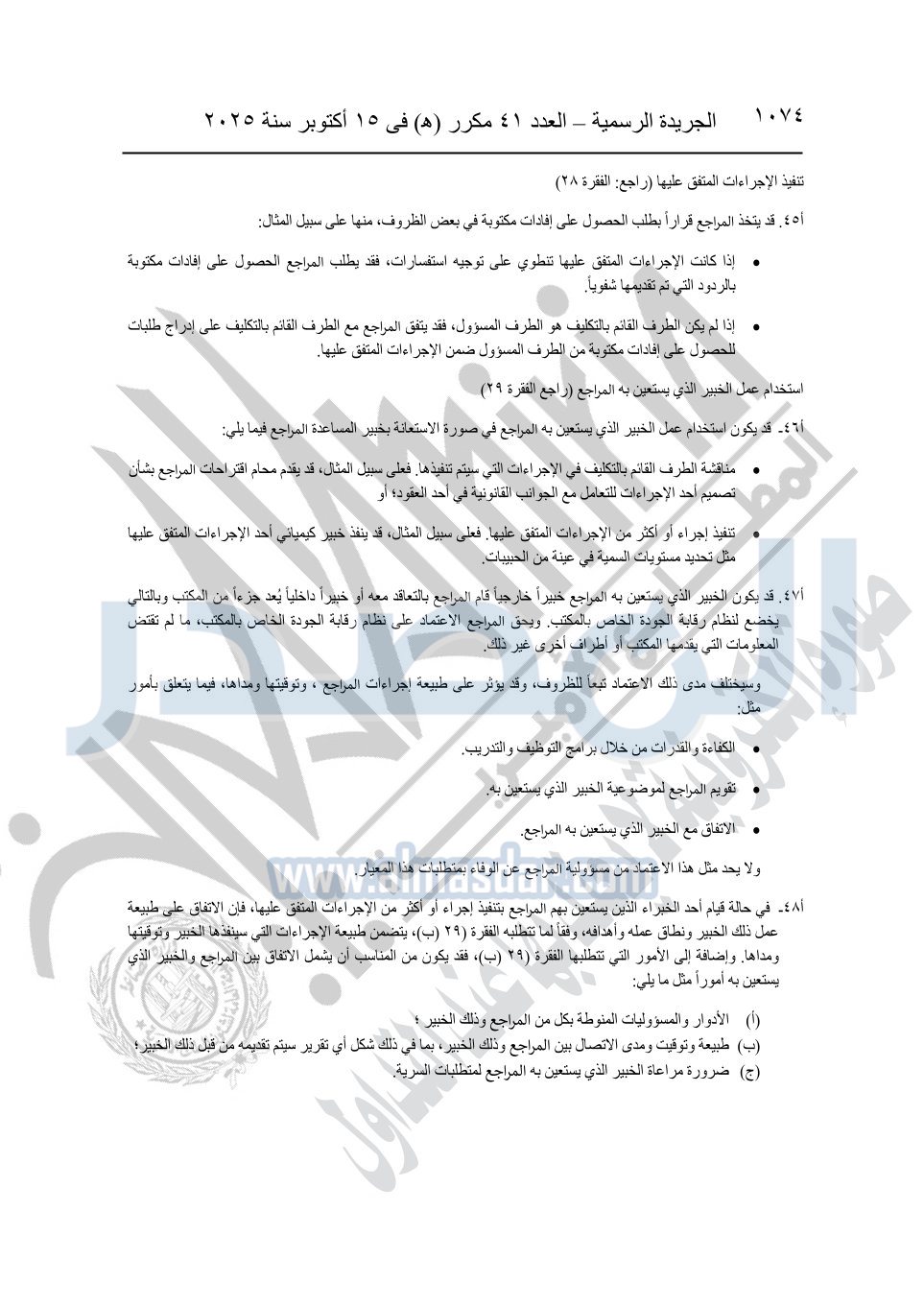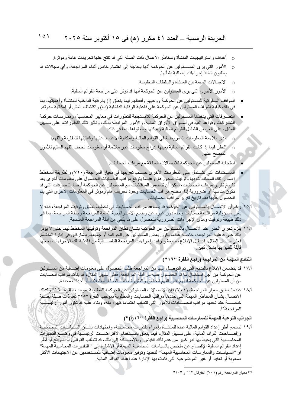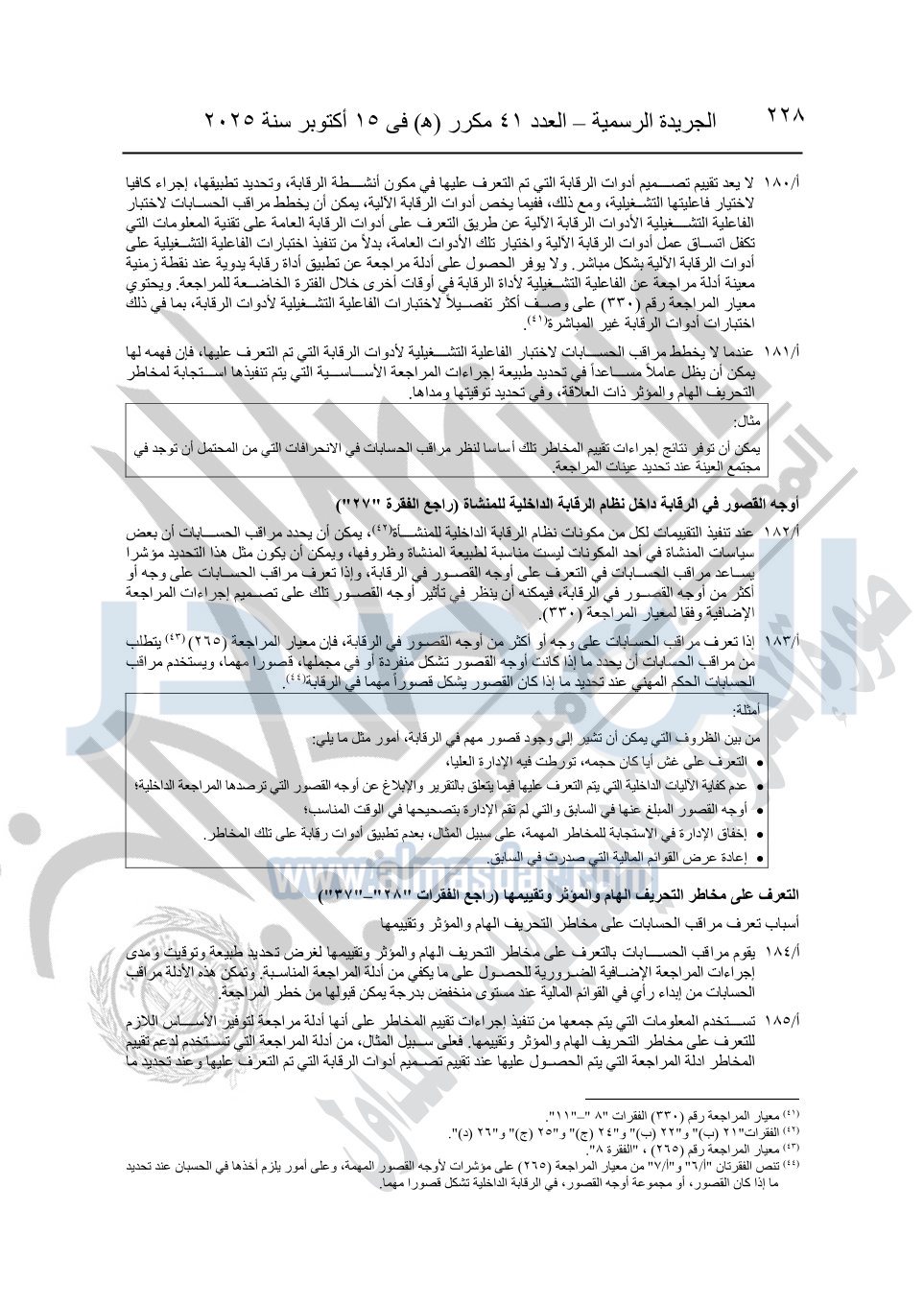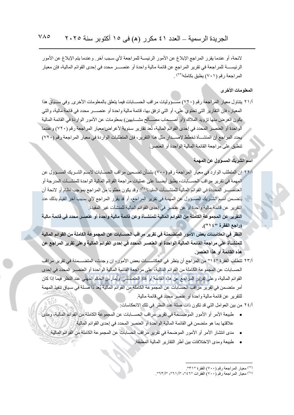 نشرت الجريدة الرسمية في العدد 41 مكرر "هـ" الصادر في 15 أكتوبر سنة 2025، قرار رئيس مجلس الوزراء رقم 3725 لسنة 2025، بشأن العمل بالمعايير المصرية للمراجعة والفحص المحدود ومهام التأكد الأخرى المرافقة لهذا القرار.