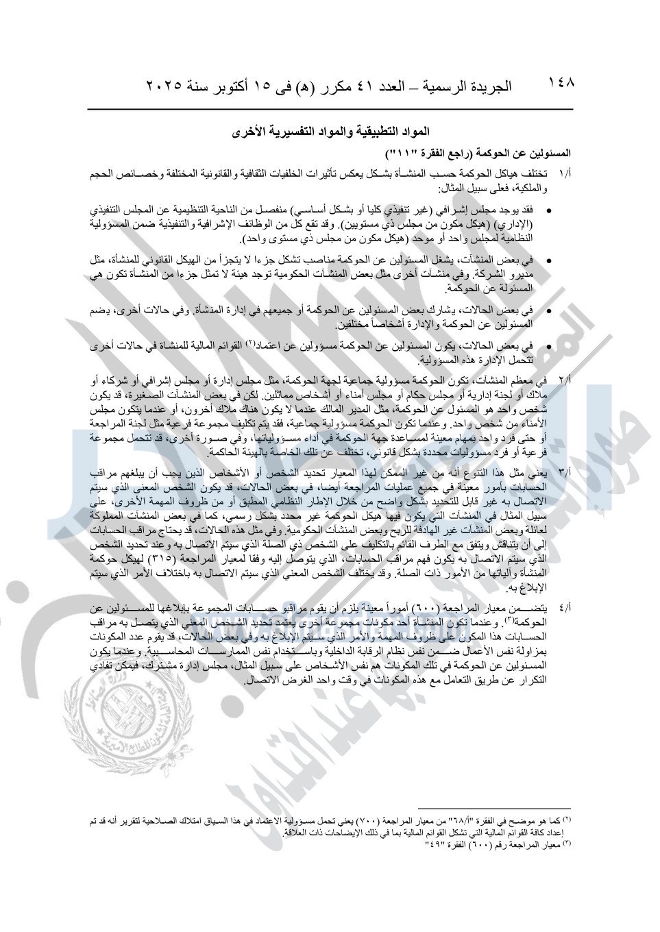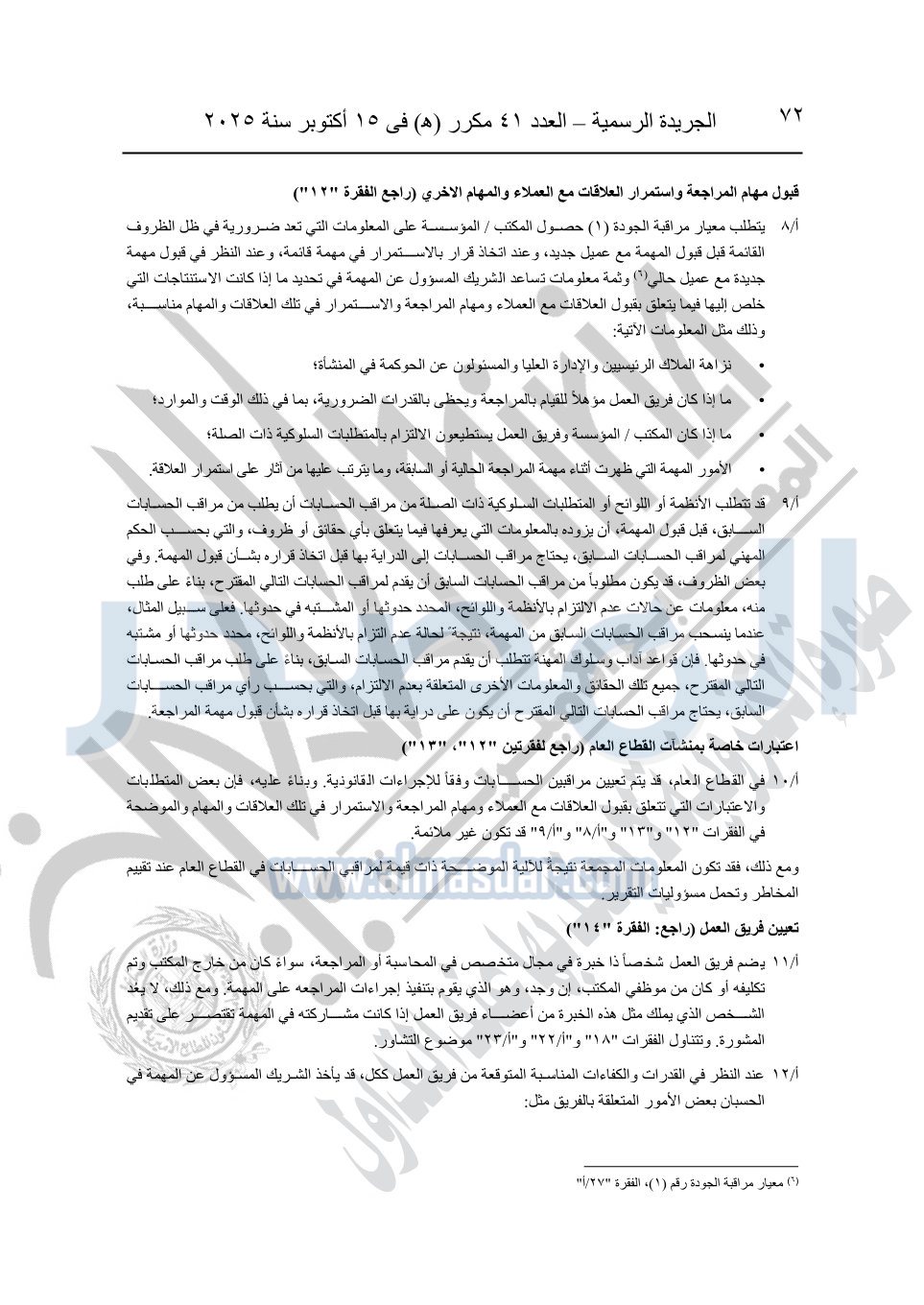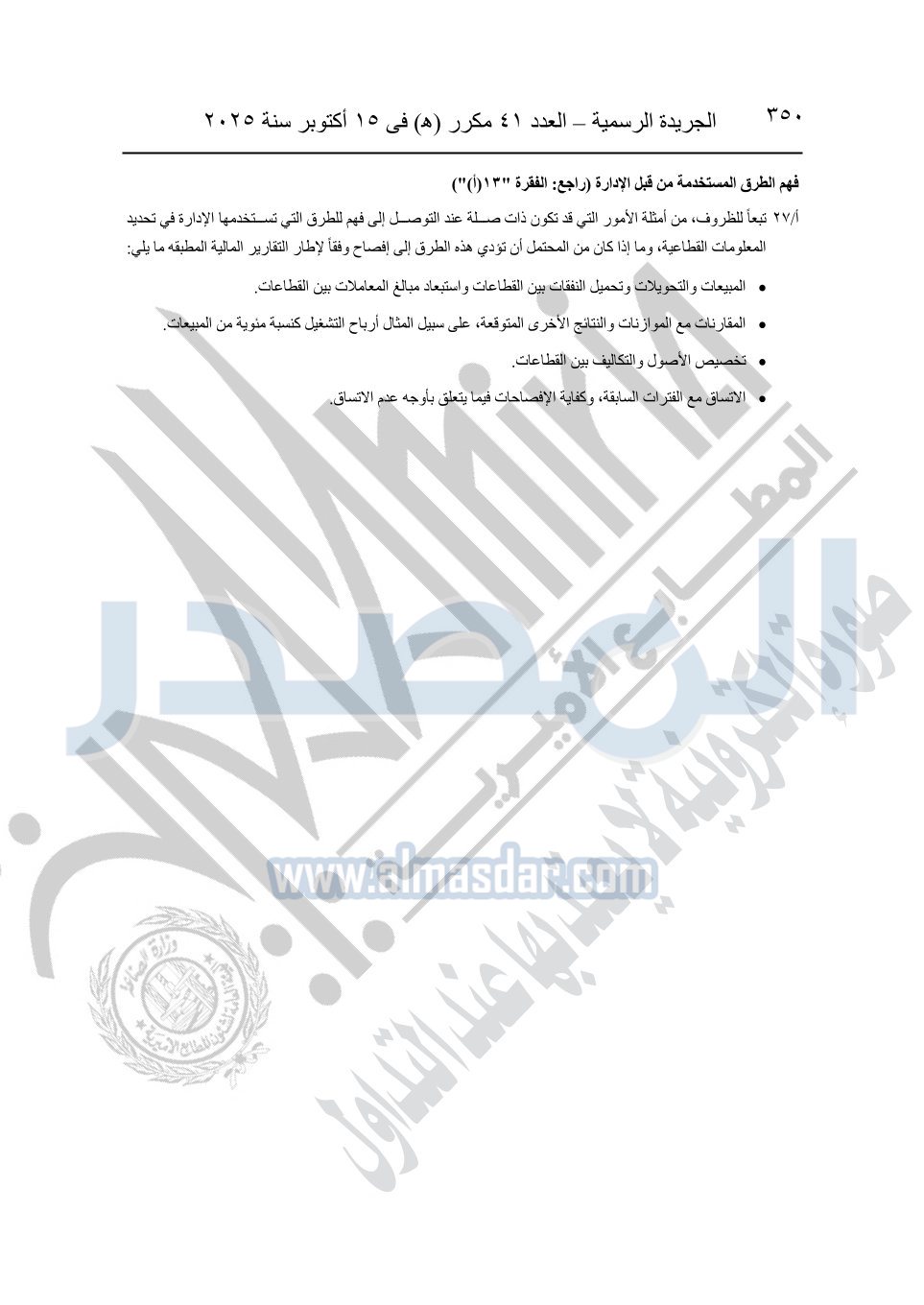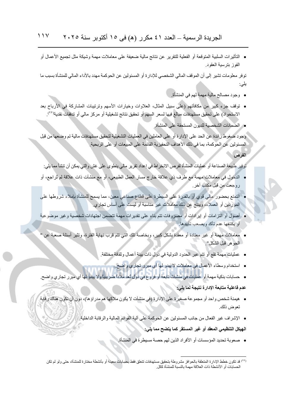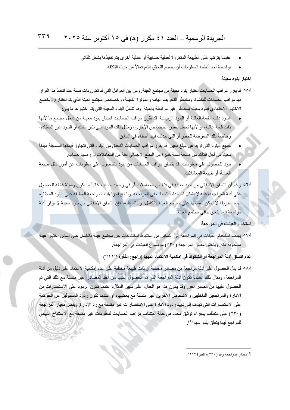 نشرت الجريدة الرسمية في العدد 41 مكرر "هـ" الصادر في 15 أكتوبر سنة 2025، قرار رئيس مجلس الوزراء رقم 3725 لسنة 2025، بشأن العمل بالمعايير المصرية للمراجعة والفحص المحدود ومهام التأكد الأخرى المرافقة لهذا القرار.