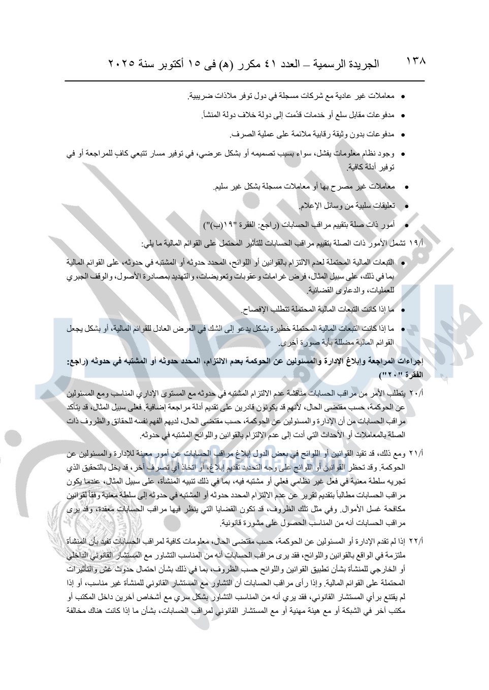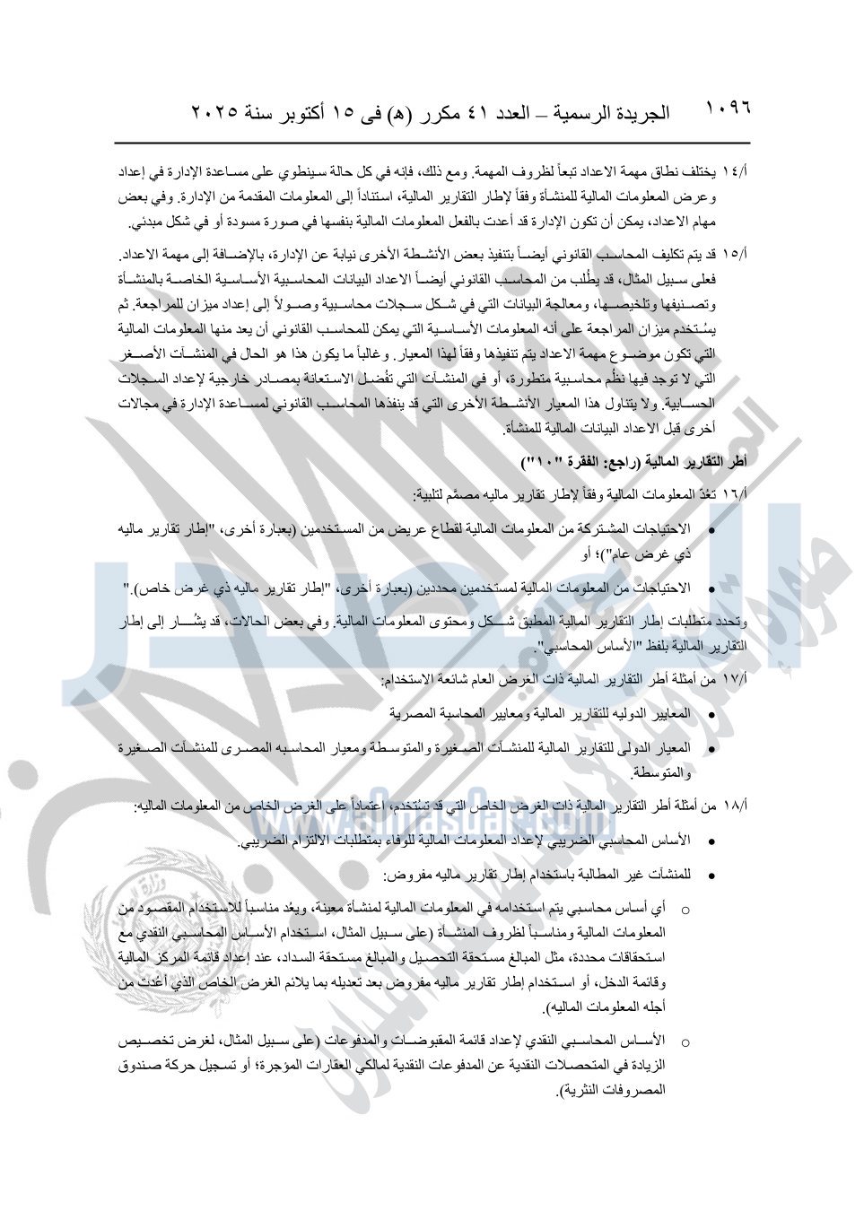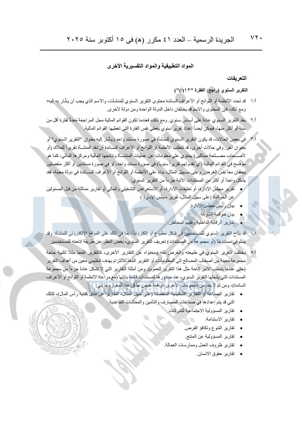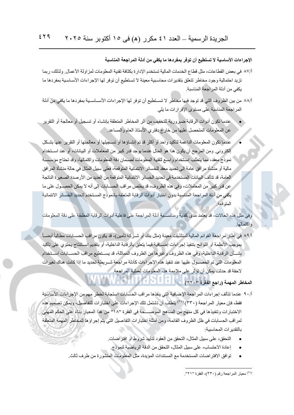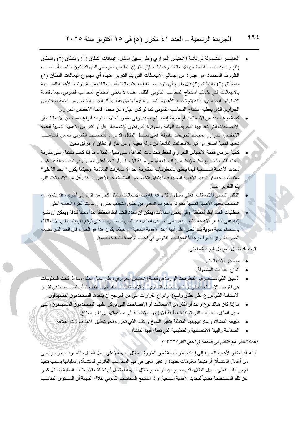 نشرت الجريدة الرسمية في العدد 41 مكرر "هـ" الصادر في 15 أكتوبر سنة 2025، قرار رئيس مجلس الوزراء رقم 3725 لسنة 2025، بشأن العمل بالمعايير المصرية للمراجعة والفحص المحدود ومهام التأكد الأخرى المرافقة لهذا القرار.