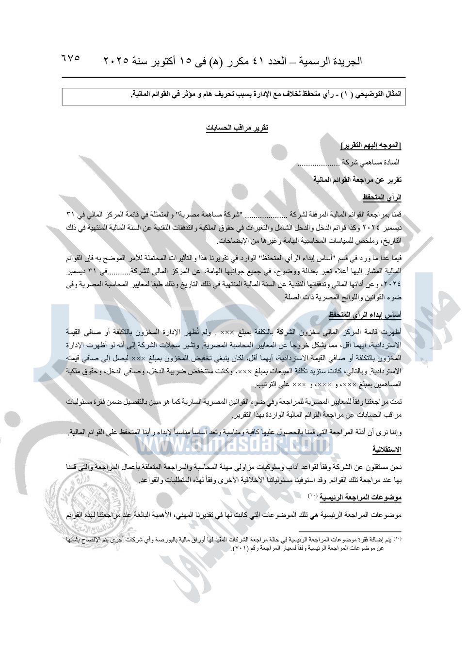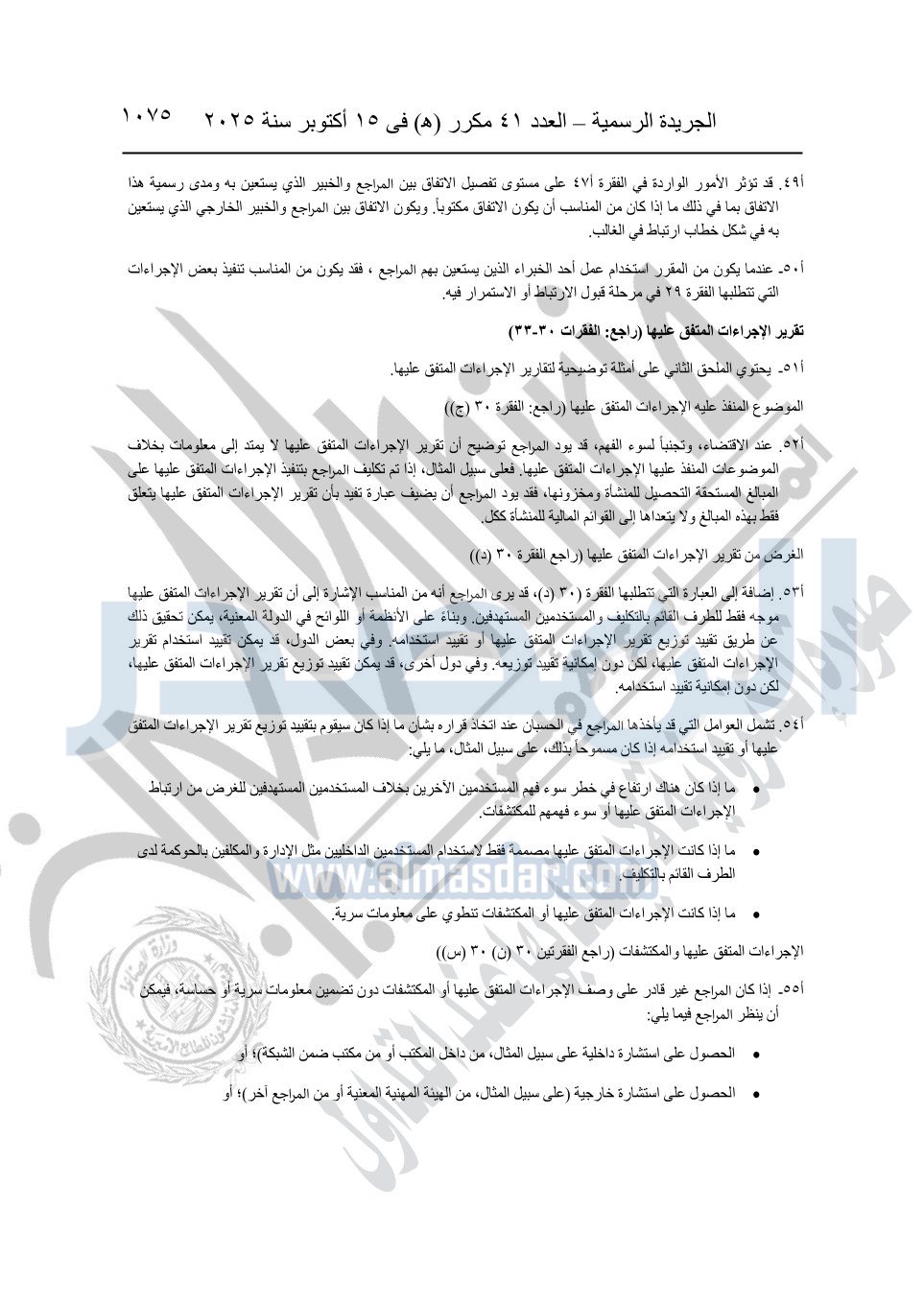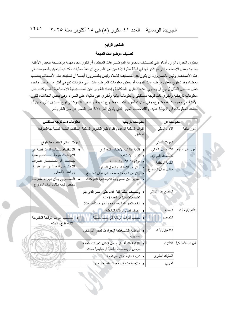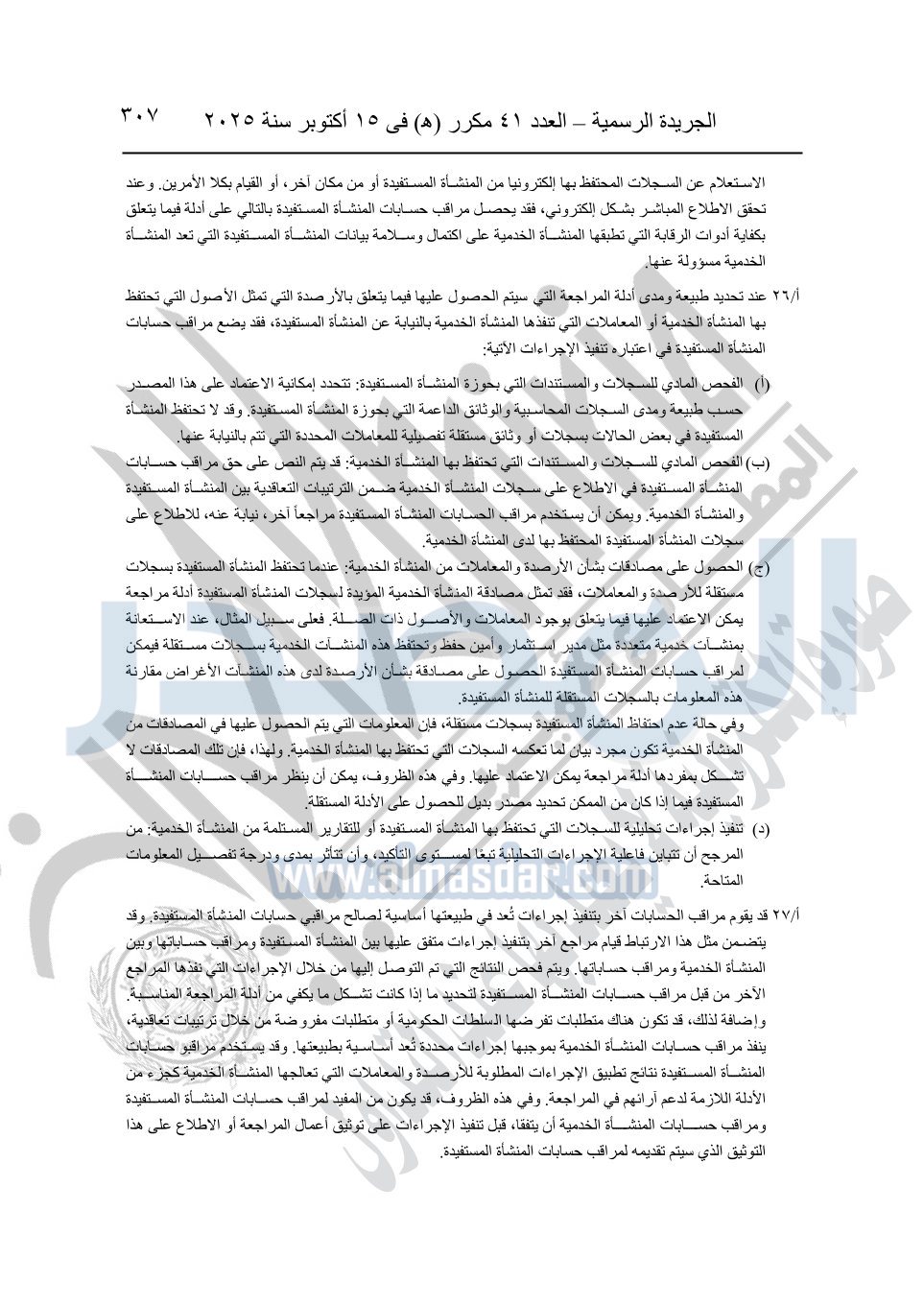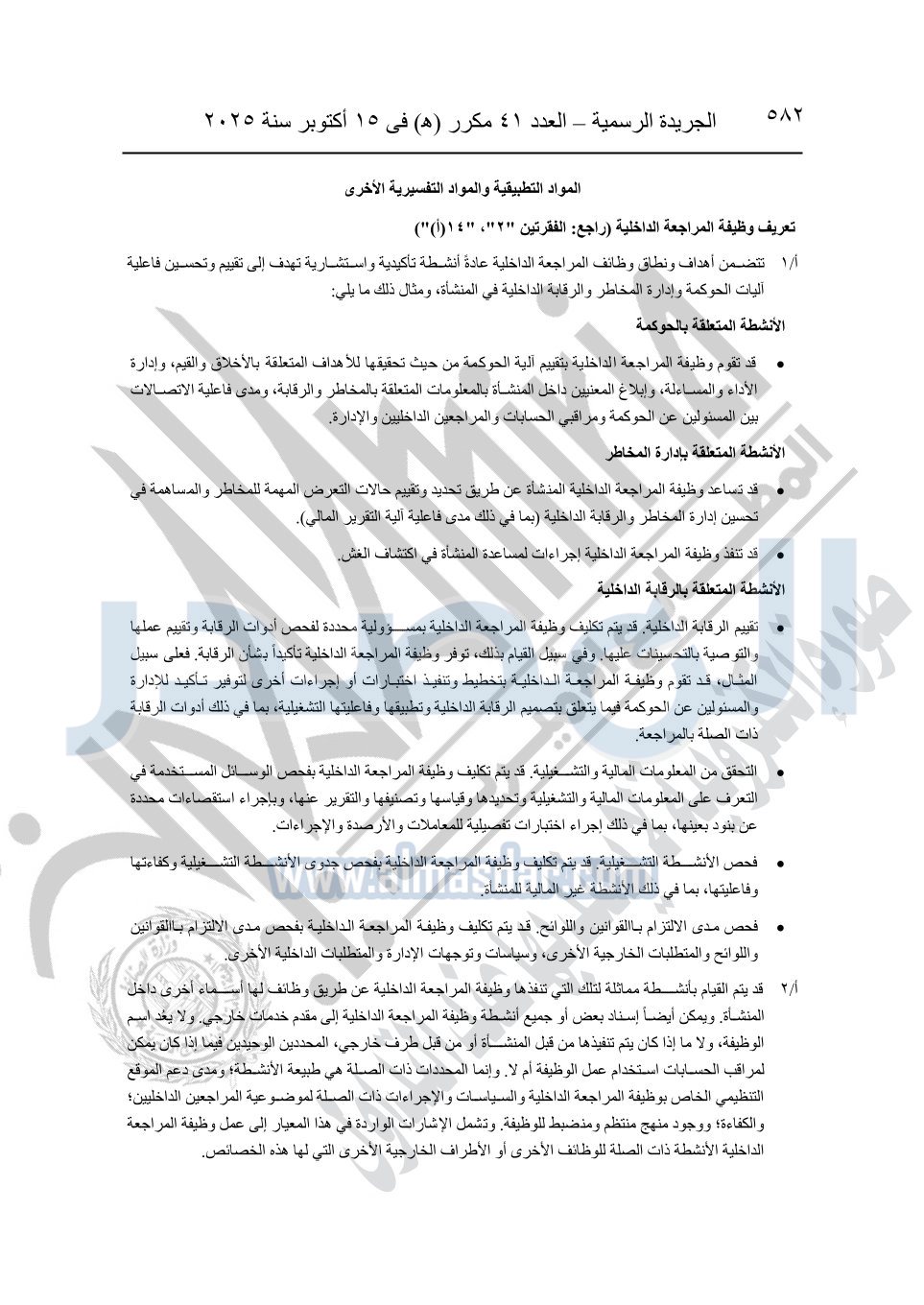 نشرت الجريدة الرسمية في العدد 41 مكرر "هـ" الصادر في 15 أكتوبر سنة 2025، قرار رئيس مجلس الوزراء رقم 3725 لسنة 2025، بشأن العمل بالمعايير المصرية للمراجعة والفحص المحدود ومهام التأكد الأخرى المرافقة لهذا القرار.