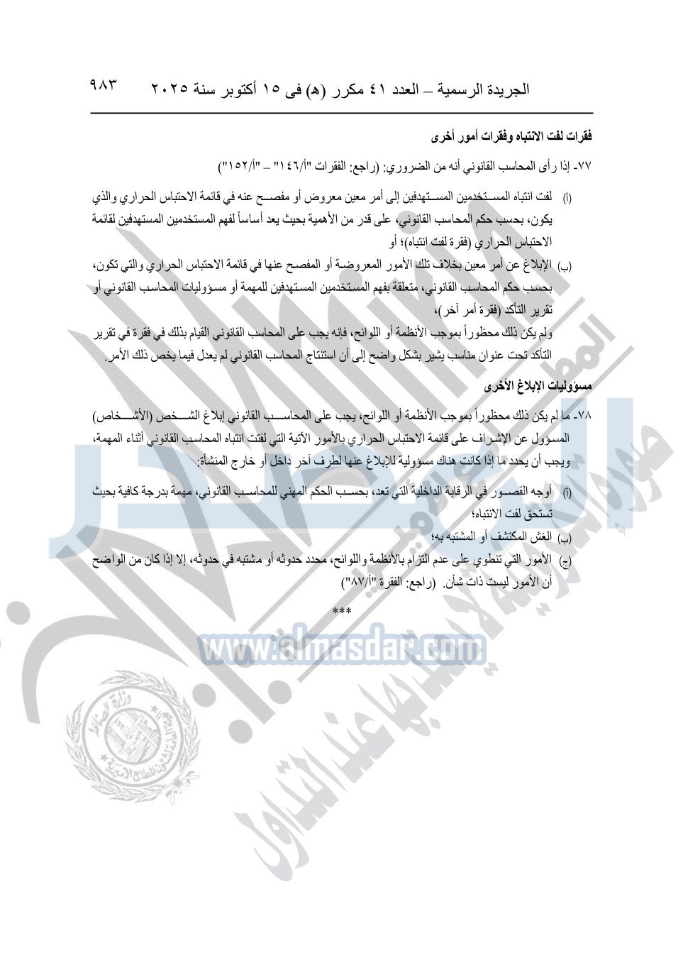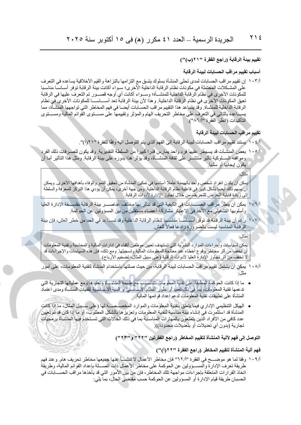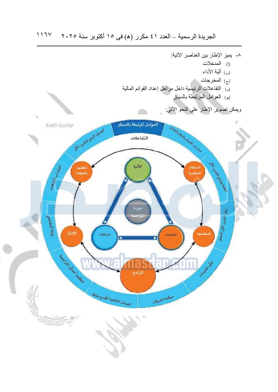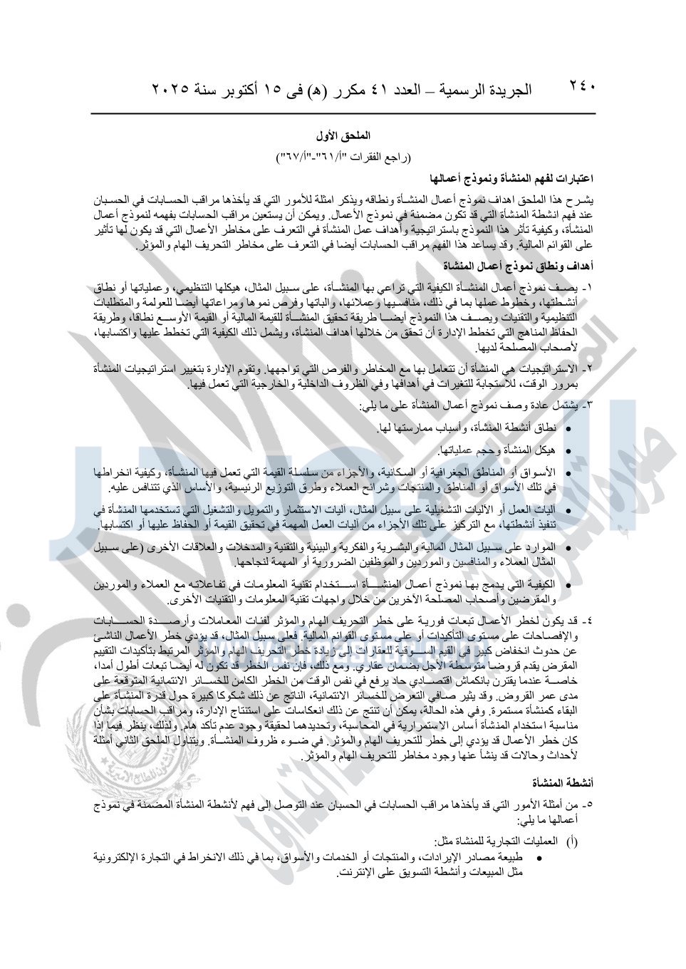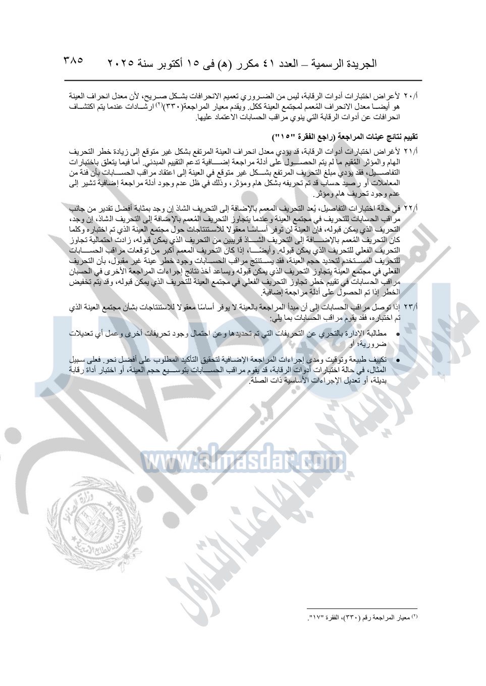 نشرت الجريدة الرسمية في العدد 41 مكرر "هـ" الصادر في 15 أكتوبر سنة 2025، قرار رئيس مجلس الوزراء رقم 3725 لسنة 2025، بشأن العمل بالمعايير المصرية للمراجعة والفحص المحدود ومهام التأكد الأخرى المرافقة لهذا القرار.