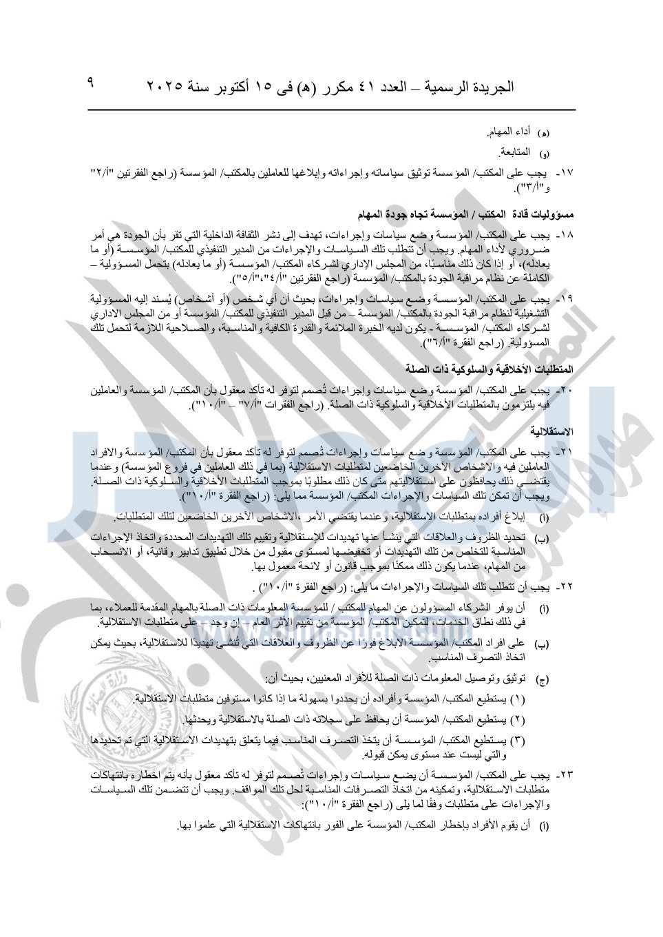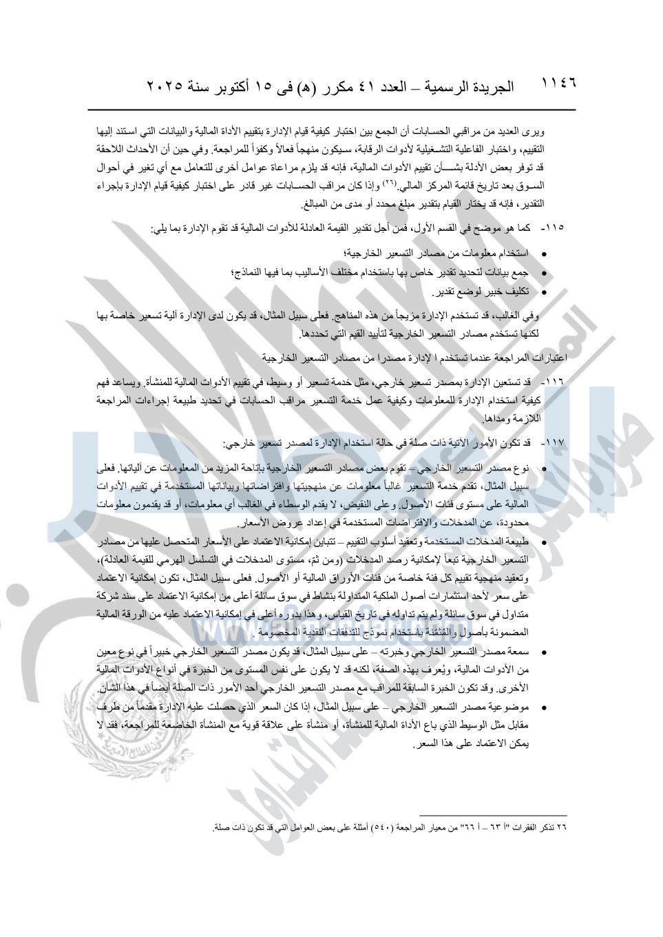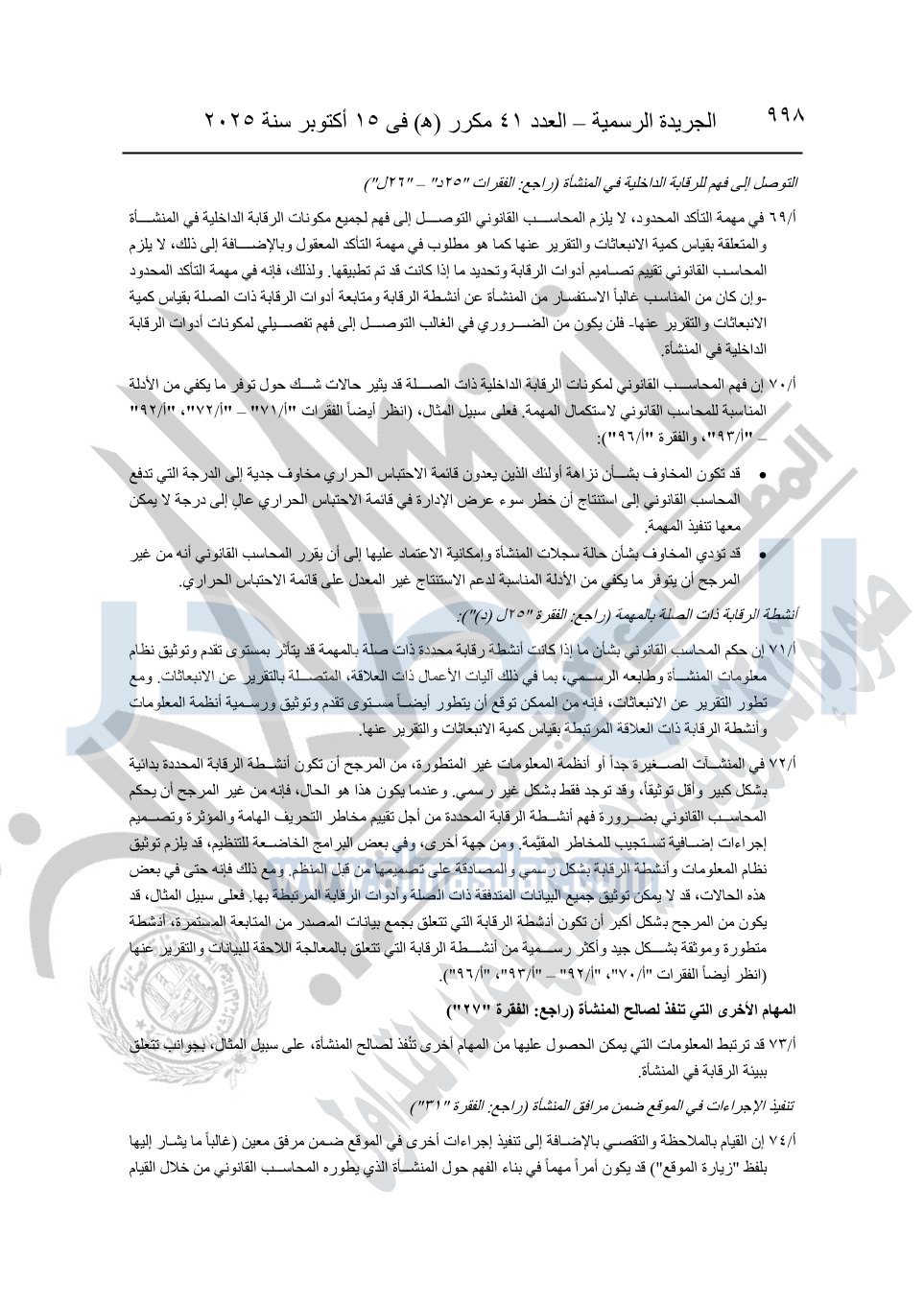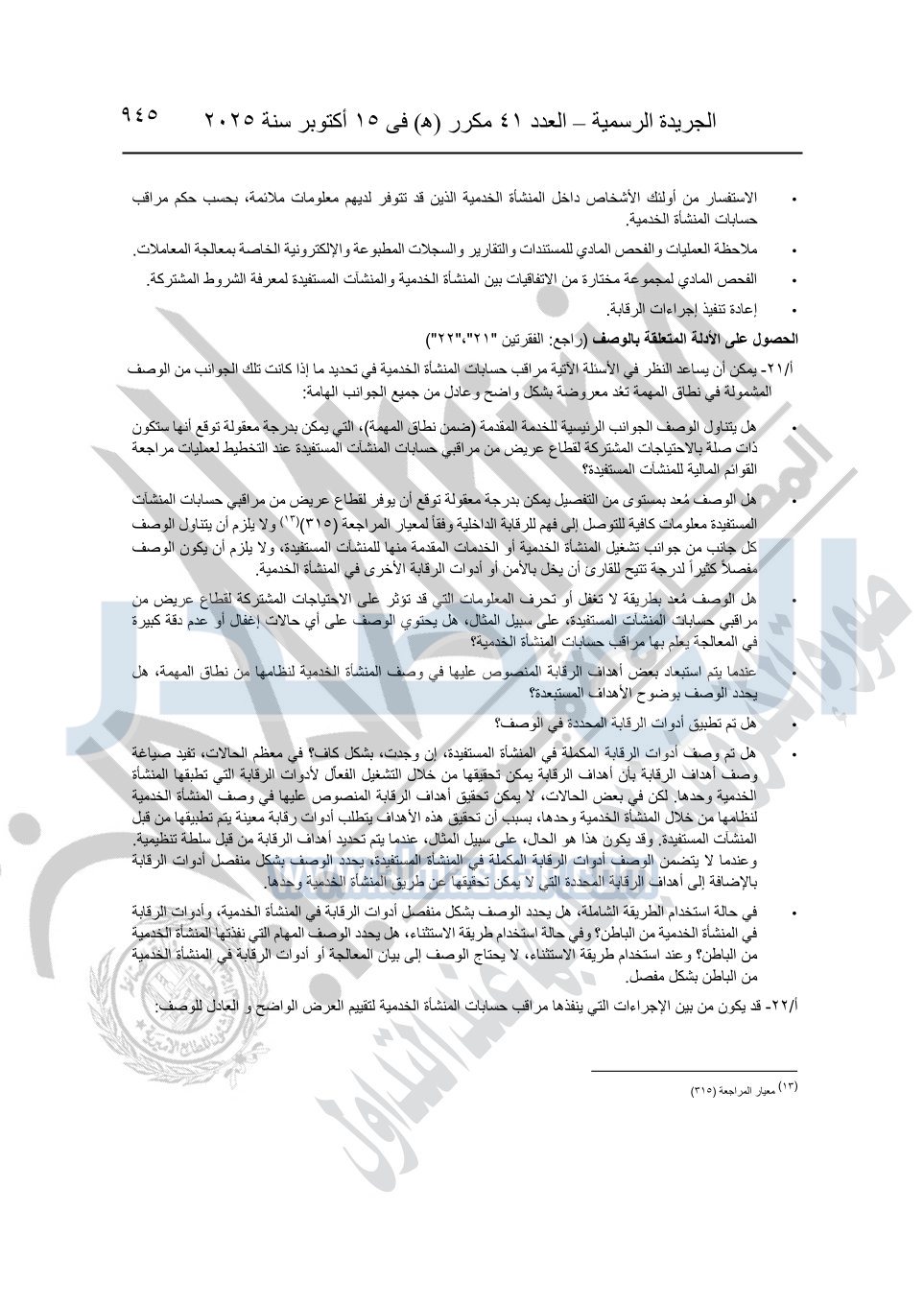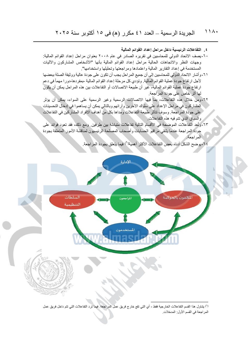 نشرت الجريدة الرسمية في العدد 41 مكرر "هـ" الصادر في 15 أكتوبر سنة 2025، قرار رئيس مجلس الوزراء رقم 3725 لسنة 2025، بشأن العمل بالمعايير المصرية للمراجعة والفحص المحدود ومهام التأكد الأخرى المرافقة لهذا القرار.