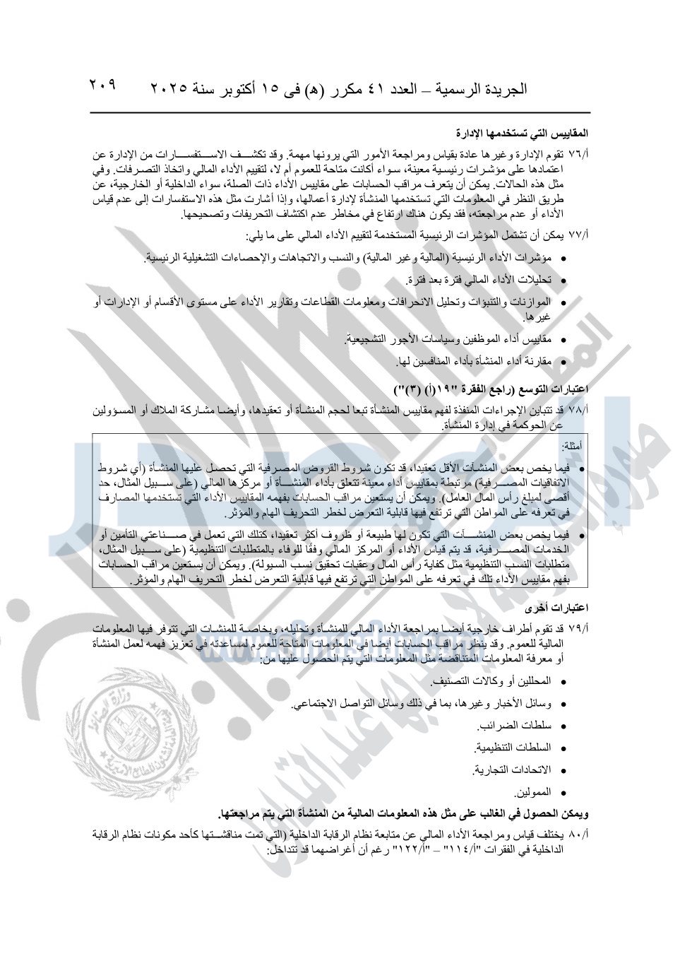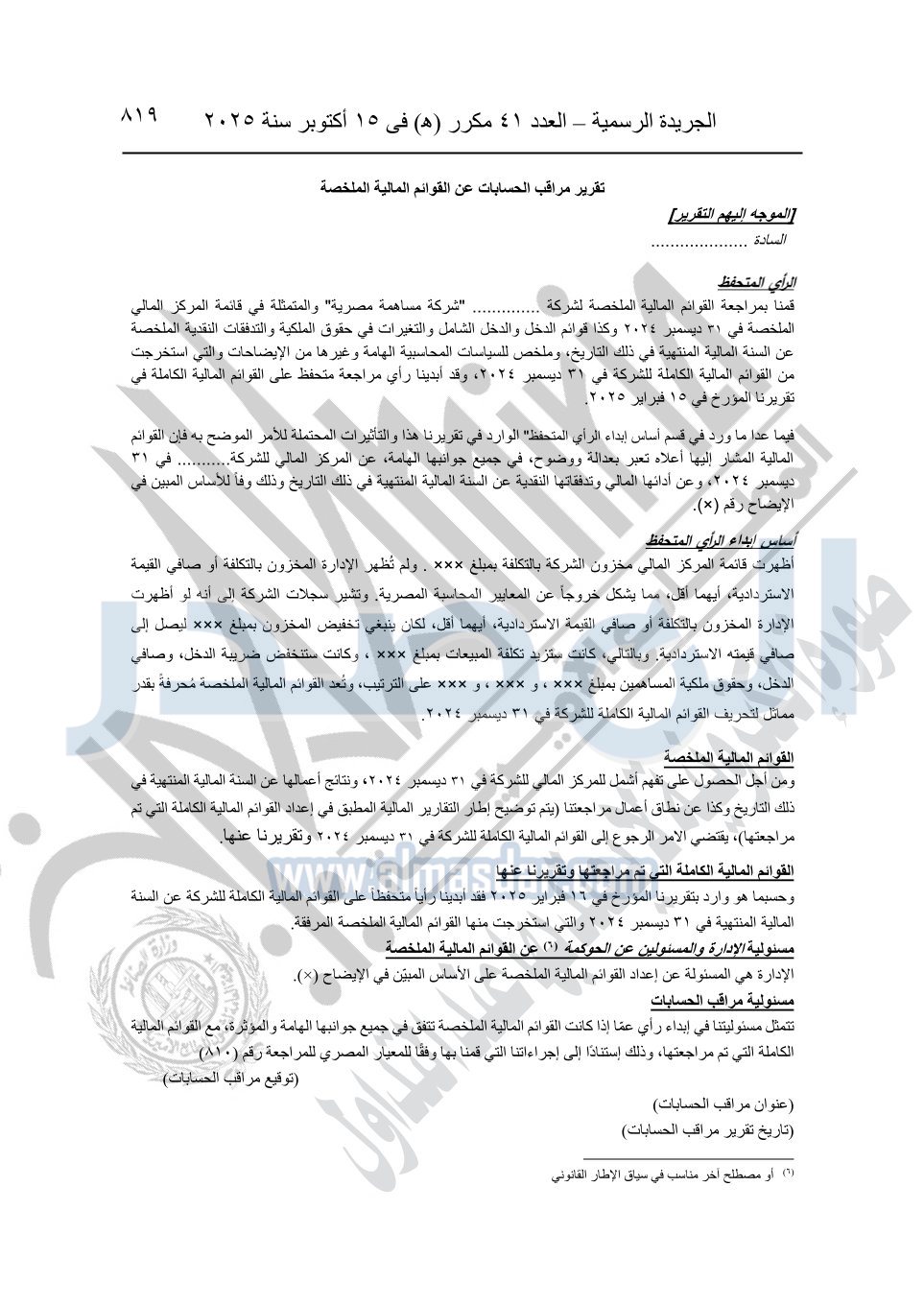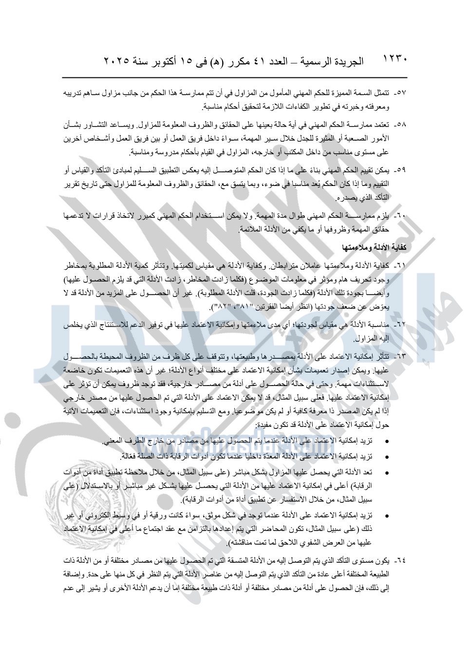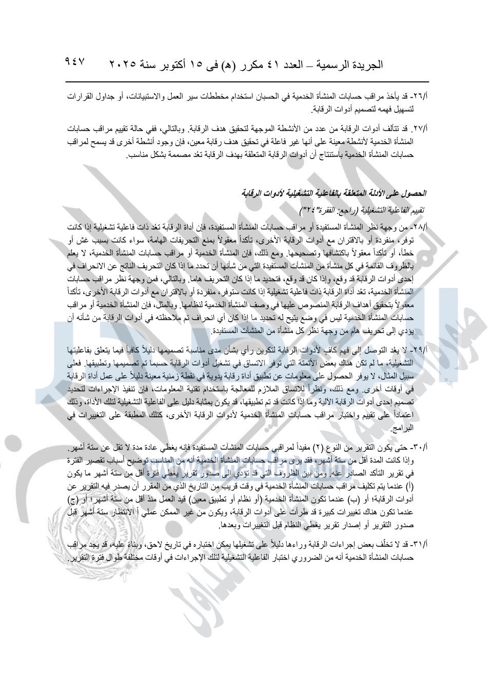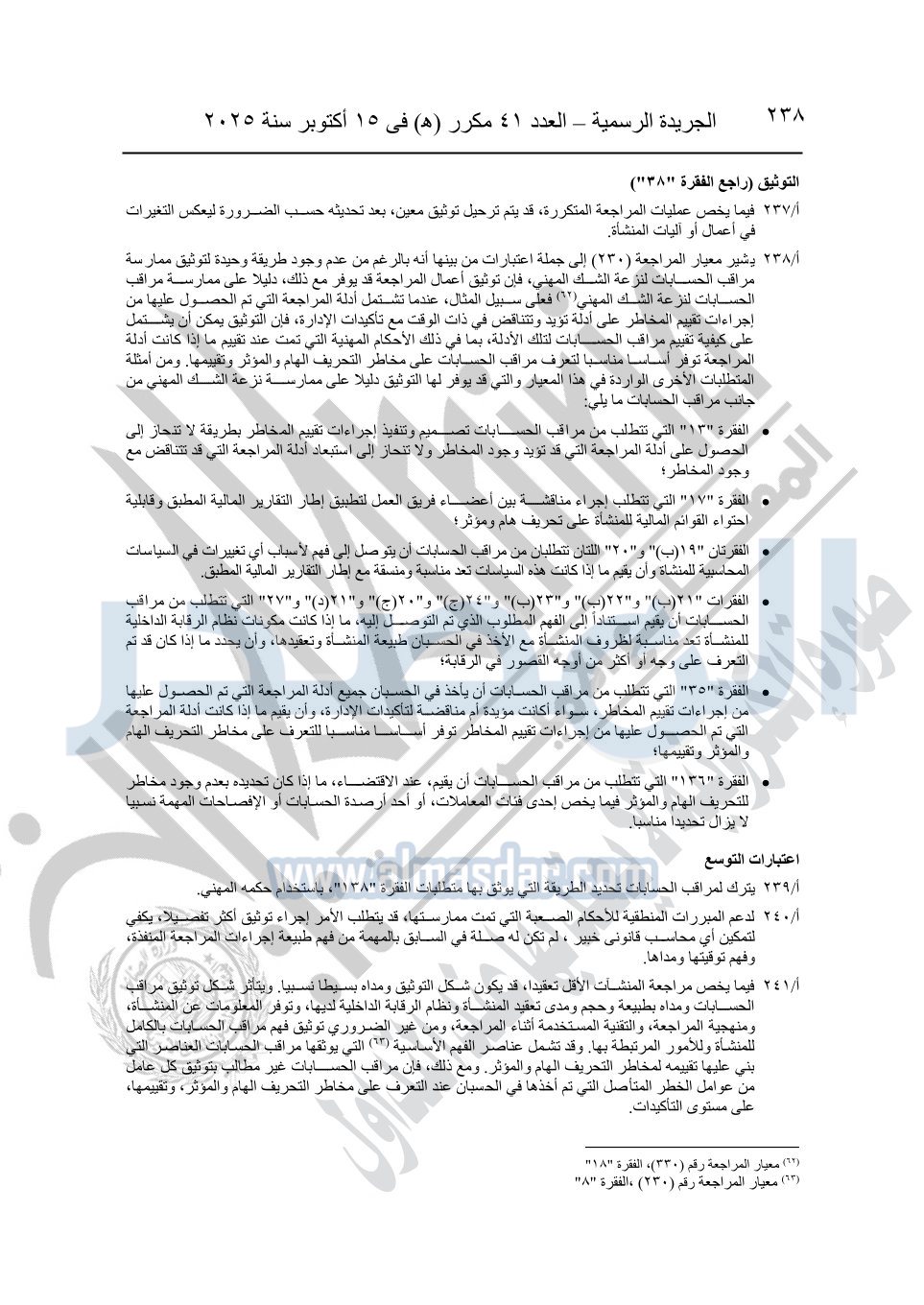 نشرت الجريدة الرسمية في العدد 41 مكرر "هـ" الصادر في 15 أكتوبر سنة 2025، قرار رئيس مجلس الوزراء رقم 3725 لسنة 2025، بشأن العمل بالمعايير المصرية للمراجعة والفحص المحدود ومهام التأكد الأخرى المرافقة لهذا القرار.