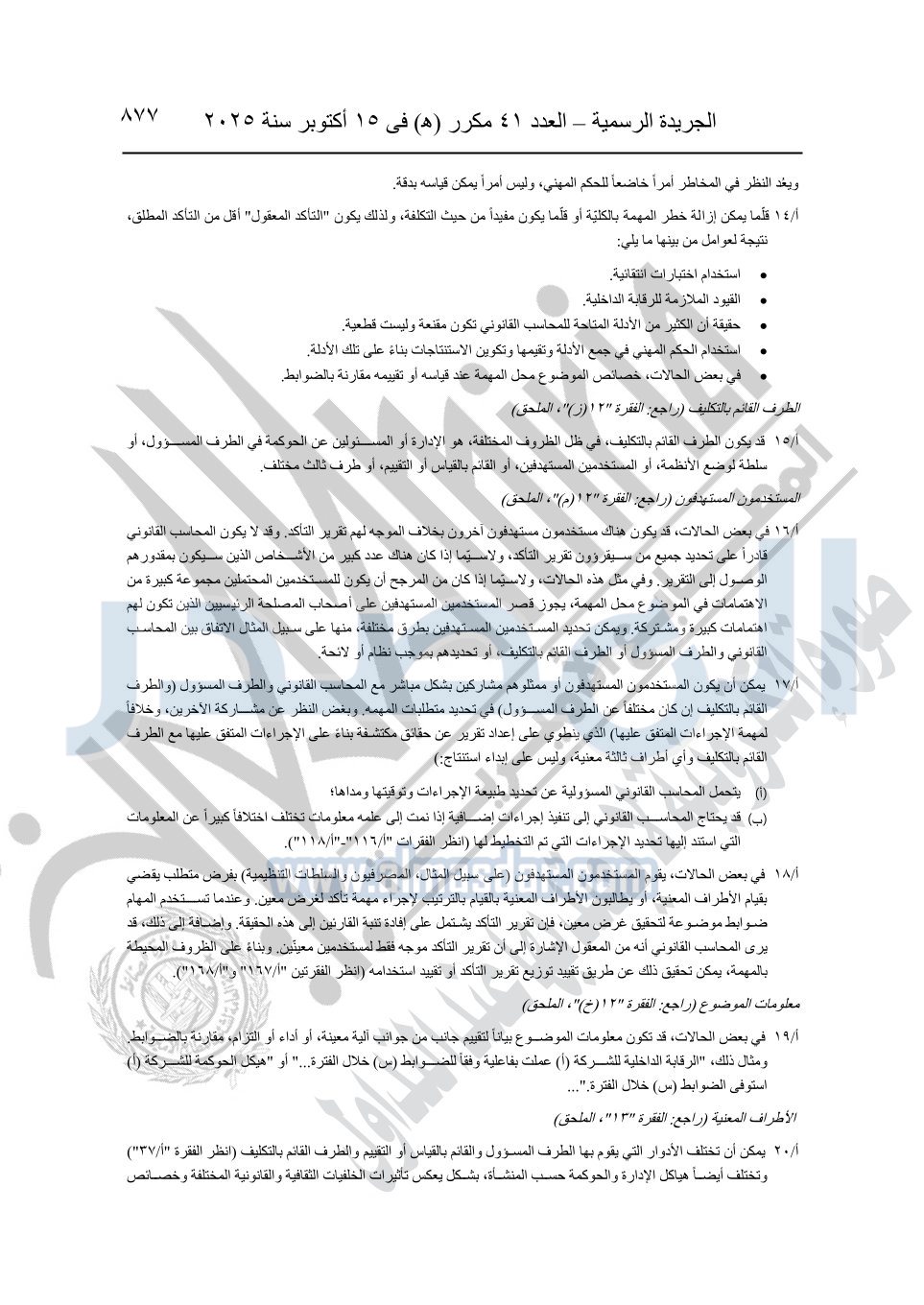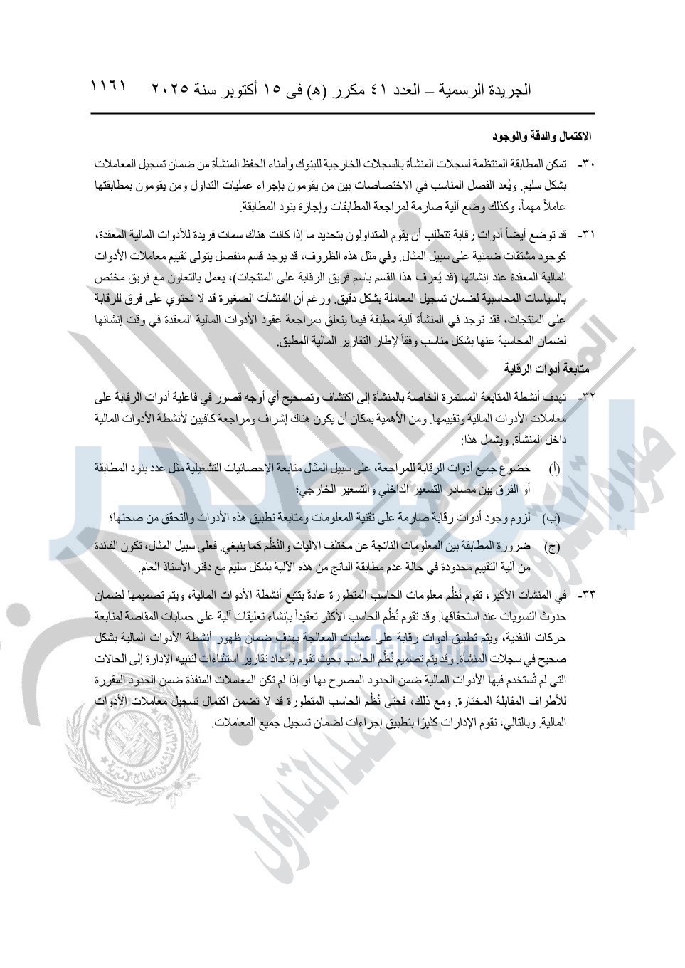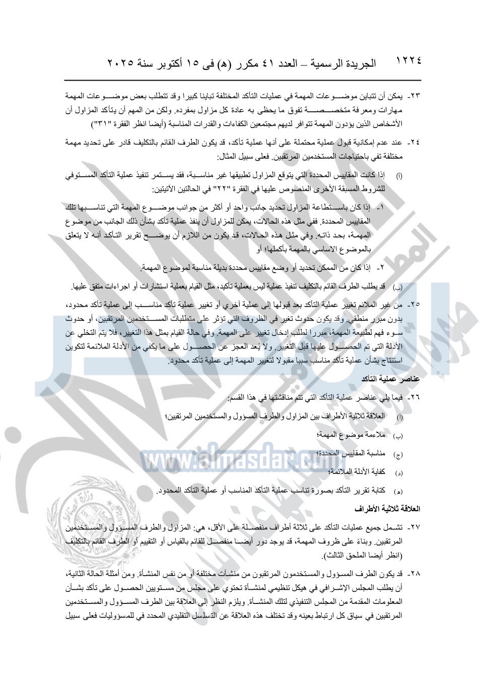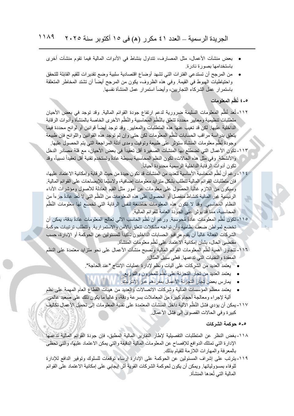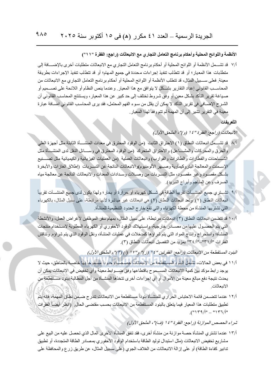 نشرت الجريدة الرسمية في العدد 41 مكرر "هـ" الصادر في 15 أكتوبر سنة 2025، قرار رئيس مجلس الوزراء رقم 3725 لسنة 2025، بشأن العمل بالمعايير المصرية للمراجعة والفحص المحدود ومهام التأكد الأخرى المرافقة لهذا القرار.