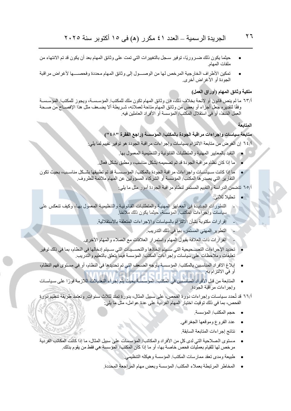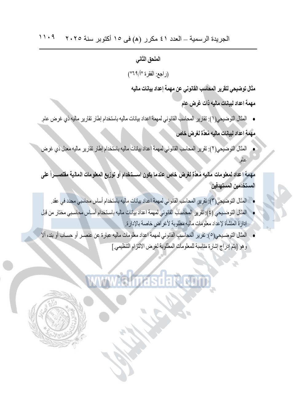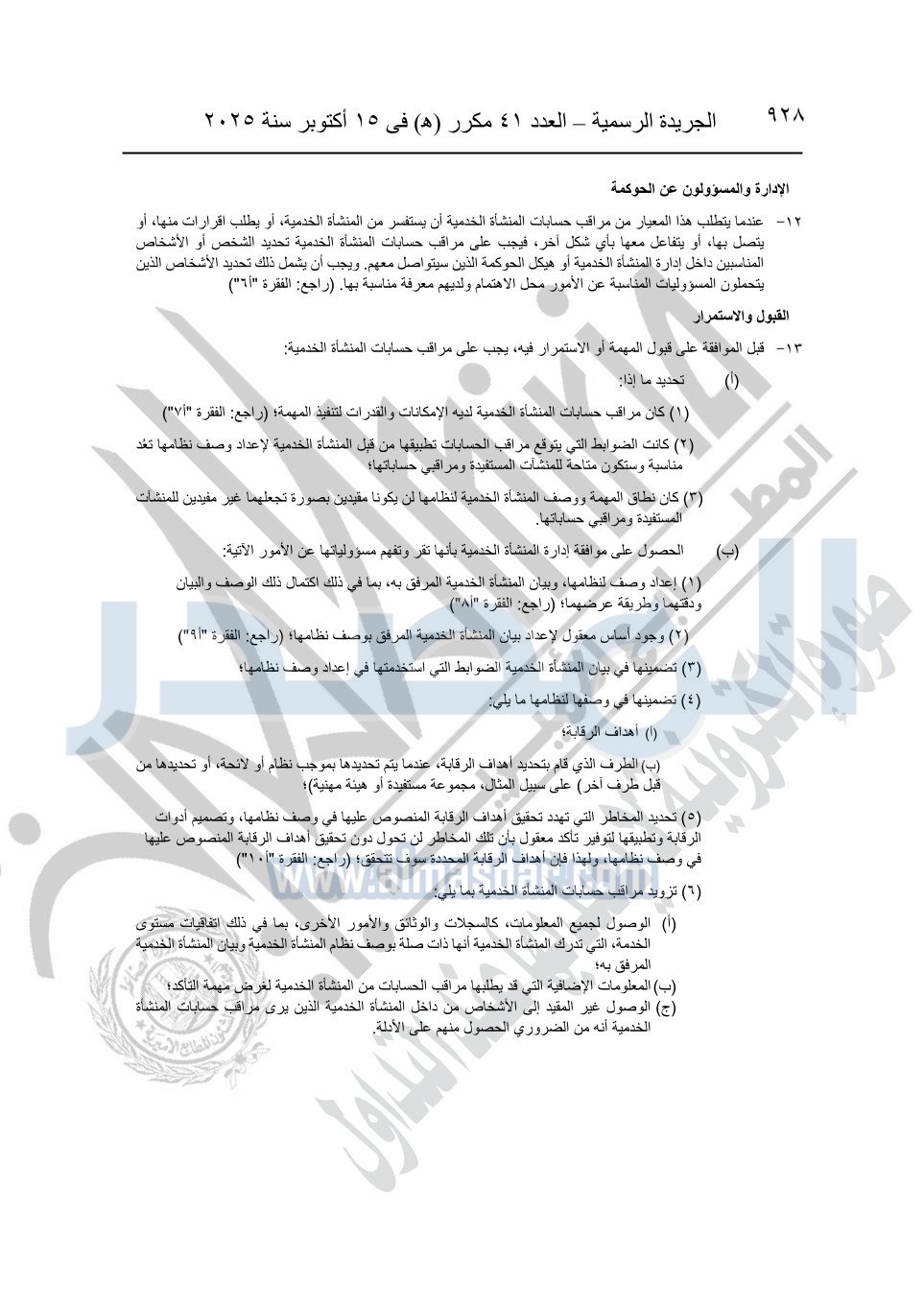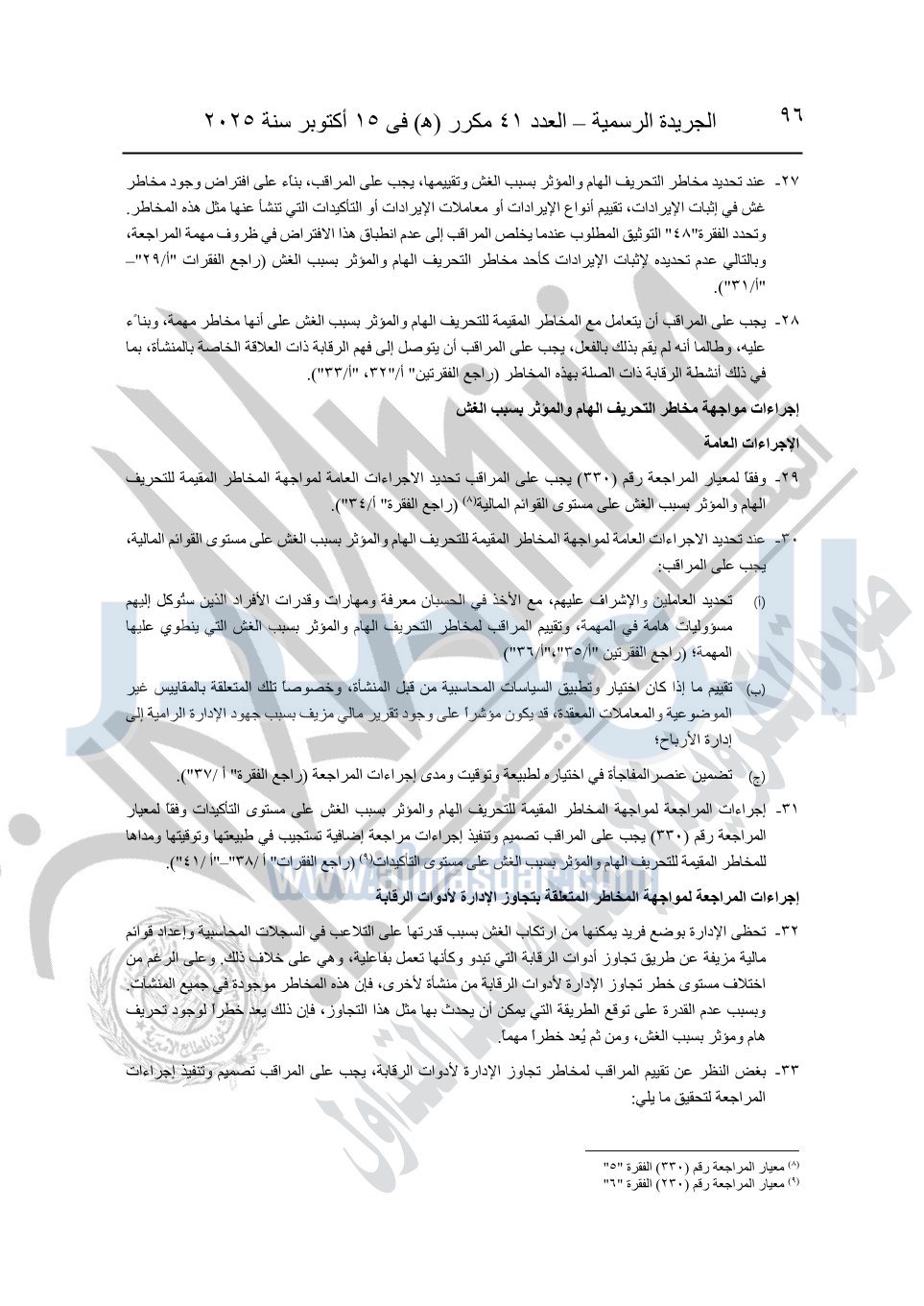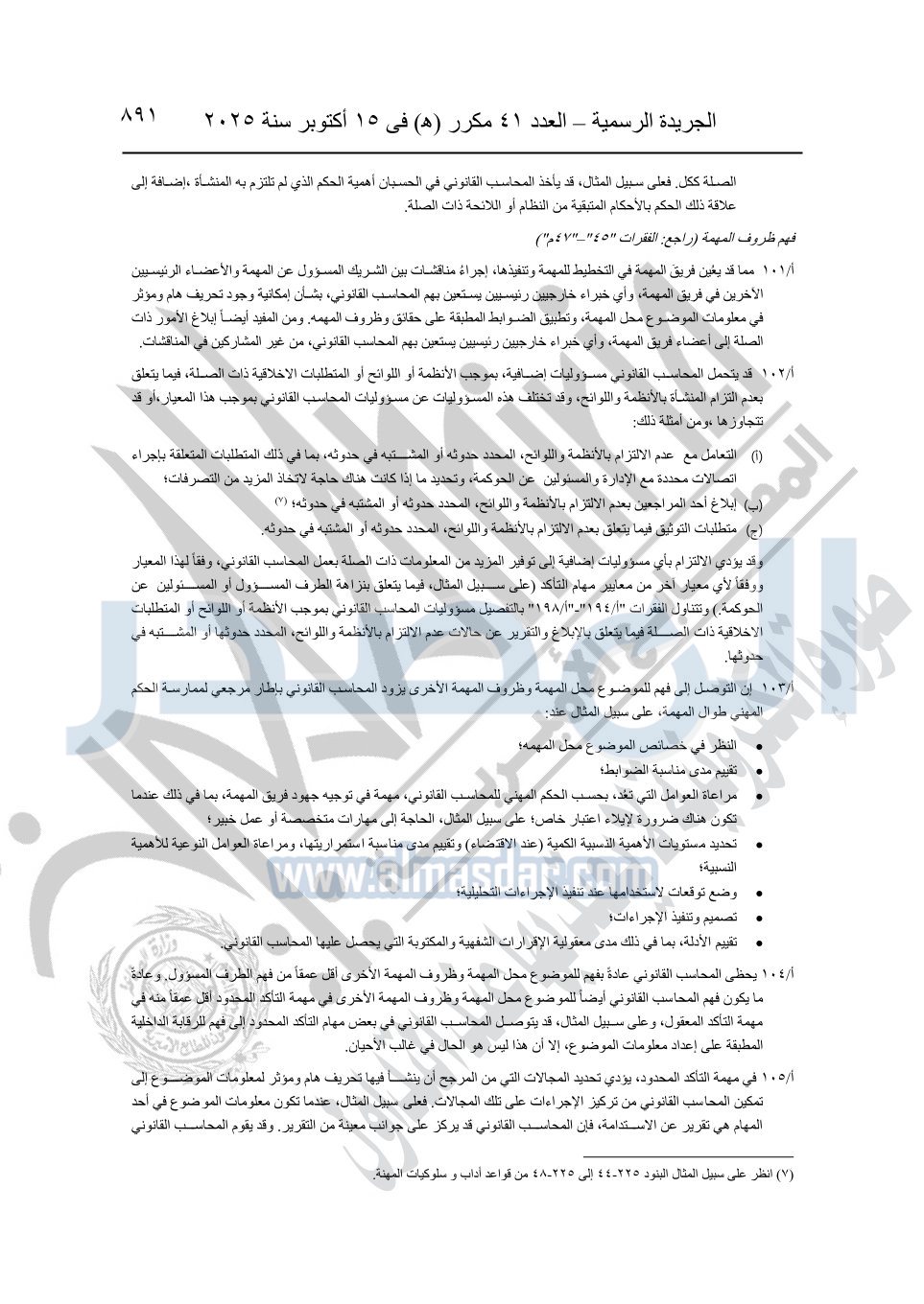 نشرت الجريدة الرسمية في العدد 41 مكرر "هـ" الصادر في 15 أكتوبر سنة 2025، قرار رئيس مجلس الوزراء رقم 3725 لسنة 2025، بشأن العمل بالمعايير المصرية للمراجعة والفحص المحدود ومهام التأكد الأخرى المرافقة لهذا القرار.