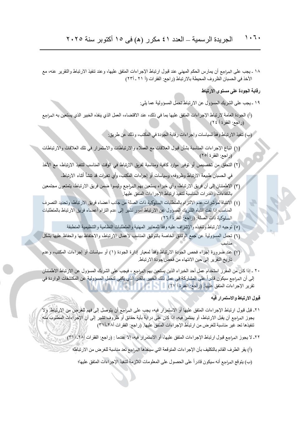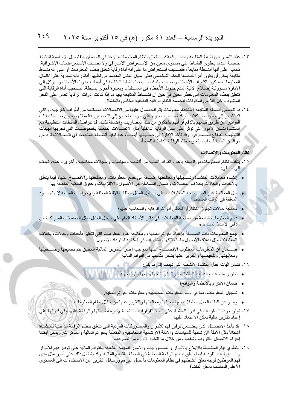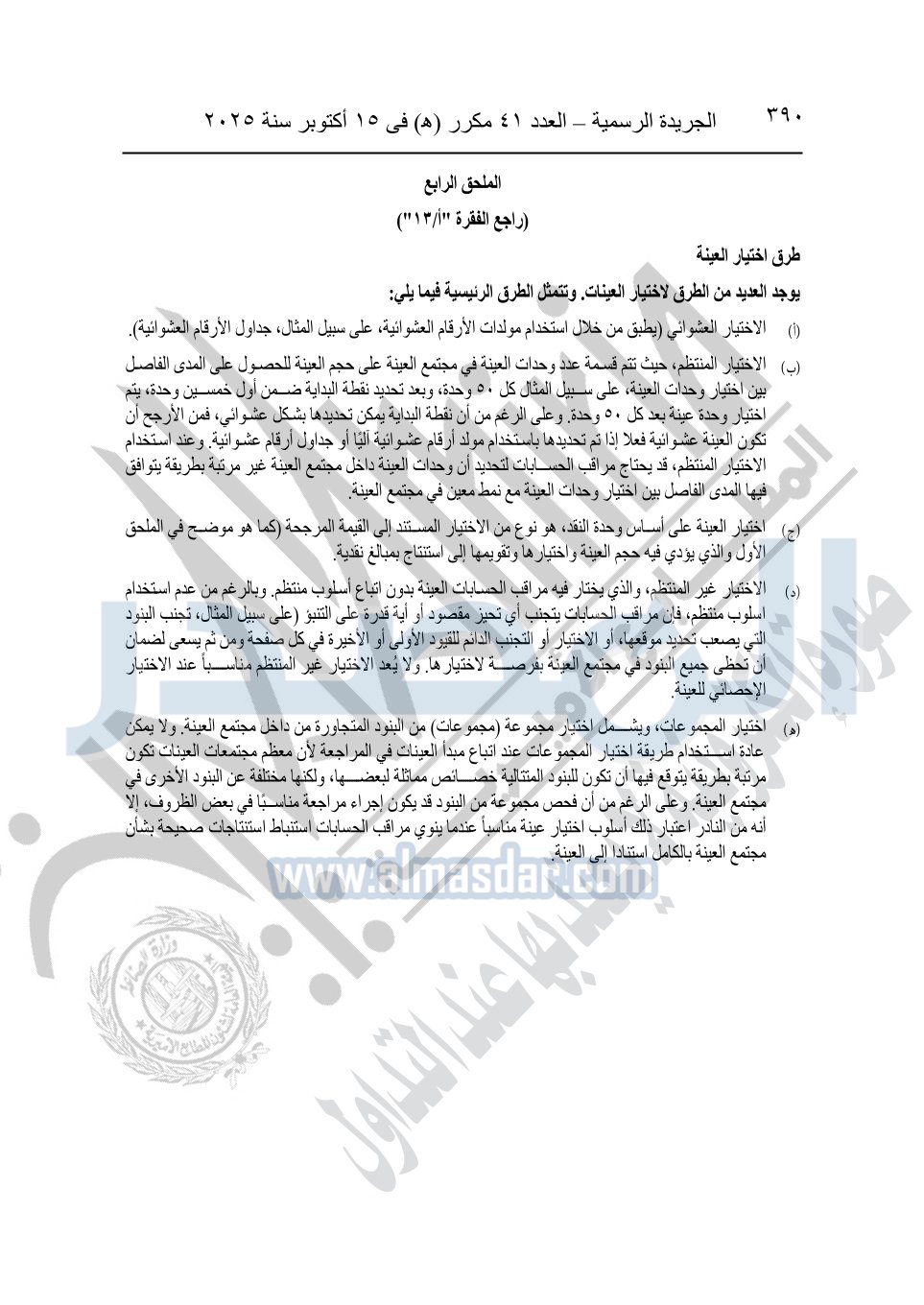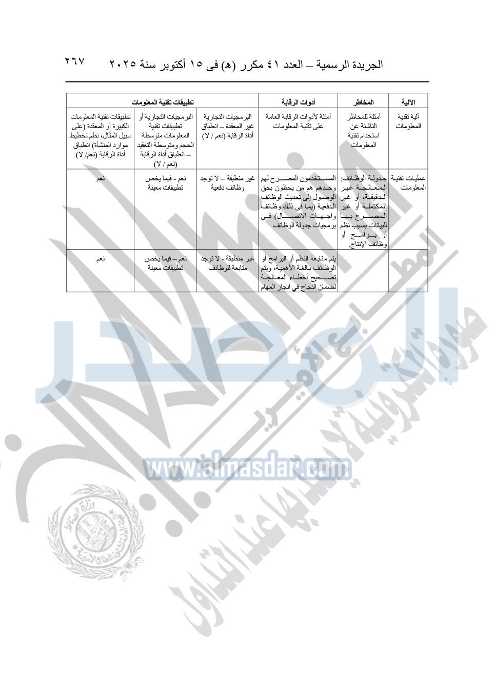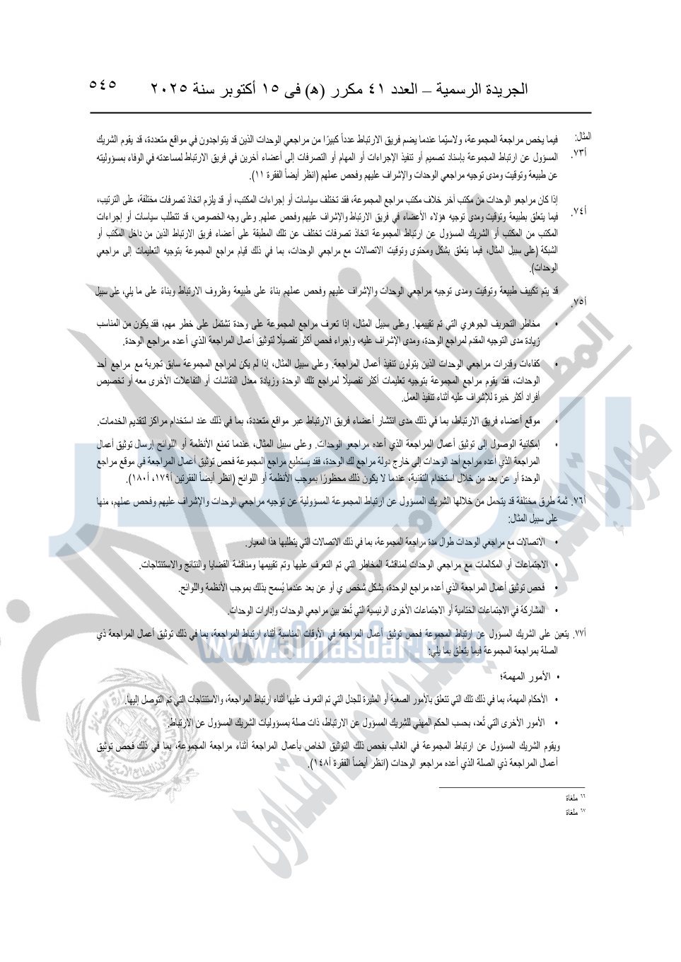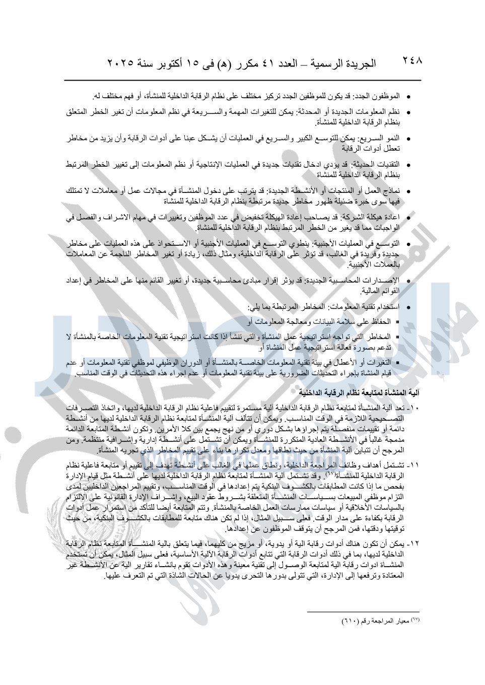 نشرت الجريدة الرسمية في العدد 41 مكرر "هـ" الصادر في 15 أكتوبر سنة 2025، قرار رئيس مجلس الوزراء رقم 3725 لسنة 2025، بشأن العمل بالمعايير المصرية للمراجعة والفحص المحدود ومهام التأكد الأخرى المرافقة لهذا القرار.