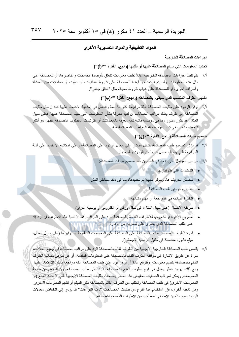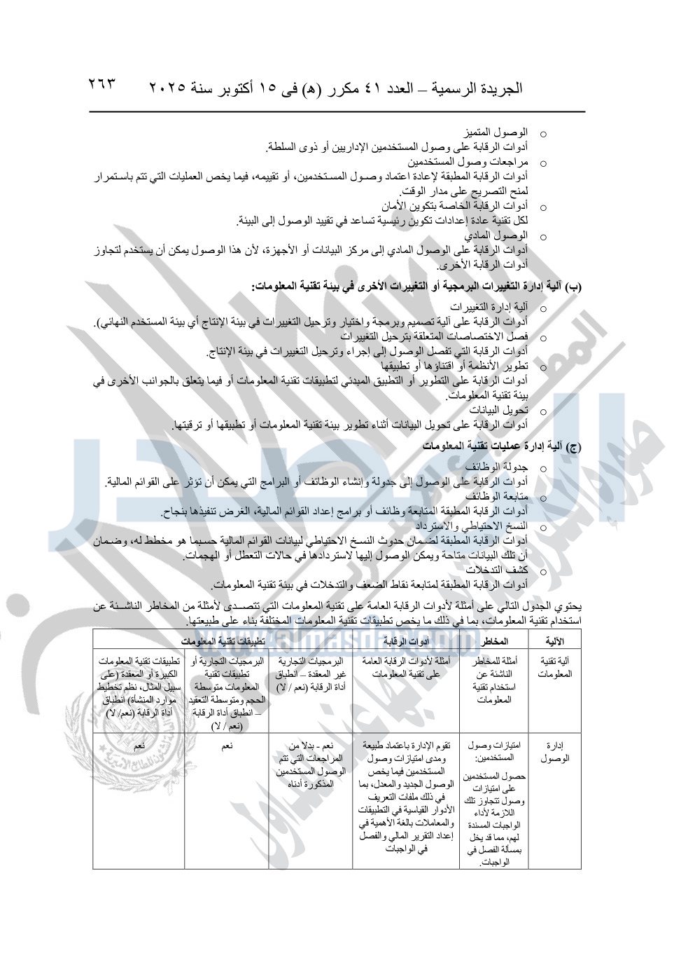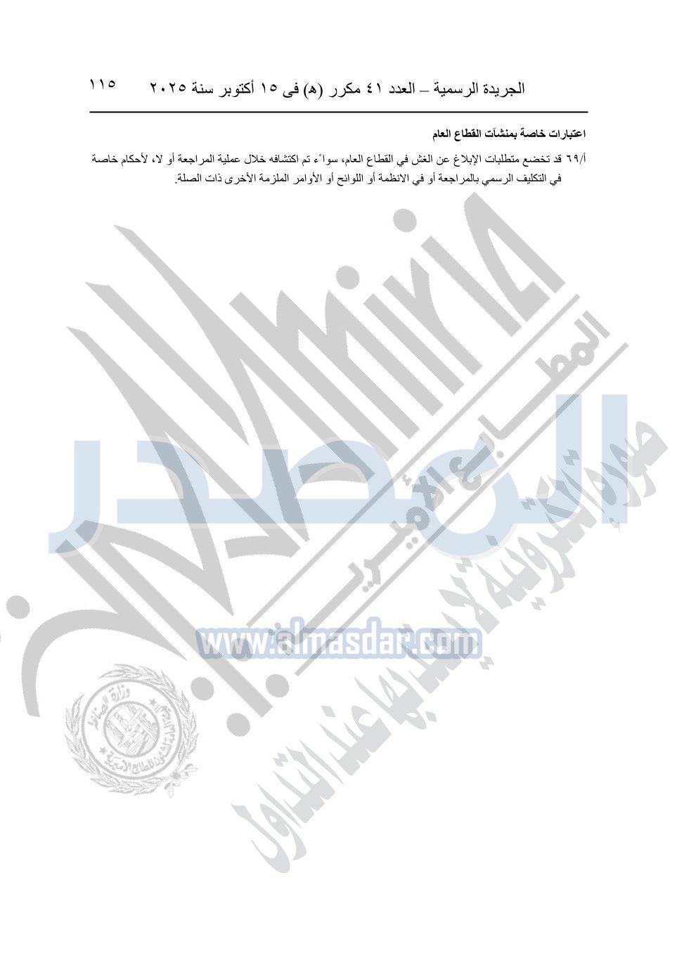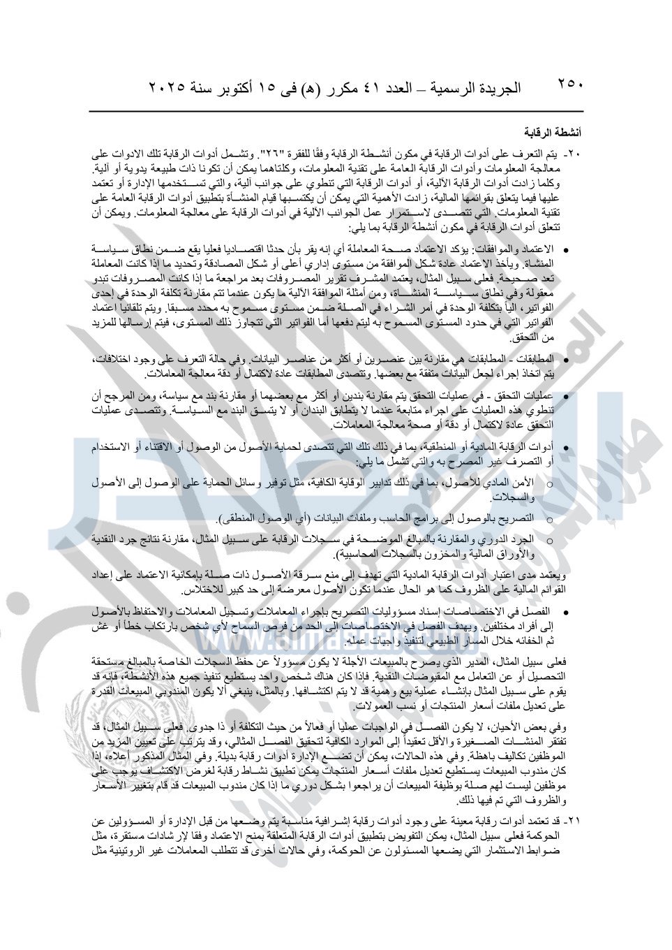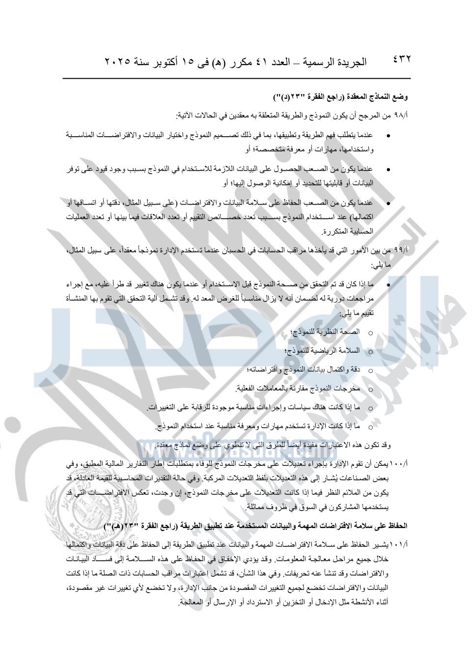 نشرت الجريدة الرسمية في العدد 41 مكرر "هـ" الصادر في 15 أكتوبر سنة 2025، قرار رئيس مجلس الوزراء رقم 3725 لسنة 2025، بشأن العمل بالمعايير المصرية للمراجعة والفحص المحدود ومهام التأكد الأخرى المرافقة لهذا القرار.