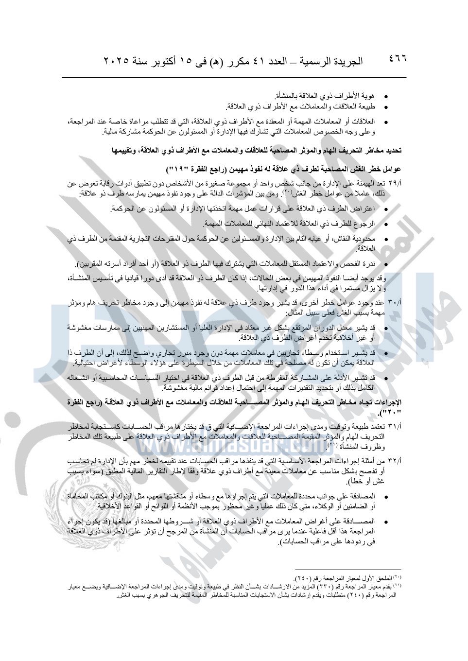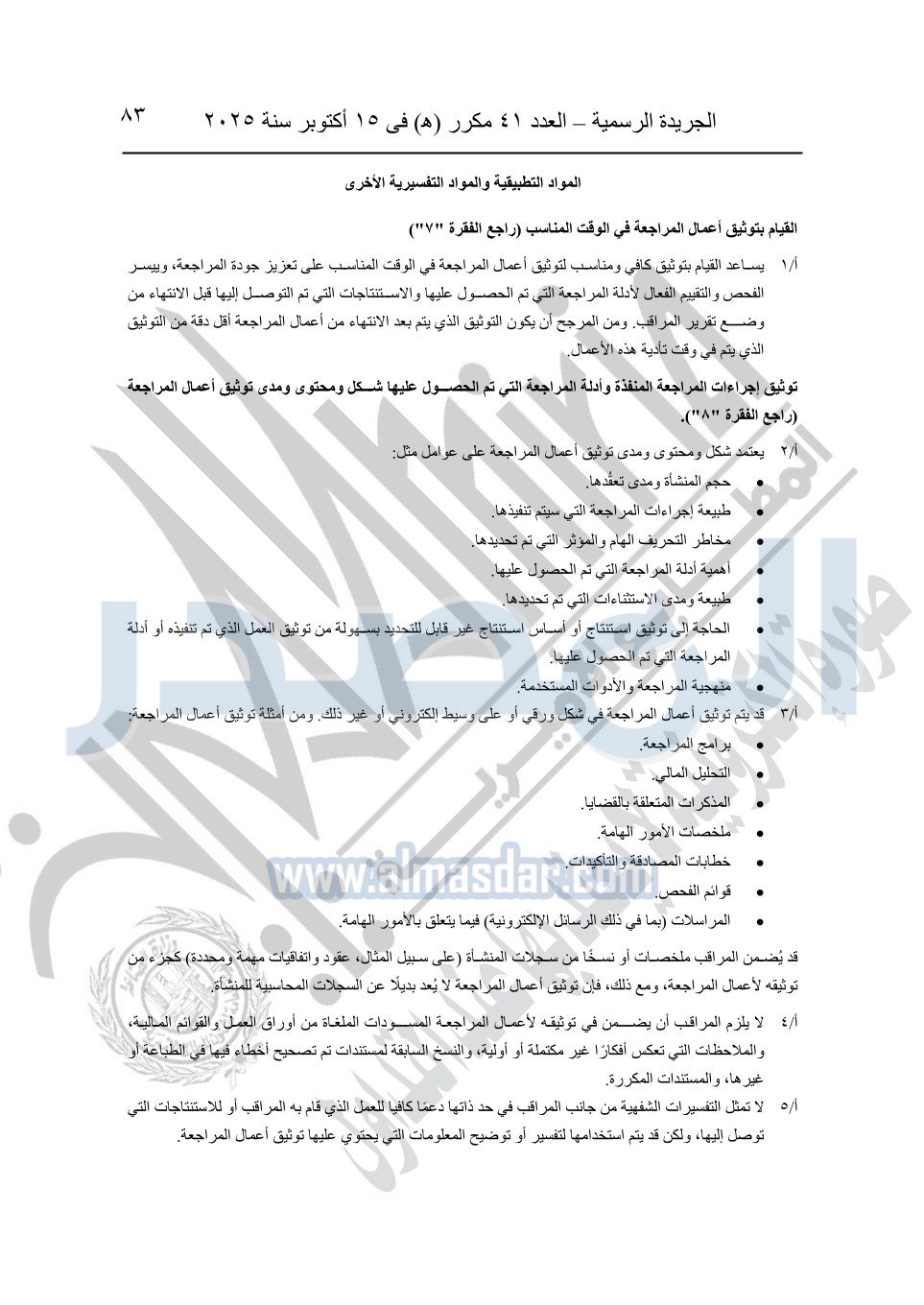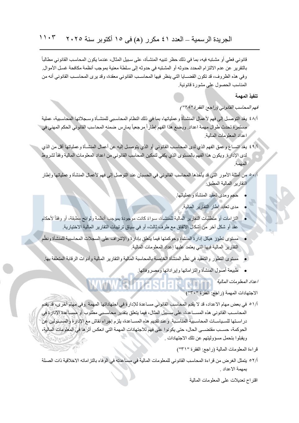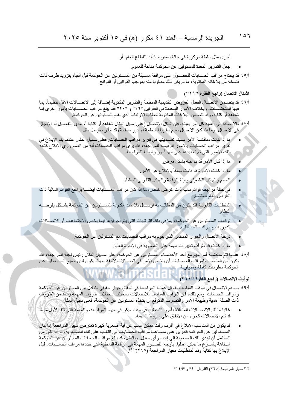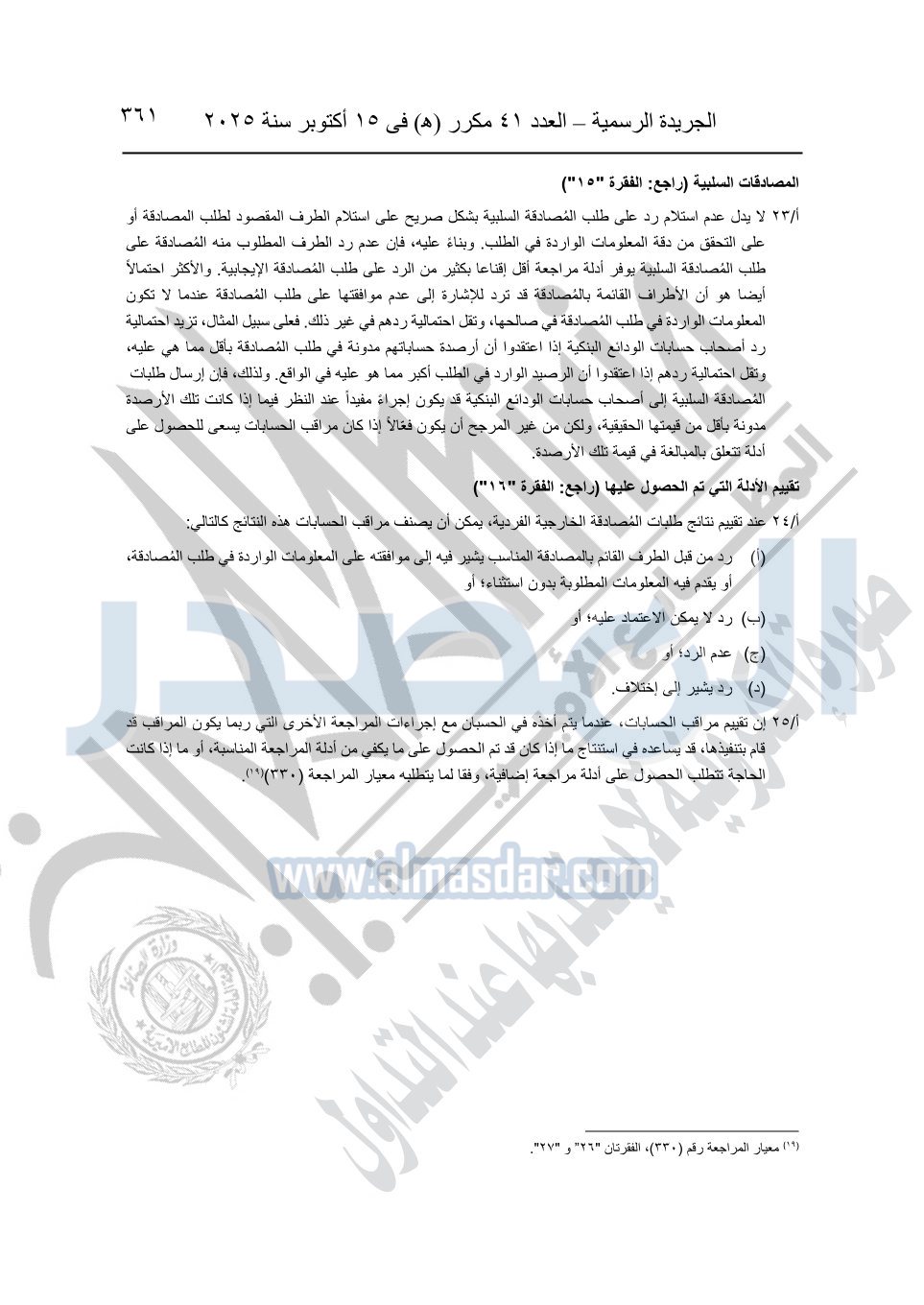 نشرت الجريدة الرسمية في العدد 41 مكرر "هـ" الصادر في 15 أكتوبر سنة 2025، قرار رئيس مجلس الوزراء رقم 3725 لسنة 2025، بشأن العمل بالمعايير المصرية للمراجعة والفحص المحدود ومهام التأكد الأخرى المرافقة لهذا القرار.