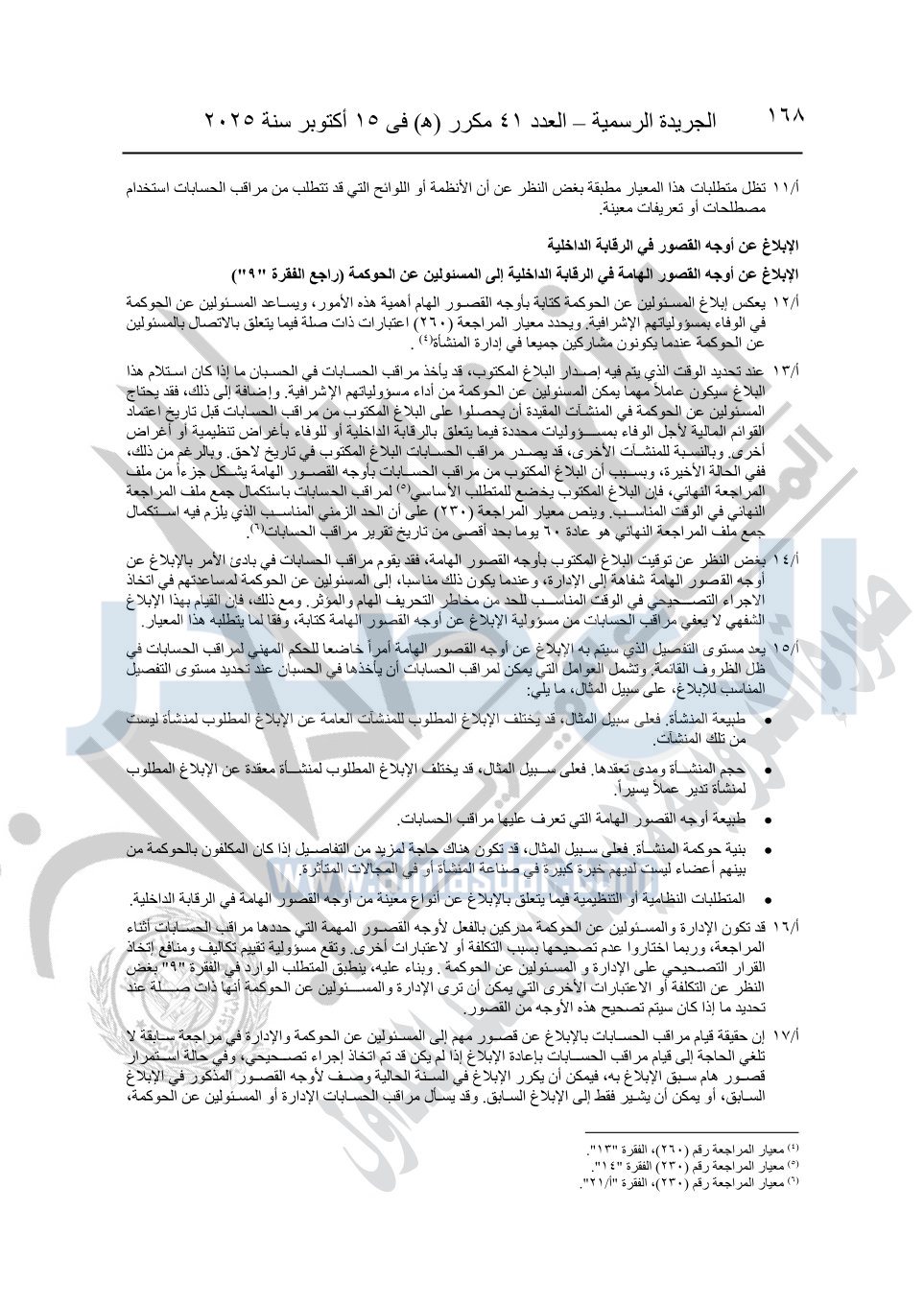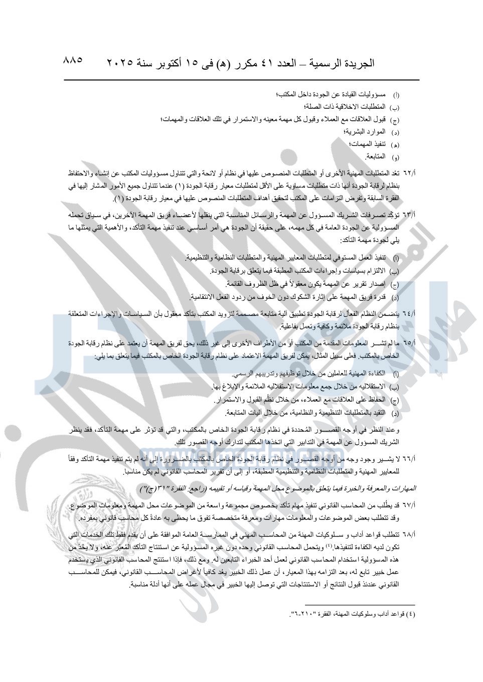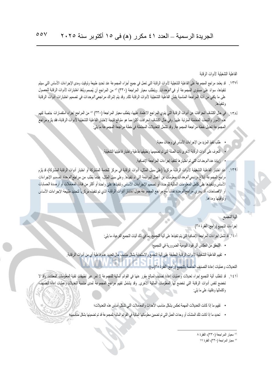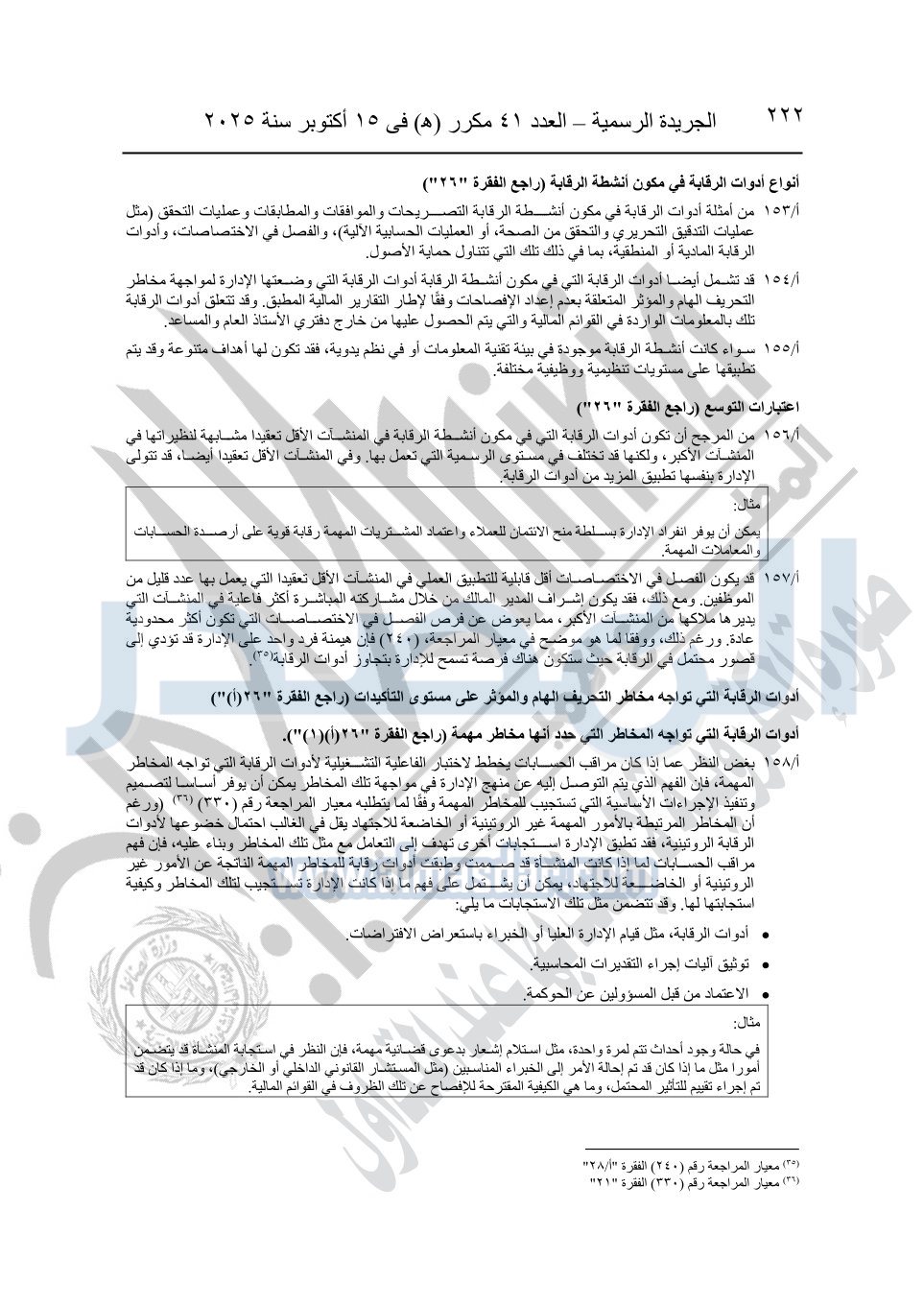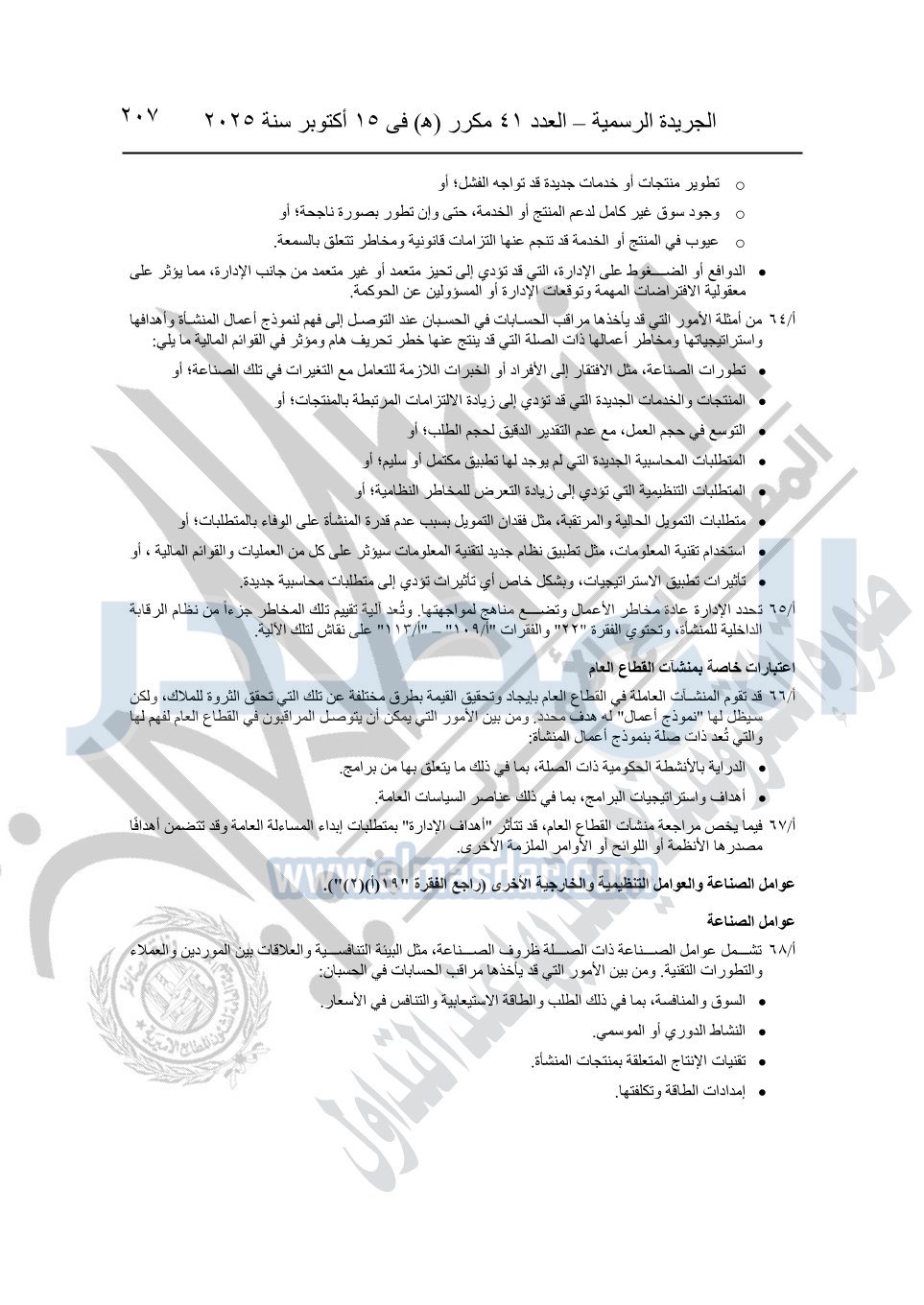 نشرت الجريدة الرسمية في العدد 41 مكرر "هـ" الصادر في 15 أكتوبر سنة 2025، قرار رئيس مجلس الوزراء رقم 3725 لسنة 2025، بشأن العمل بالمعايير المصرية للمراجعة والفحص المحدود ومهام التأكد الأخرى المرافقة لهذا القرار.