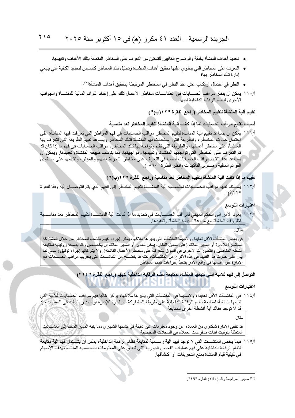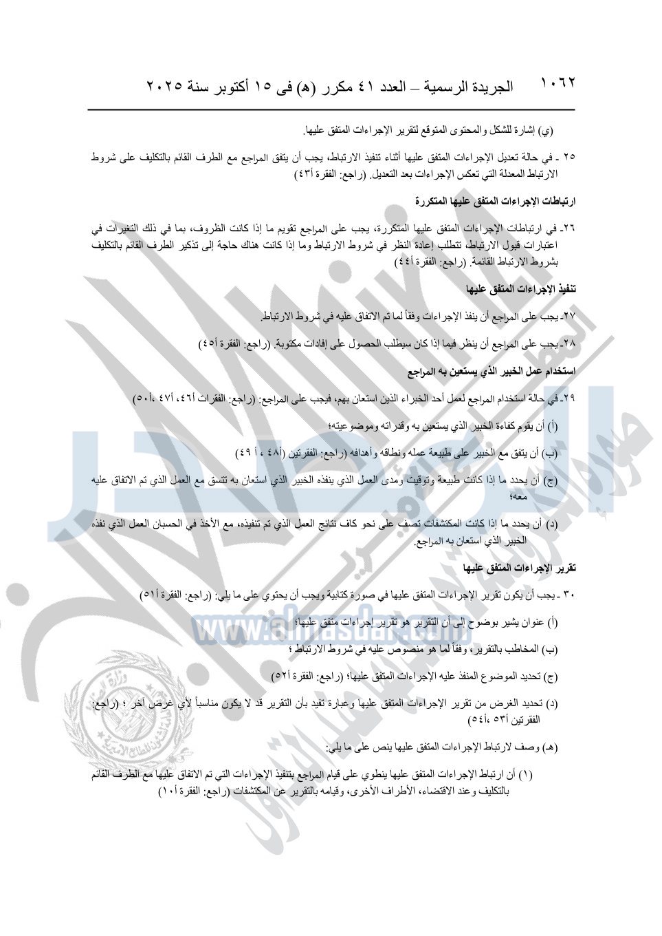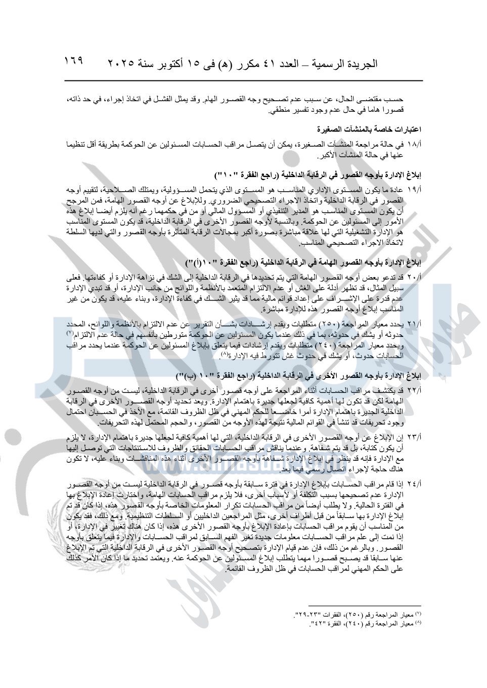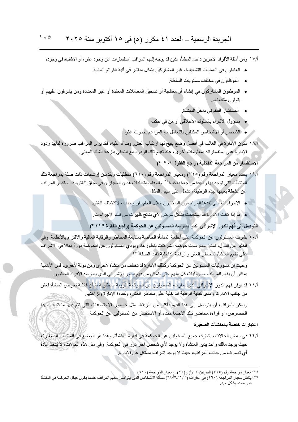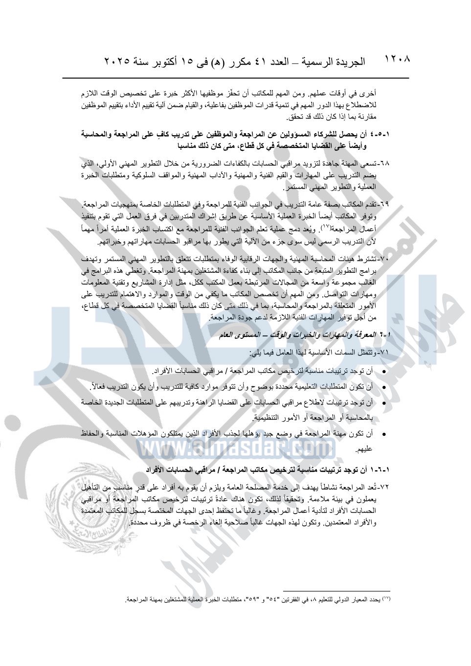نشرت الجريدة الرسمية في العدد 41 مكرر "هـ" الصادر في 15 أكتوبر سنة 2025، قرار رئيس مجلس الوزراء رقم 3725 لسنة 2025، بشأن العمل بالمعايير المصرية للمراجعة والفحص المحدود ومهام التأكد الأخرى المرافقة لهذا القرار.