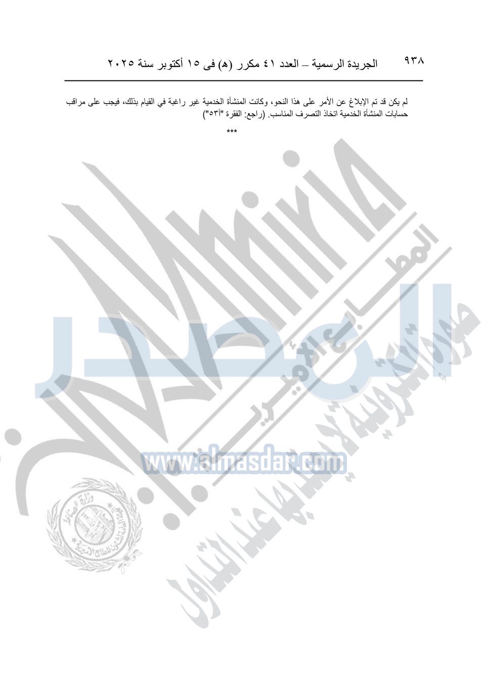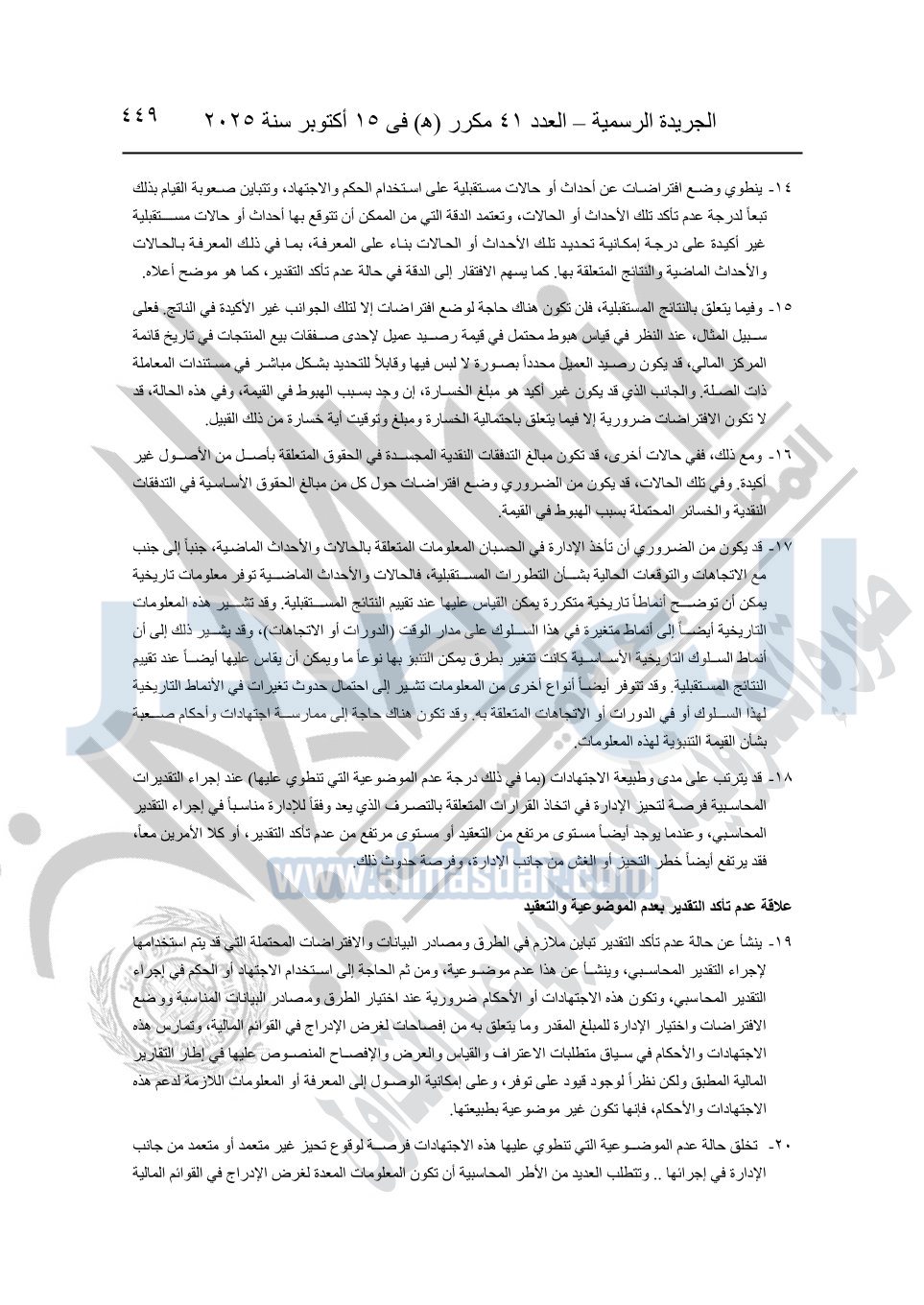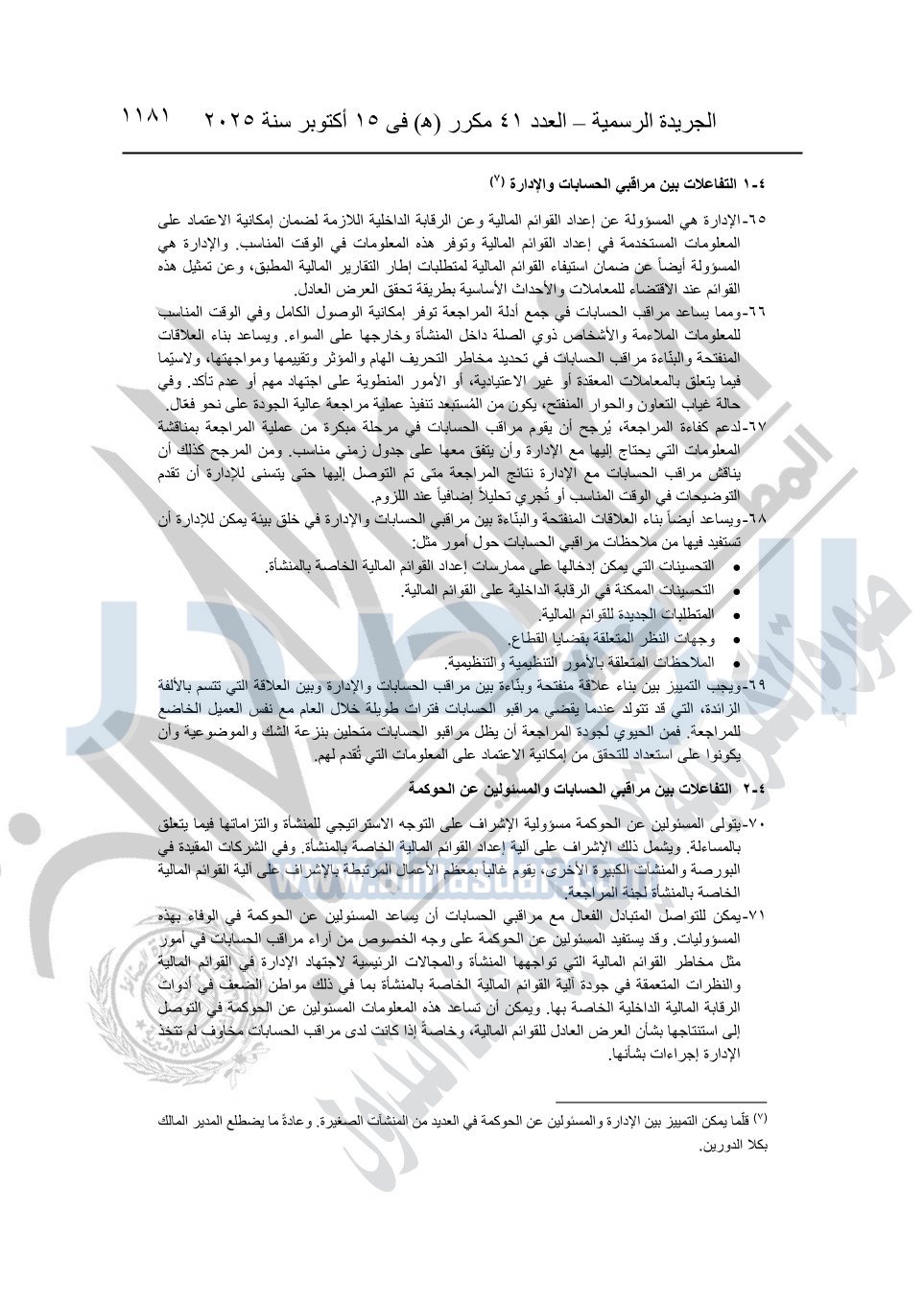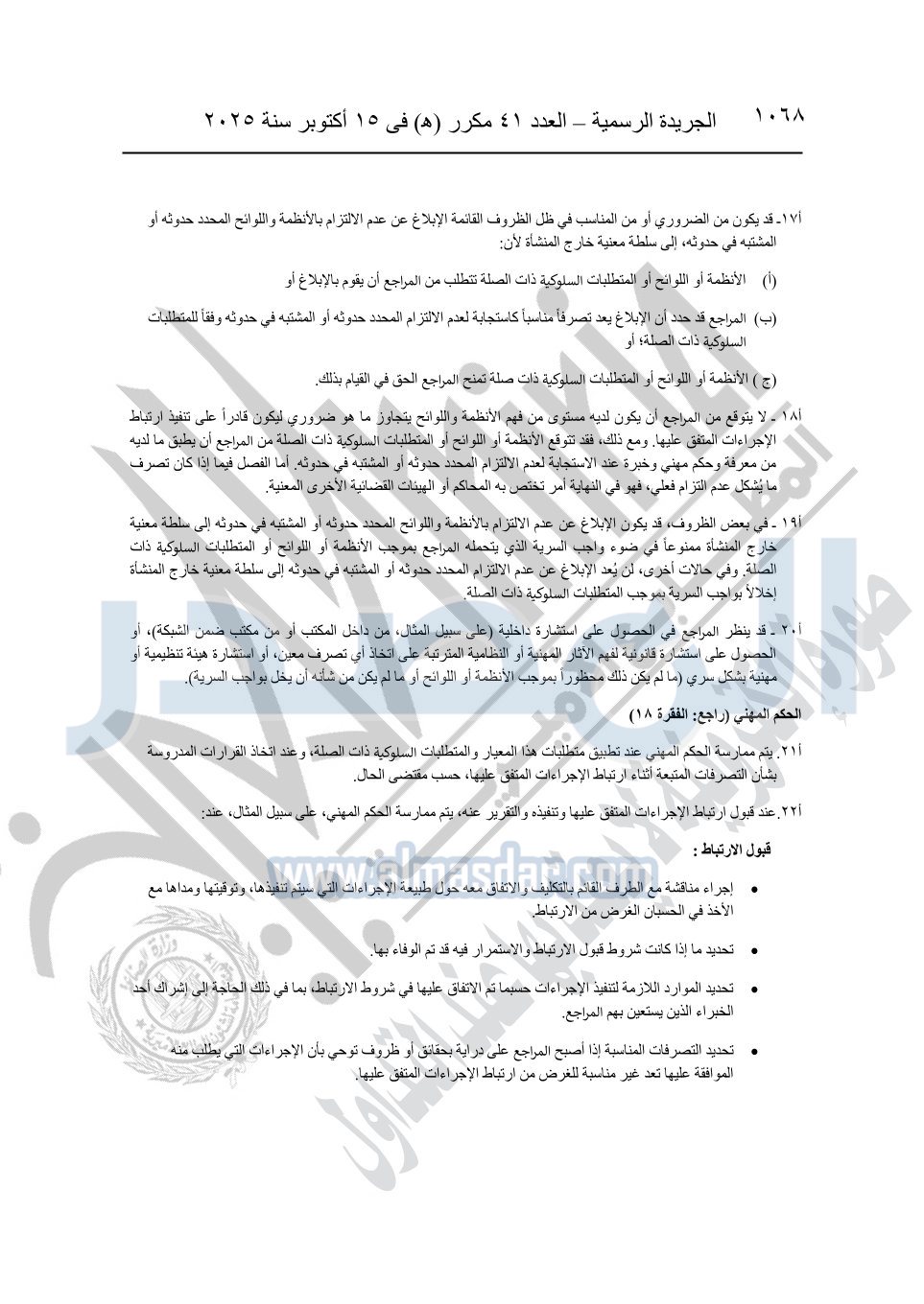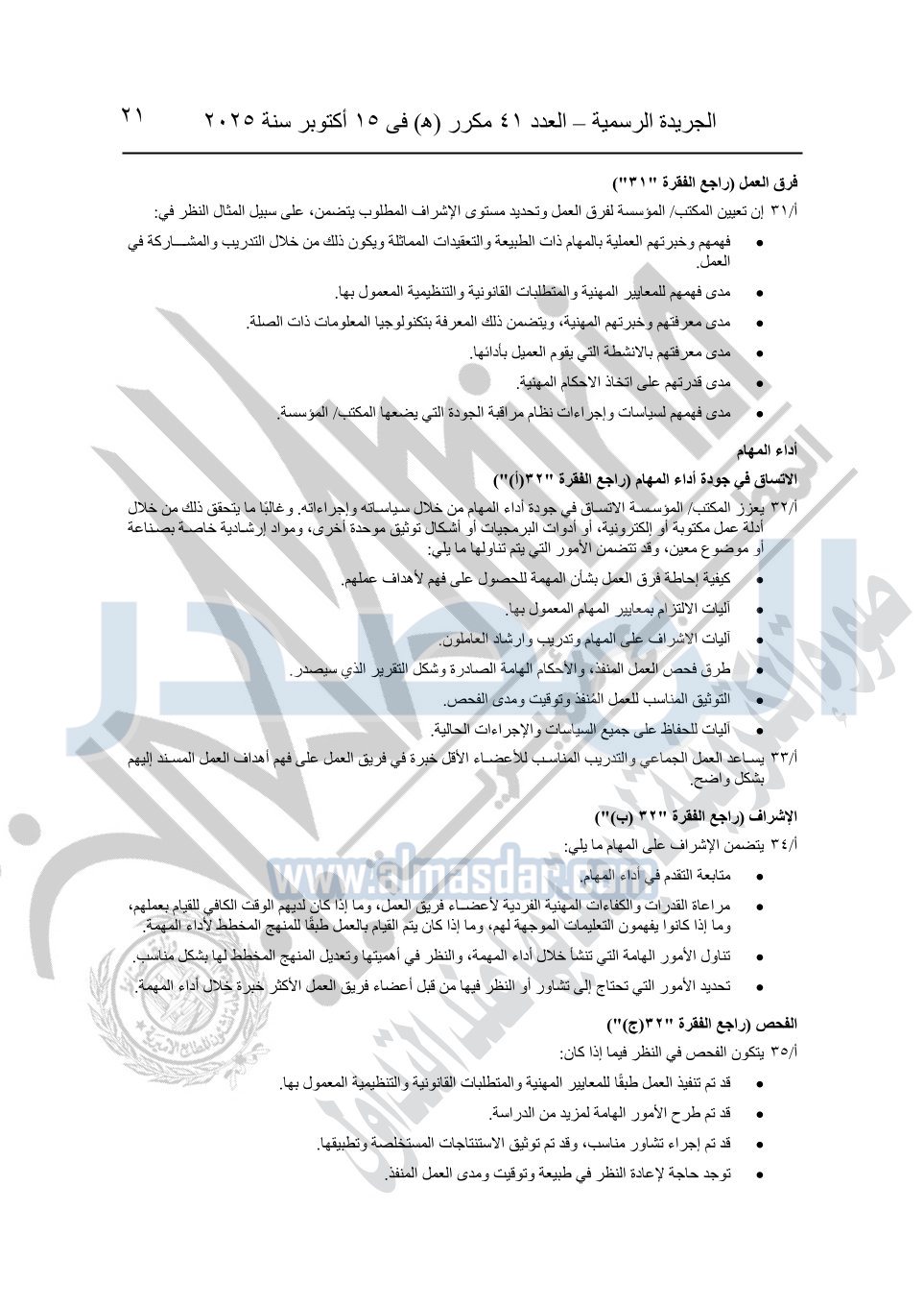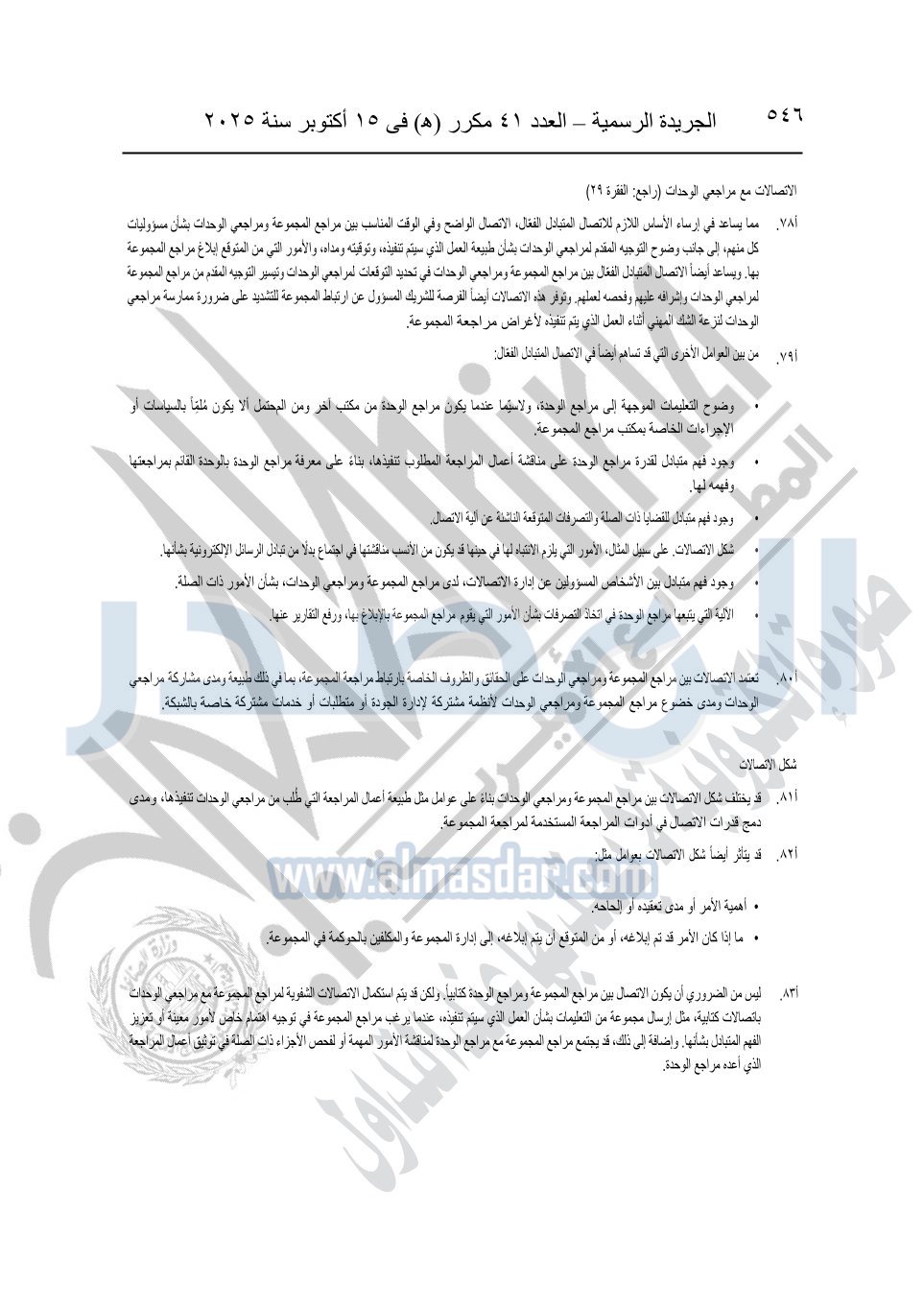 نشرت الجريدة الرسمية في العدد 41 مكرر "هـ" الصادر في 15 أكتوبر سنة 2025، قرار رئيس مجلس الوزراء رقم 3725 لسنة 2025، بشأن العمل بالمعايير المصرية للمراجعة والفحص المحدود ومهام التأكد الأخرى المرافقة لهذا القرار.