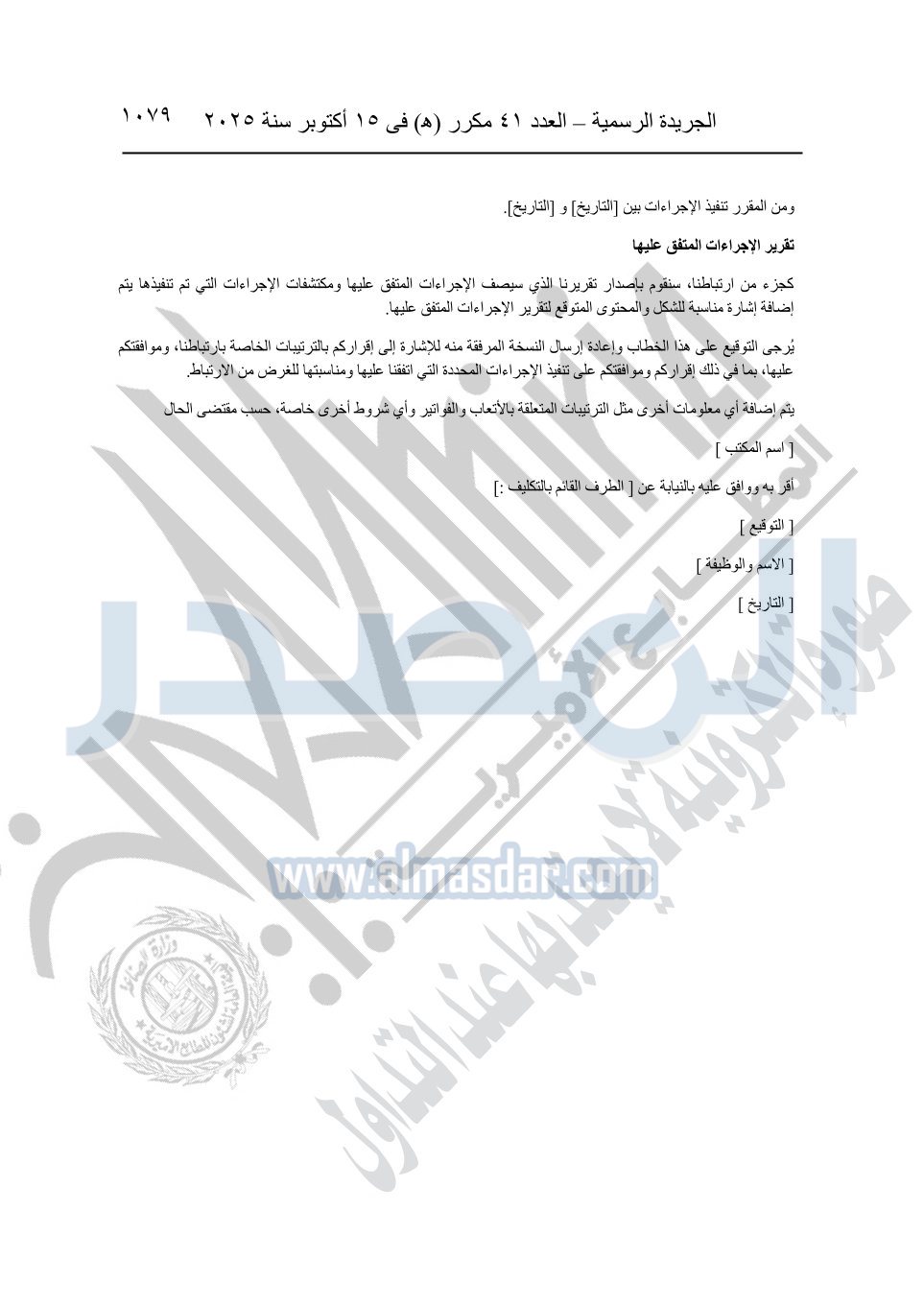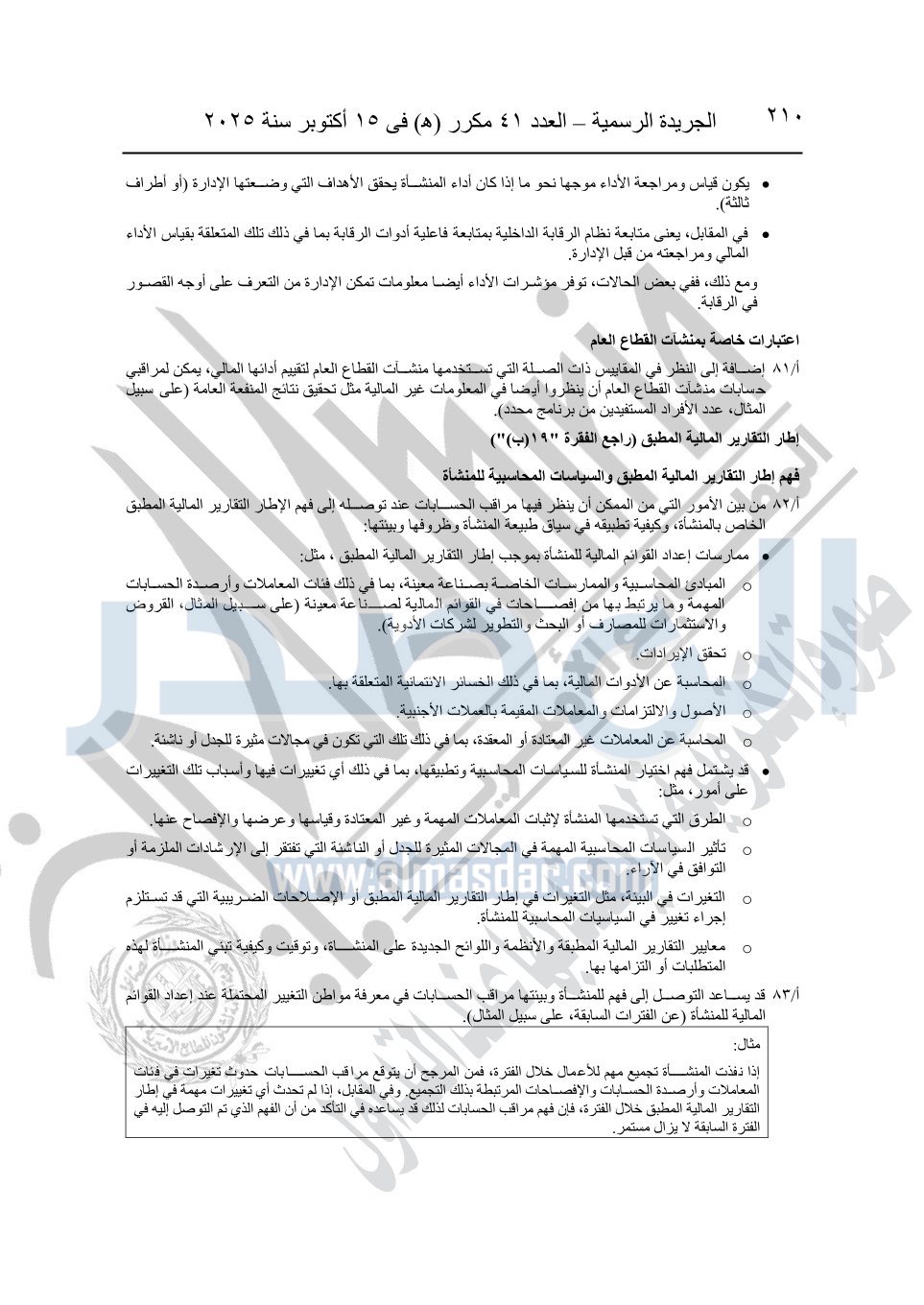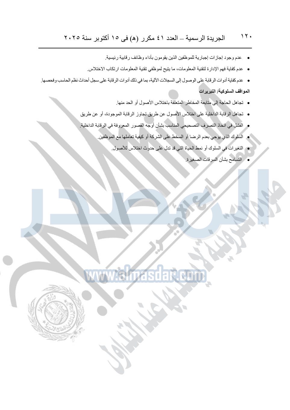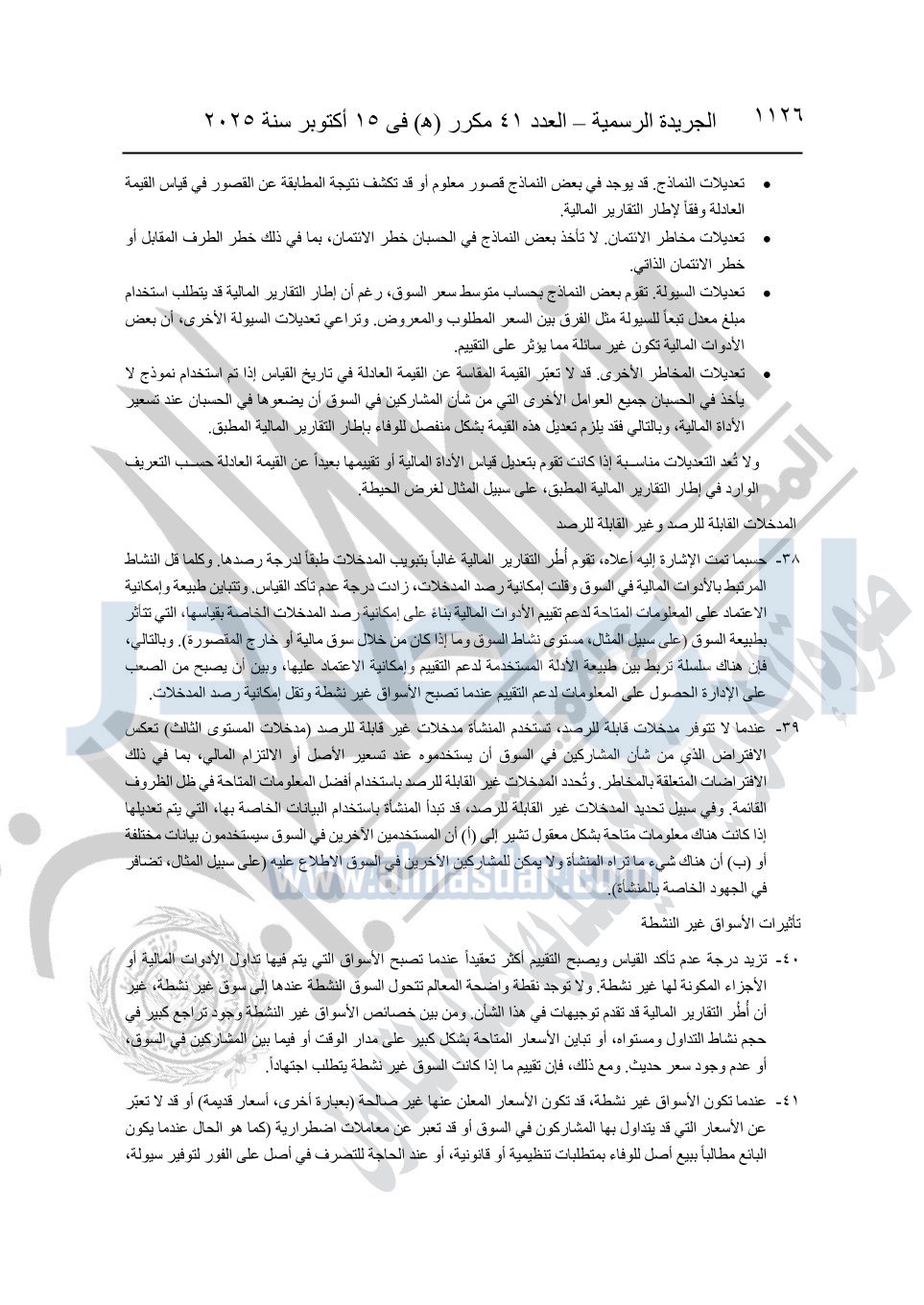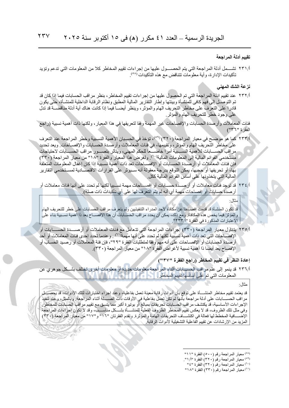 نشرت الجريدة الرسمية في العدد 41 مكرر "هـ" الصادر في 15 أكتوبر سنة 2025، قرار رئيس مجلس الوزراء رقم 3725 لسنة 2025، بشأن العمل بالمعايير المصرية للمراجعة والفحص المحدود ومهام التأكد الأخرى المرافقة لهذا القرار.