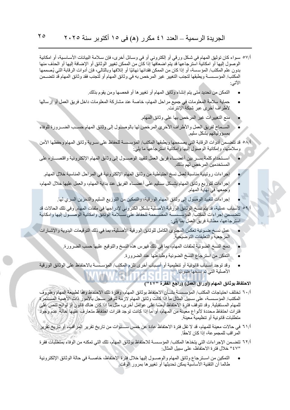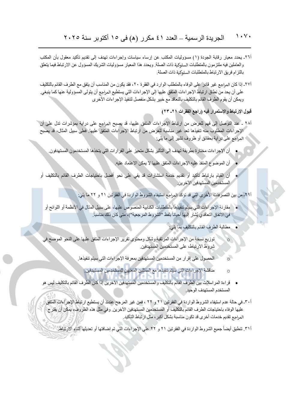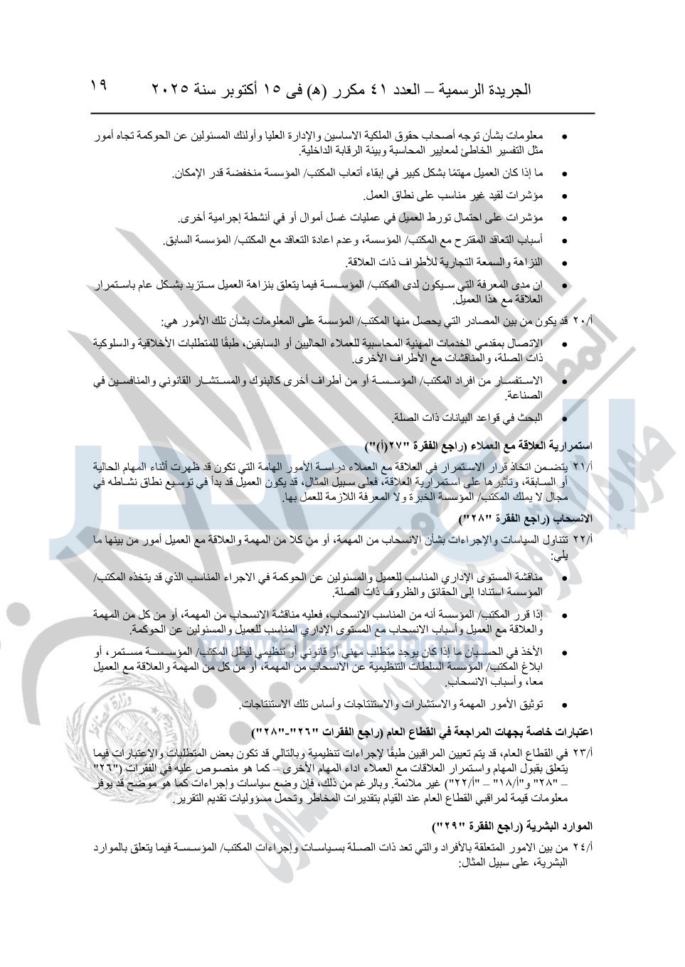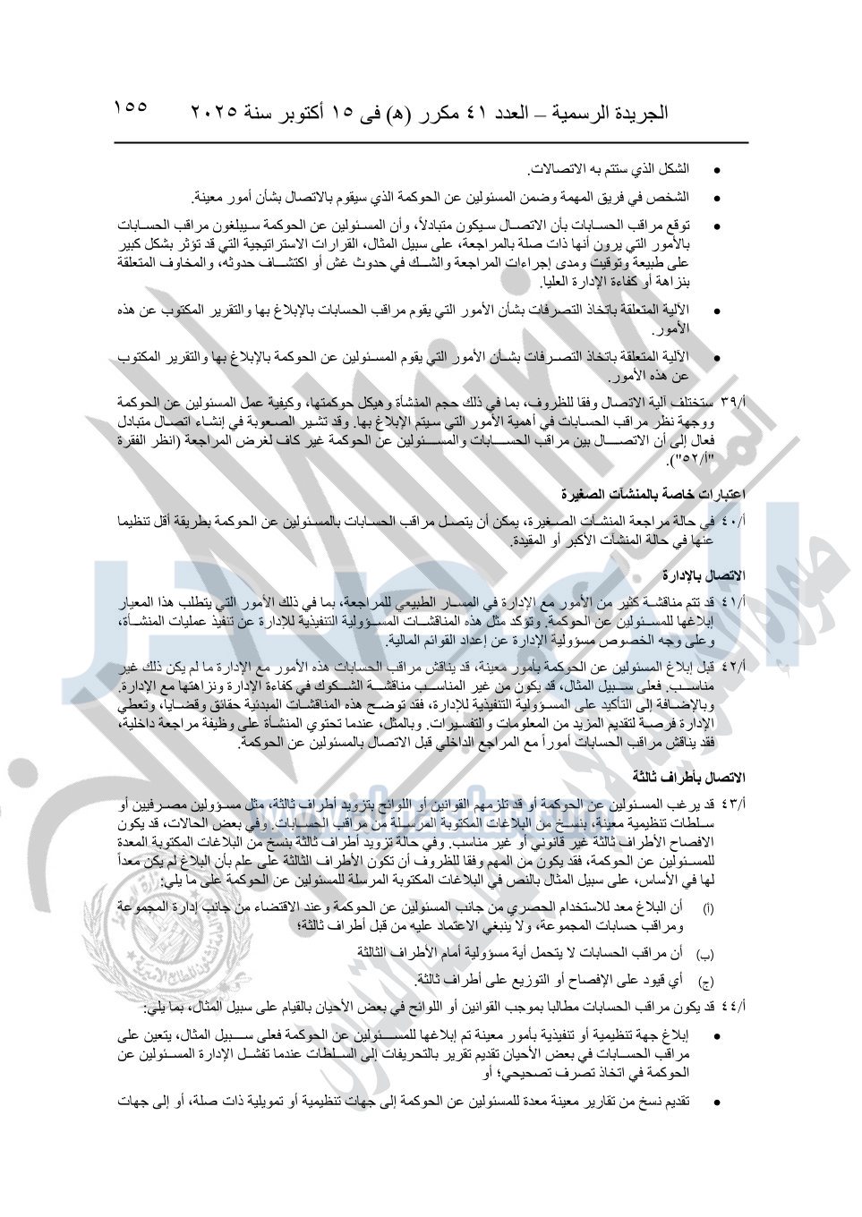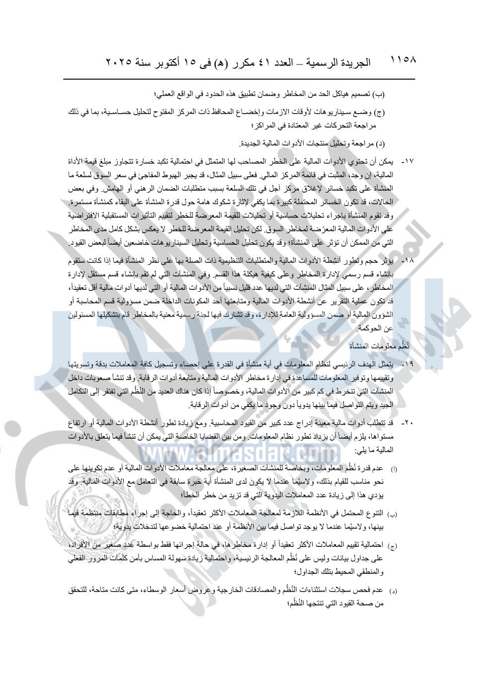 نشرت الجريدة الرسمية في العدد 41 مكرر "هـ" الصادر في 15 أكتوبر سنة 2025، قرار رئيس مجلس الوزراء رقم 3725 لسنة 2025، بشأن العمل بالمعايير المصرية للمراجعة والفحص المحدود ومهام التأكد الأخرى المرافقة لهذا القرار.