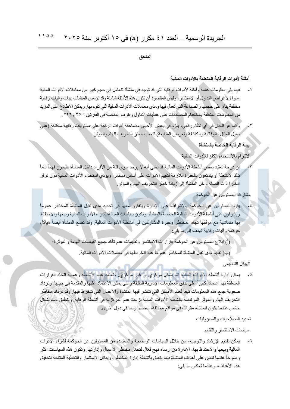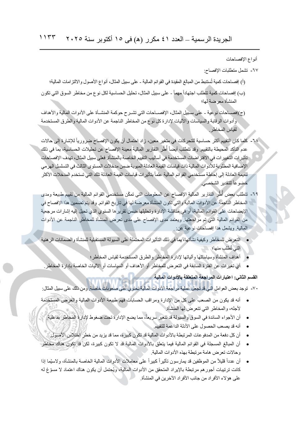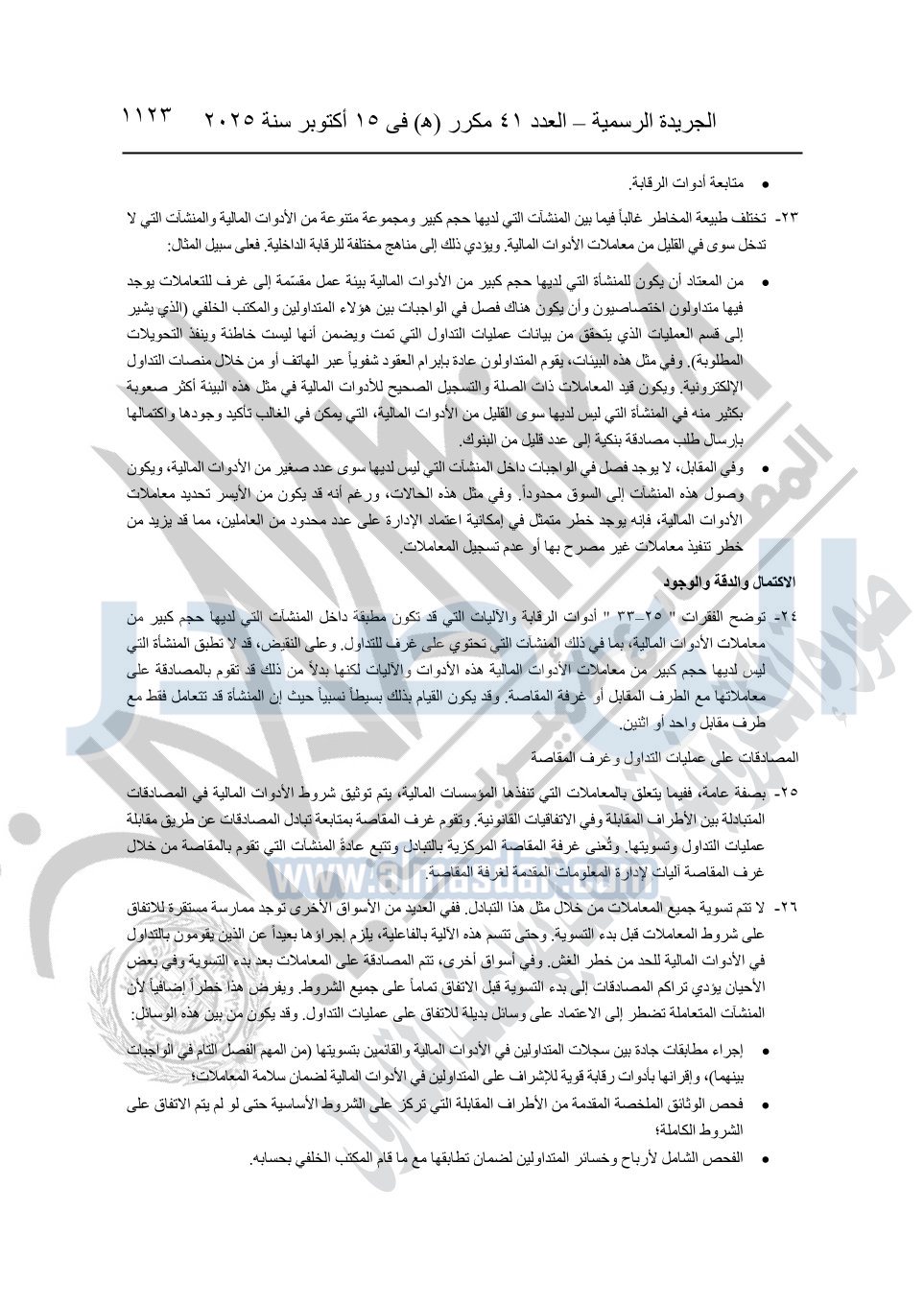 أوضحت الجريدة الرسمية أن القرار جاء بعد الاطلاع على الدستور؛ وعلى قانون شركات المساهمة وشركات التوصية بالأسهم والشركات ذات المسئولية المحدودة وشركات الشخص الواحد الصادر بالقانون رقم 159 لسنة 1981؛ وعلى قانون سوق رأس المال الصادر بالقانون رقم 95 لسنة 1992.