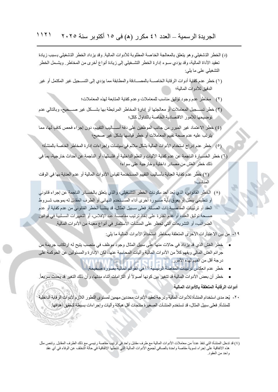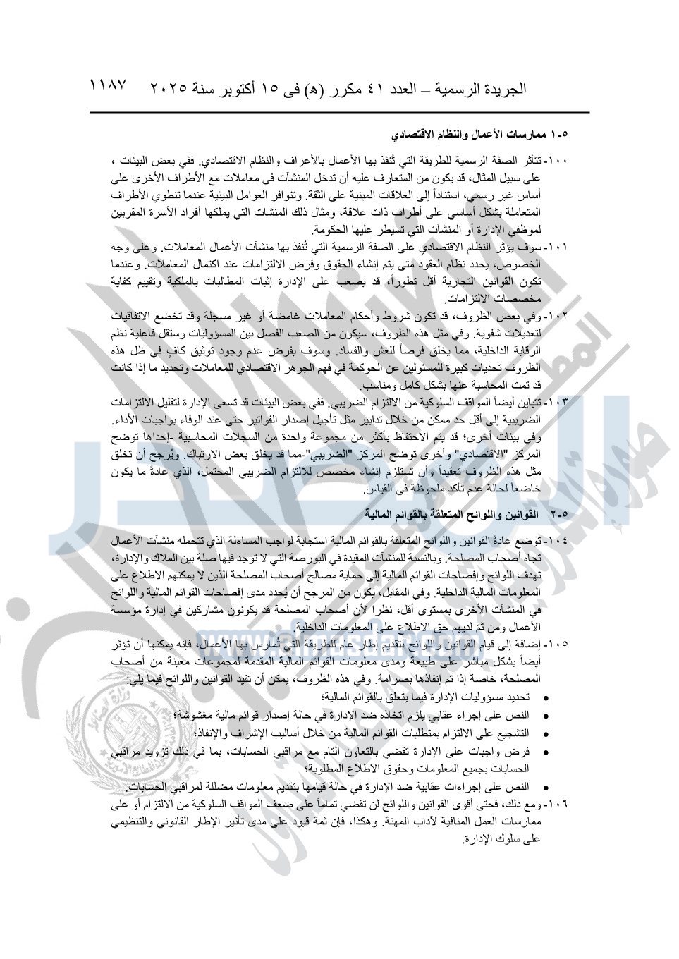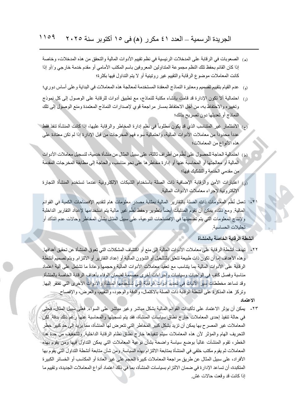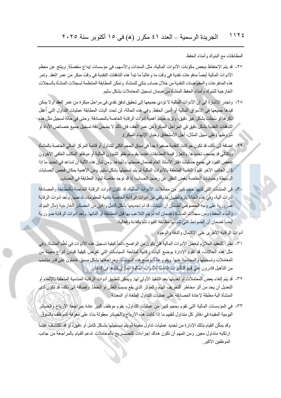 أوضحت الجريدة الرسمية أن القرار جاء بعد الاطلاع على الدستور؛ وعلى قانون شركات المساهمة وشركات التوصية بالأسهم والشركات ذات المسئولية المحدودة وشركات الشخص الواحد الصادر بالقانون رقم 159 لسنة 1981؛ وعلى قانون سوق رأس المال الصادر بالقانون رقم 95 لسنة 1992.