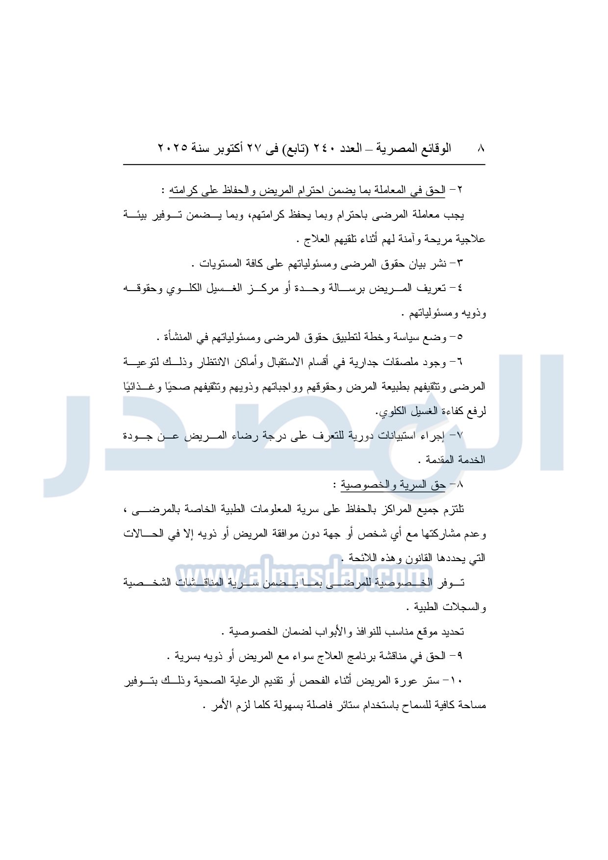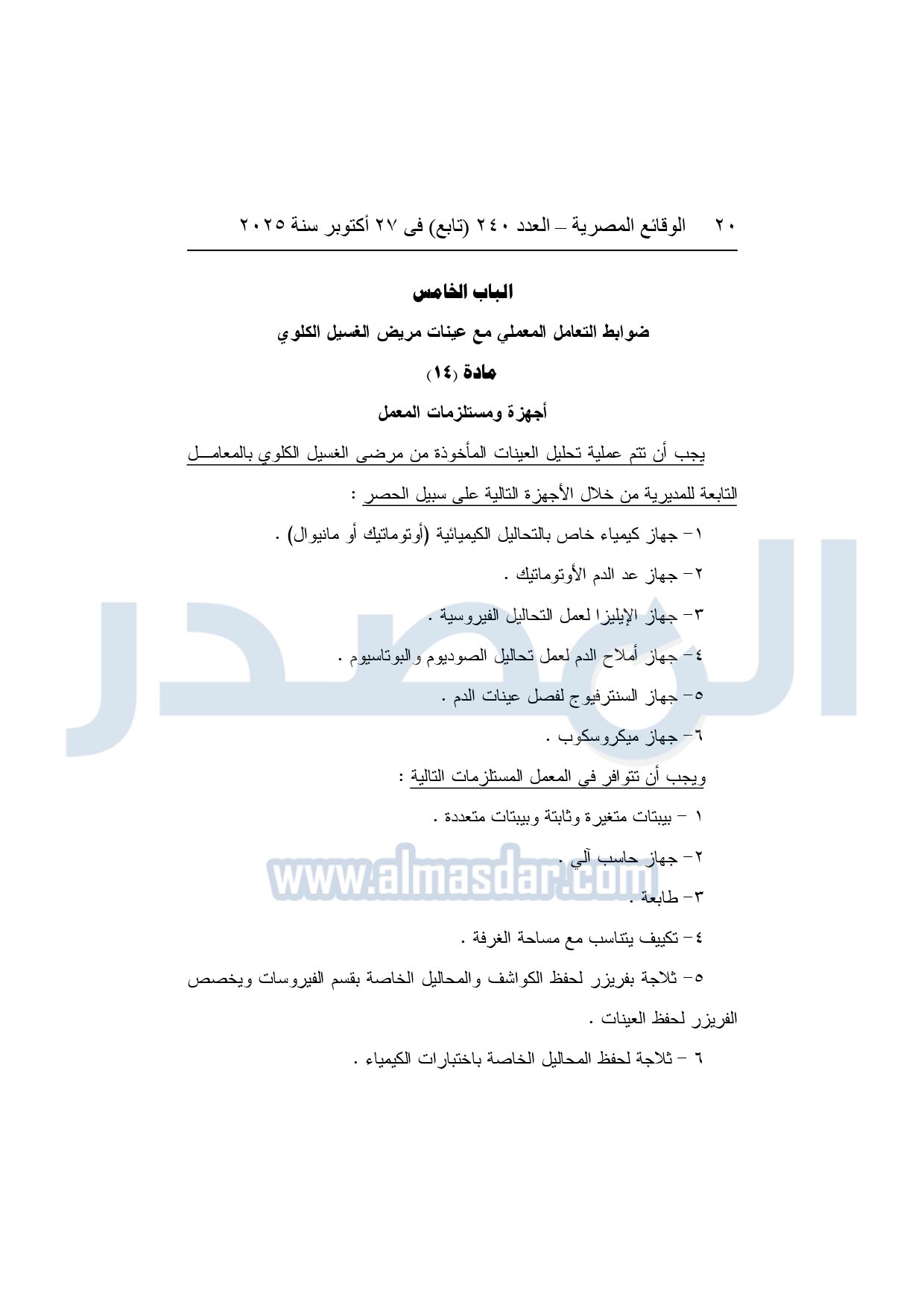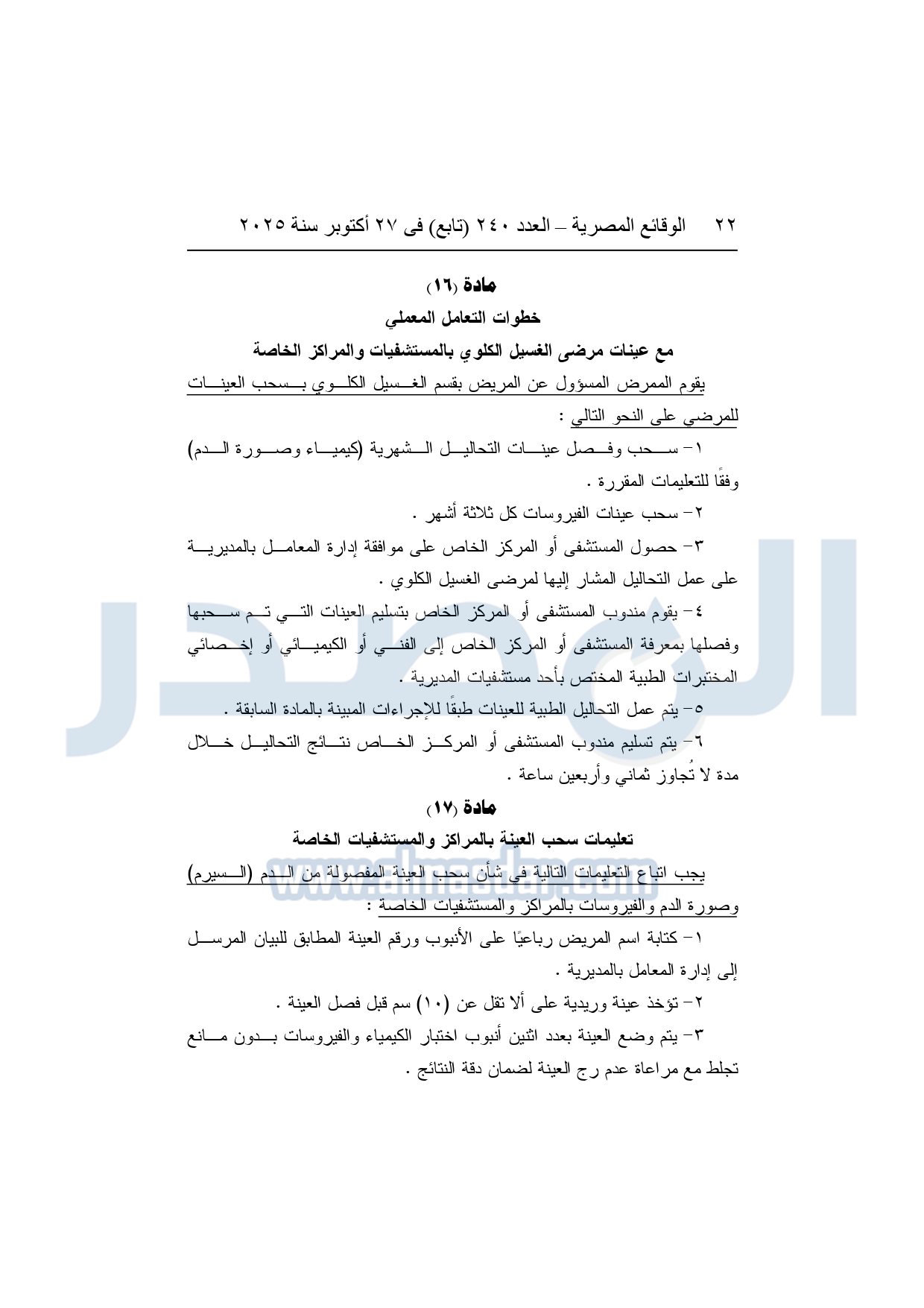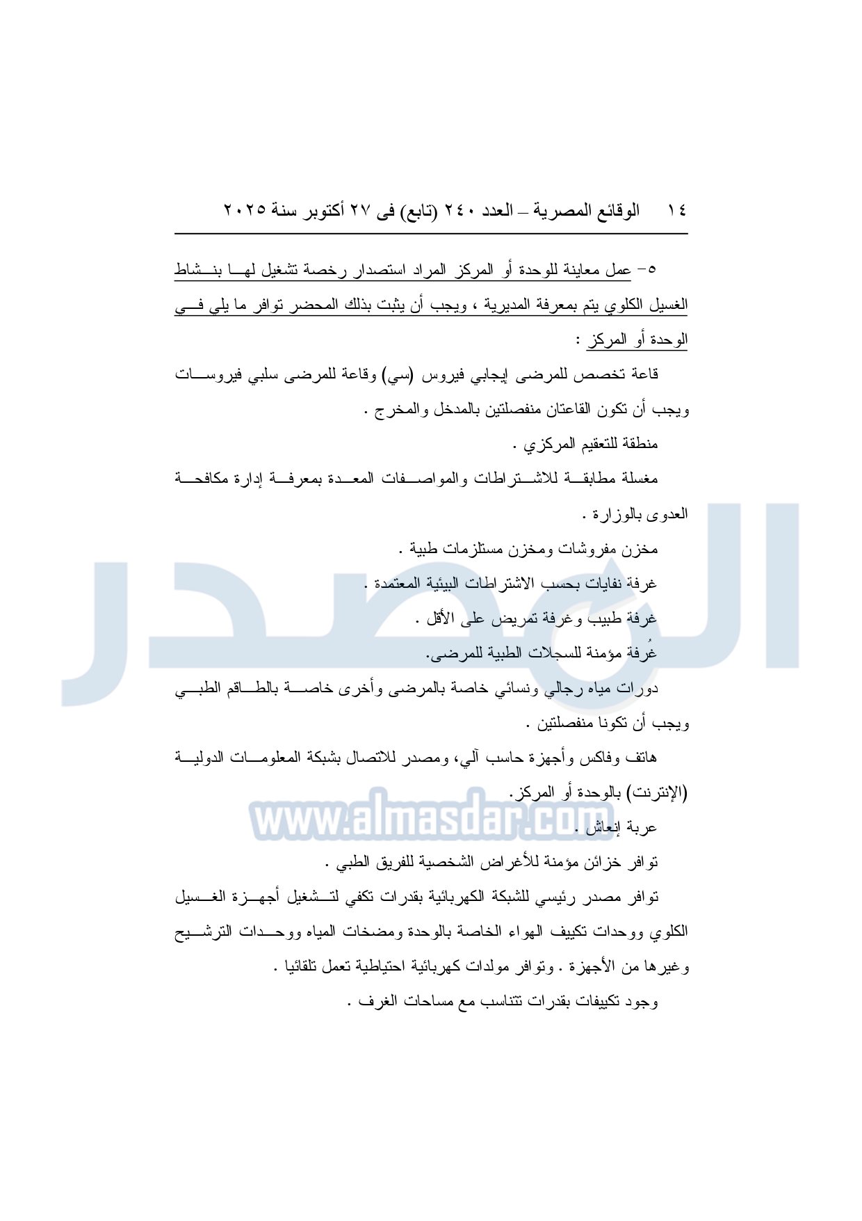 نشرت الوقائع المصرية في العدد 240 "تابع"، بتاريخ 27 أكتوبر 2025، قرار محافظة الجيزة، رقم 1607 لسنة 2025، بشأن العمل بأحكام اللائحة المرافقة في شأن تنظيم العمل بمراكز ووحدات الغسيل الكلوي بمحافظة الجيزة.