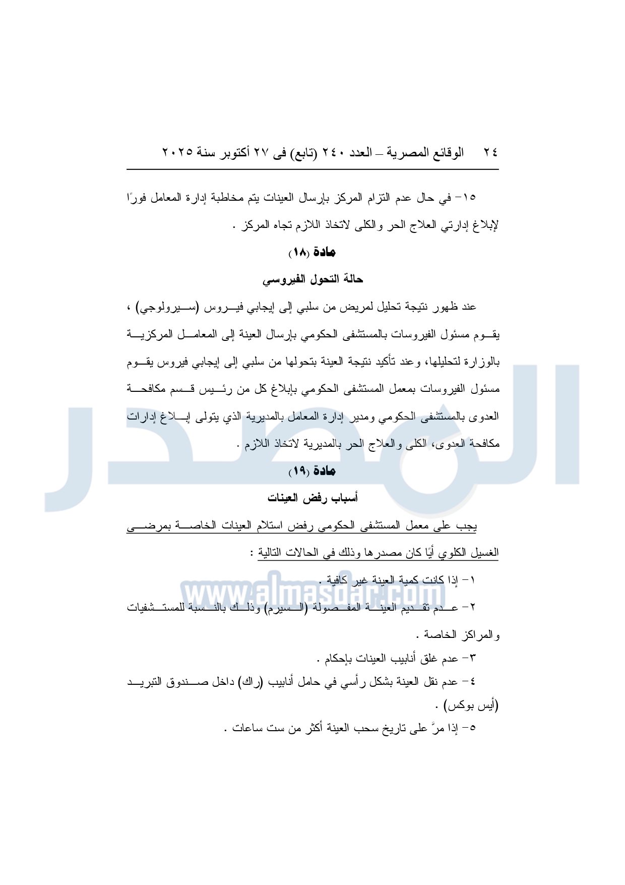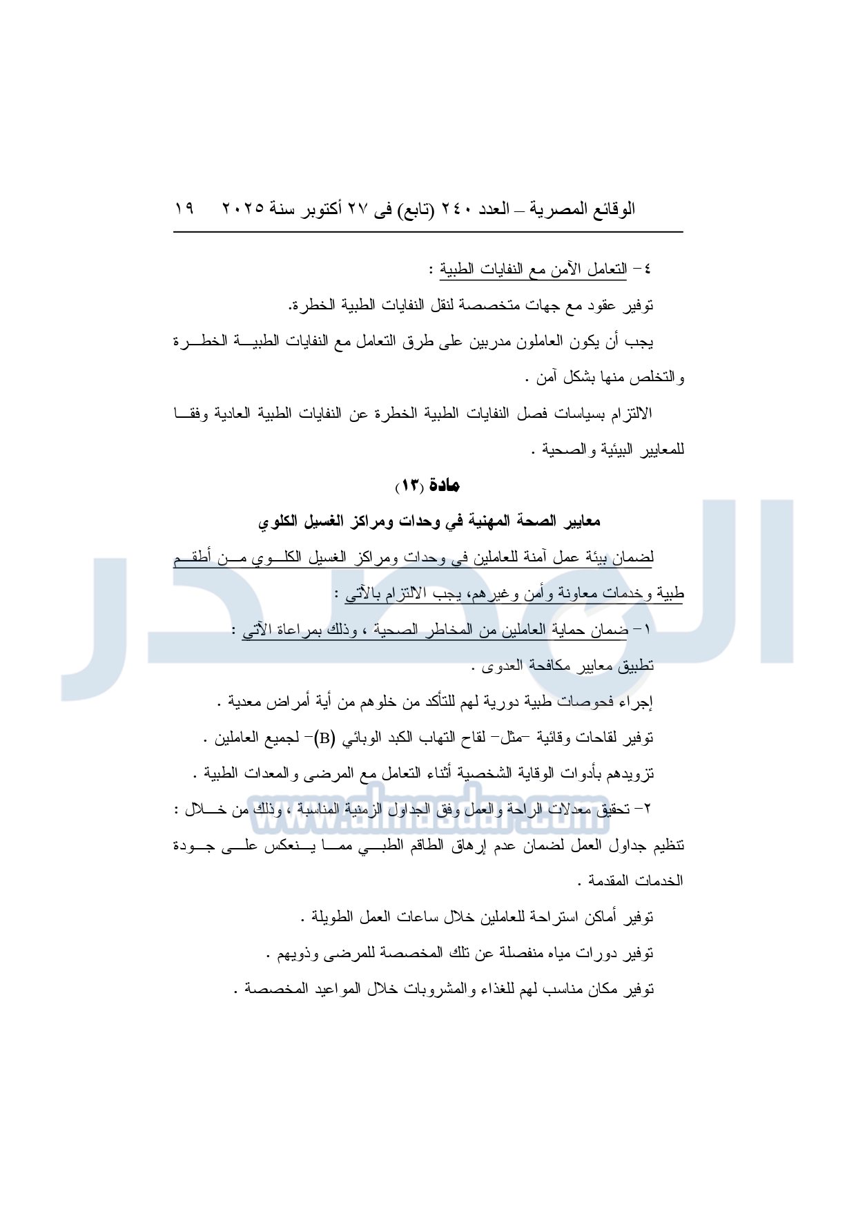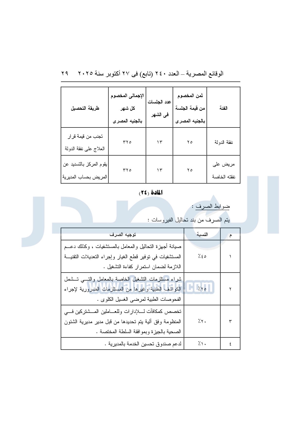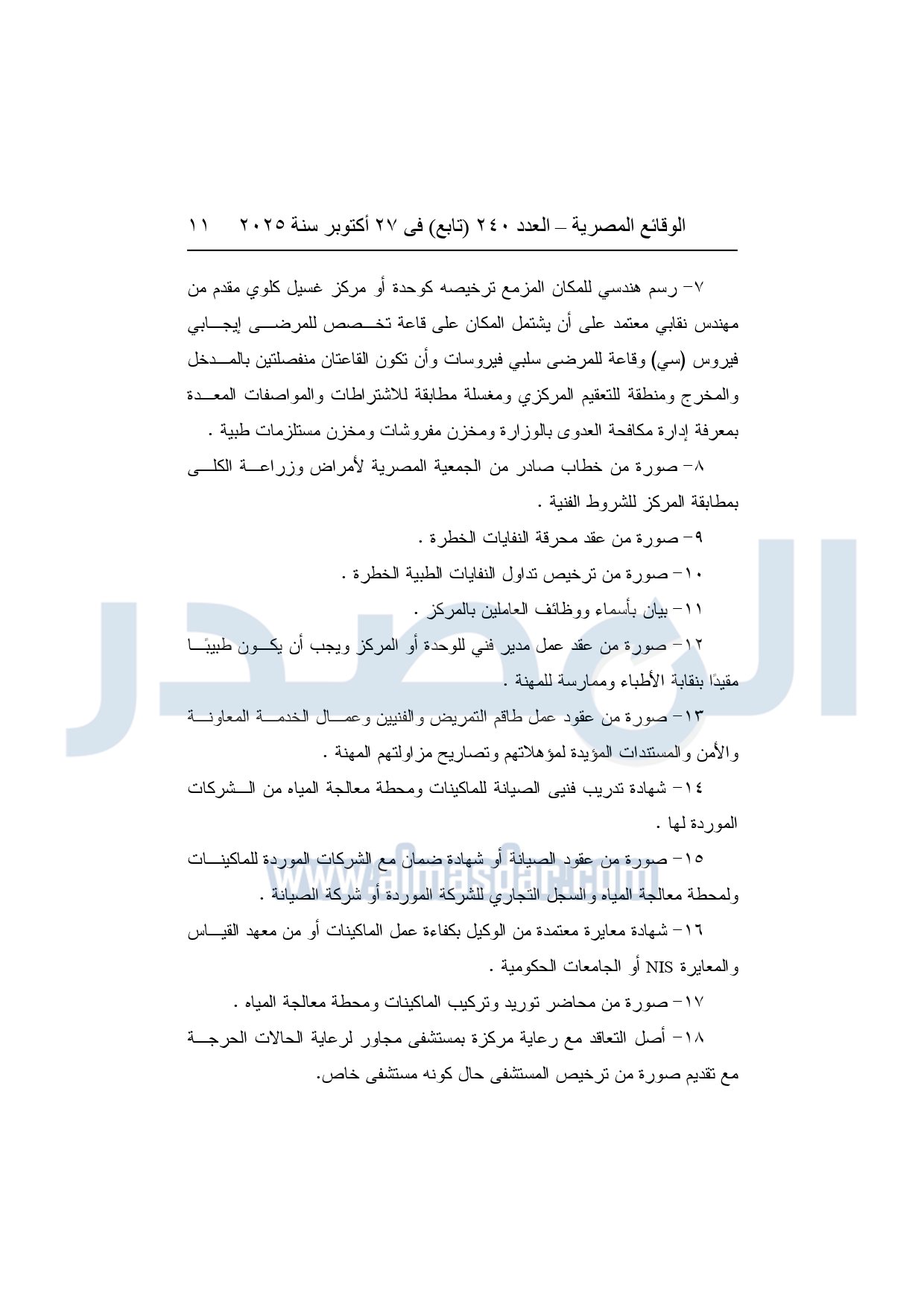 نشرت الوقائع المصرية في العدد 240 "تابع"، بتاريخ 27 أكتوبر 2025، قرار محافظة الجيزة، رقم 1607 لسنة 2025، بشأن العمل بأحكام اللائحة المرافقة في شأن تنظيم العمل بمراكز ووحدات الغسيل الكلوي بمحافظة الجيزة.