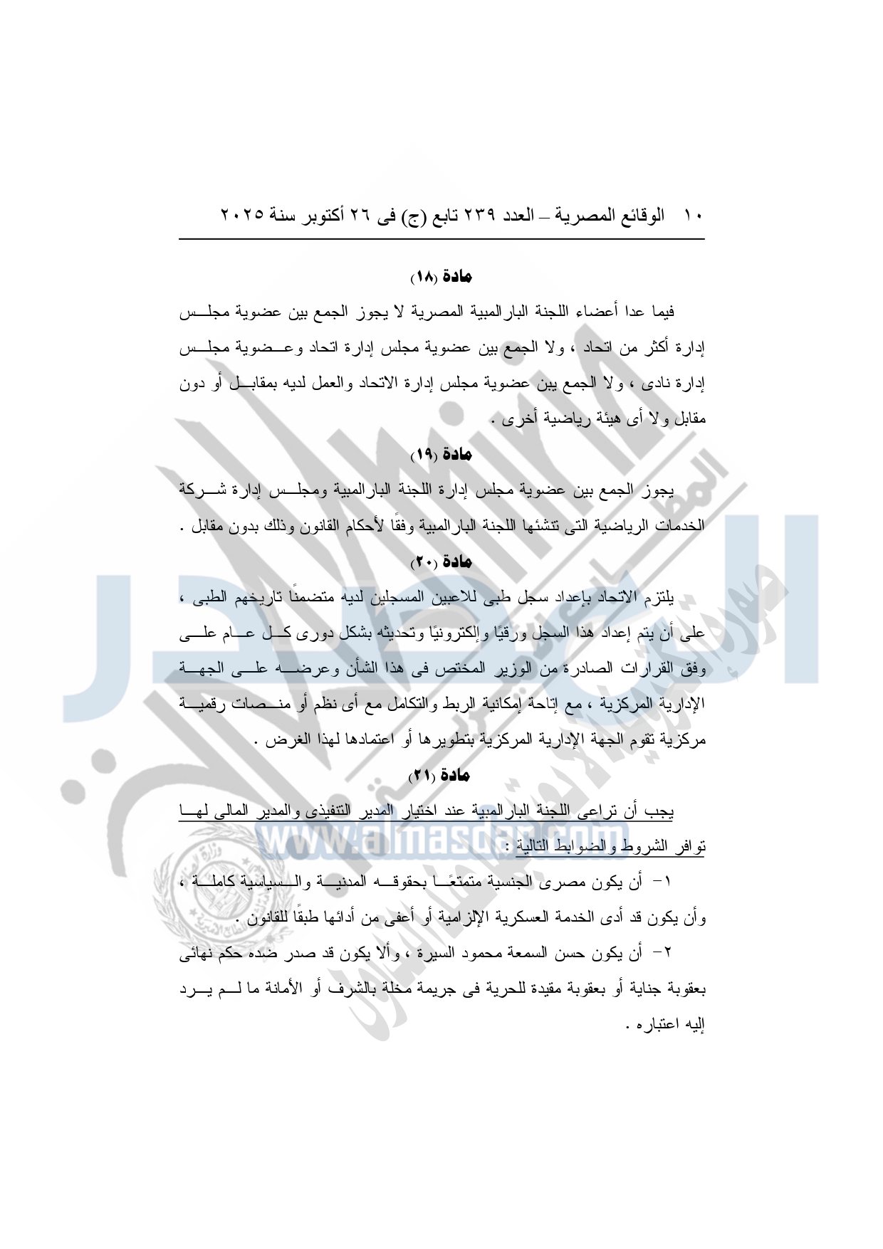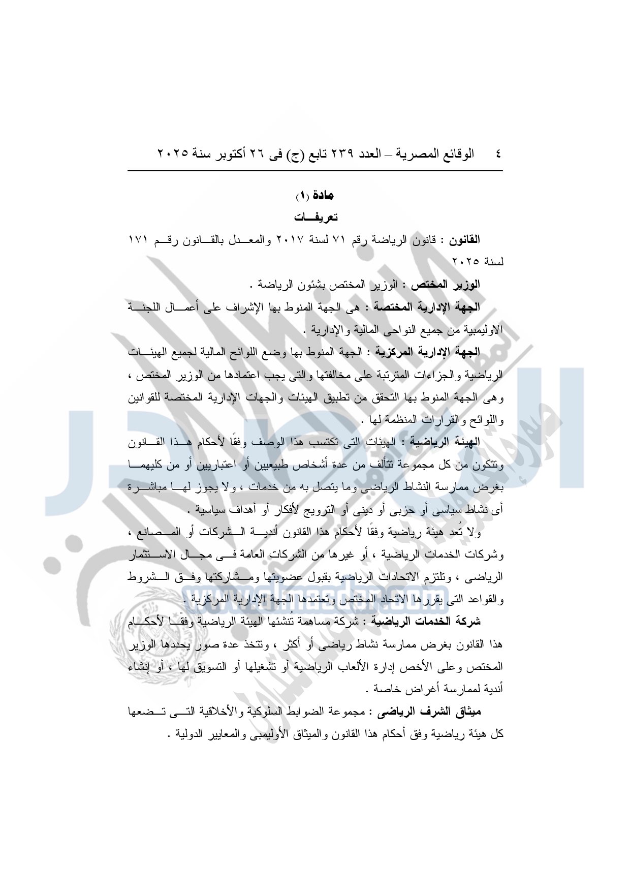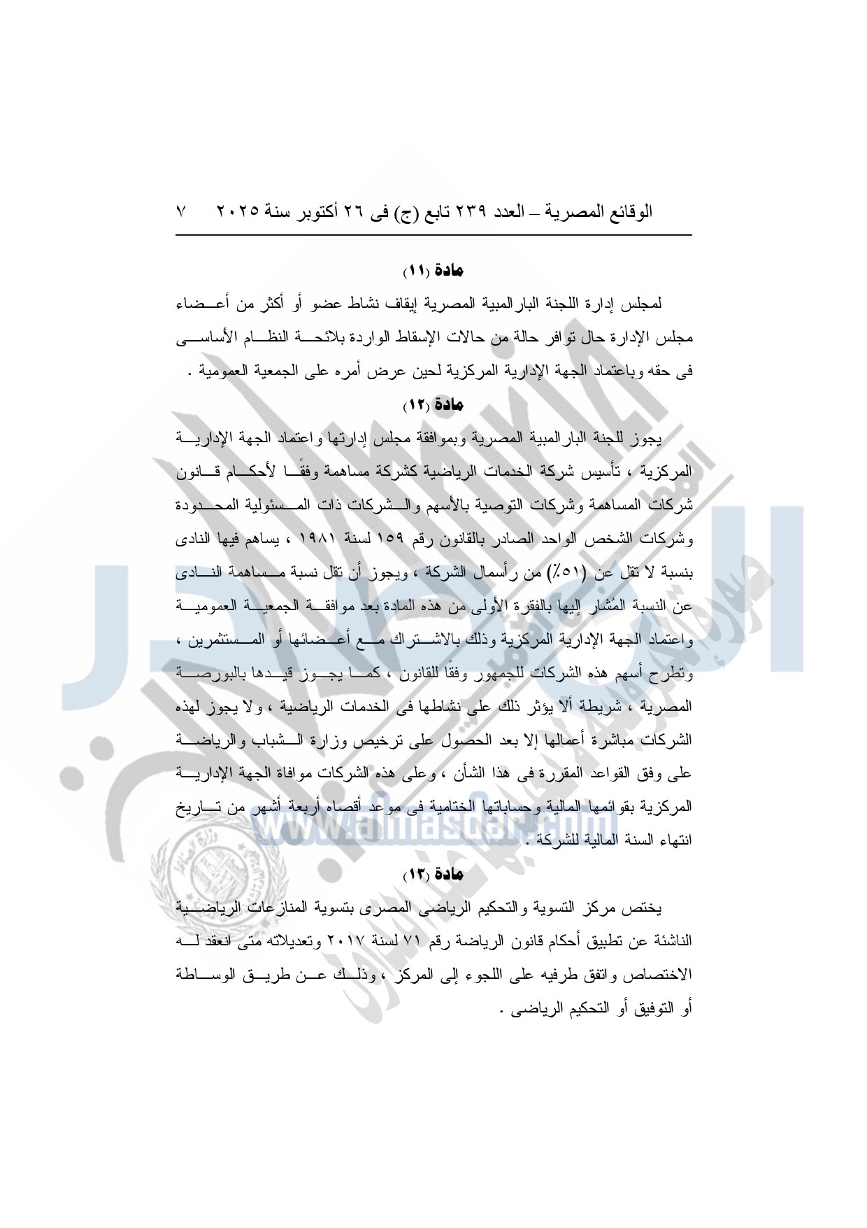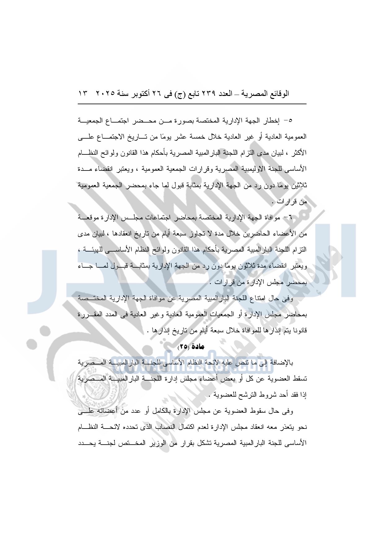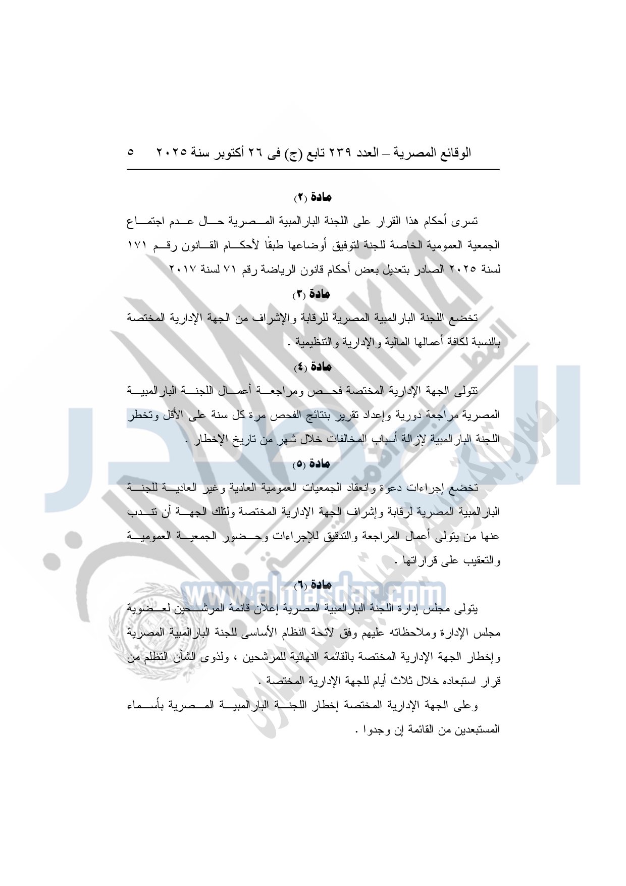 تعتمد ضوابط تعديل بعض أحكام النظام الأساسي للجنة البارالمبية المصرية وفقًا للقانون رقم 171 لسنة 2025.