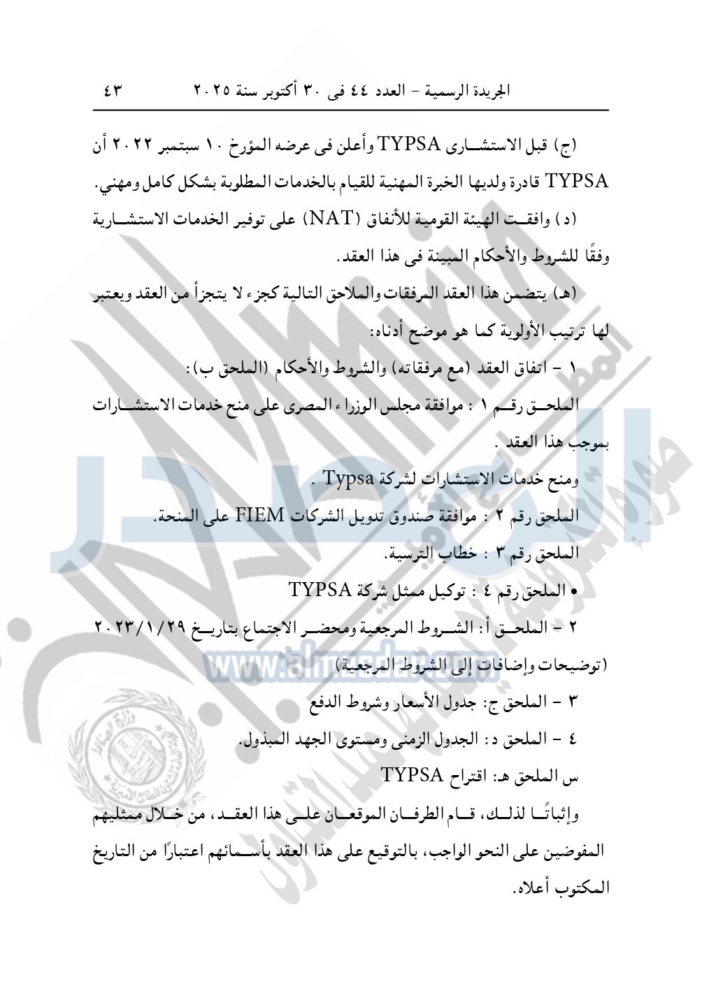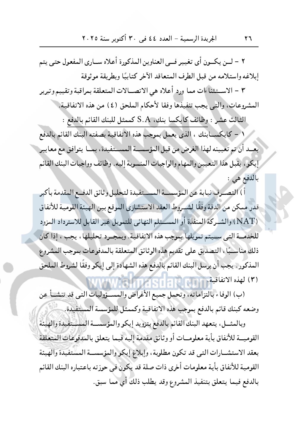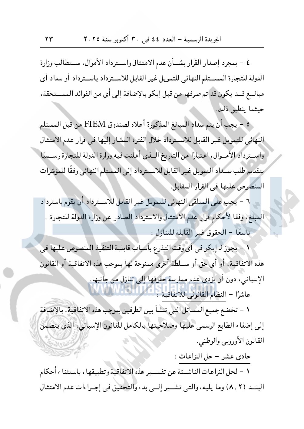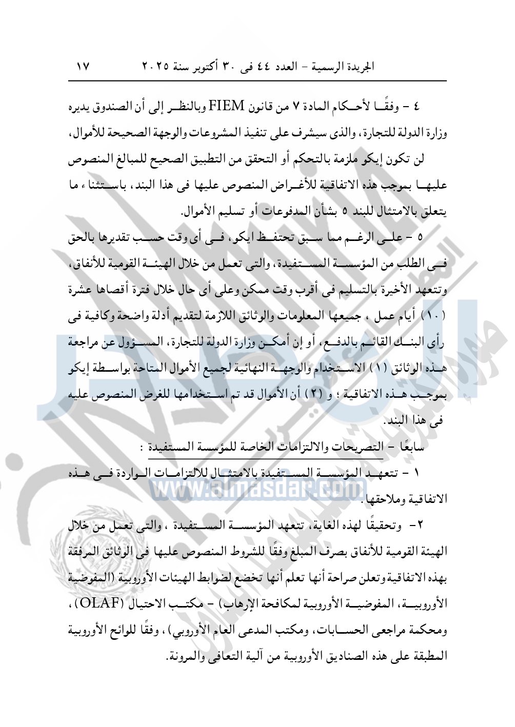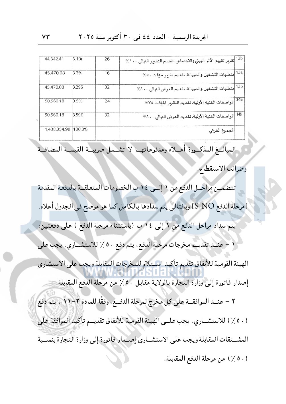 نشرت الجريدة الرسمية، في العدد 44 في 30 أكتوبر سنة 2025، قرار رئيس جمهورية مصر العربية، رقم 145 لسنة 2025، بشأن الموافقة على الاتفاق التمويلي للمنحة غير القابلة للاسترداد لتمويل «دراسة الجدوى الأولية لمشروع امتداد الخط الأول لمترو القاهرة "المرج الجديدة - شبين القناطر"» بين حكومة جمهورية مصر العربية والحكومة الإسبانية.