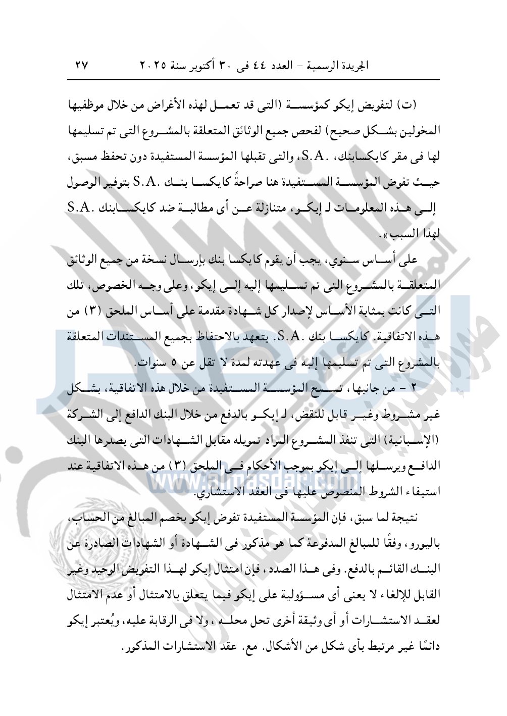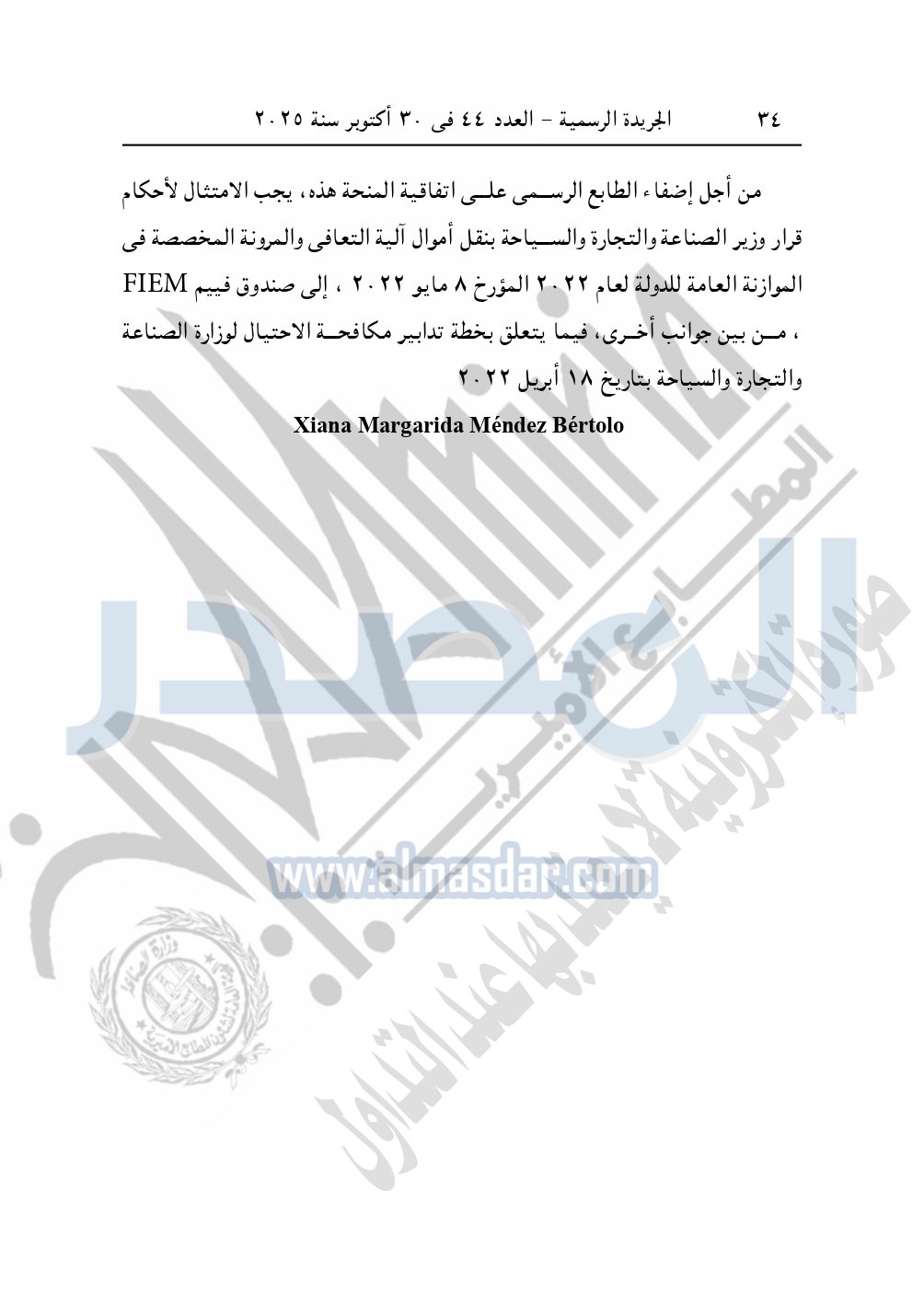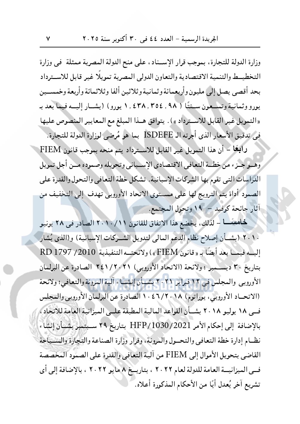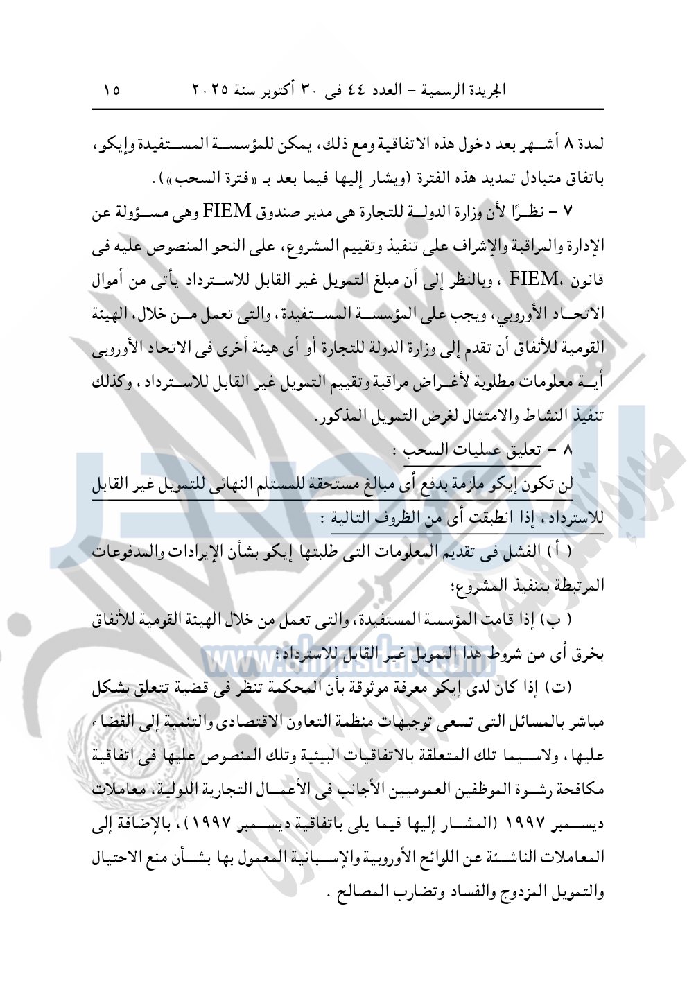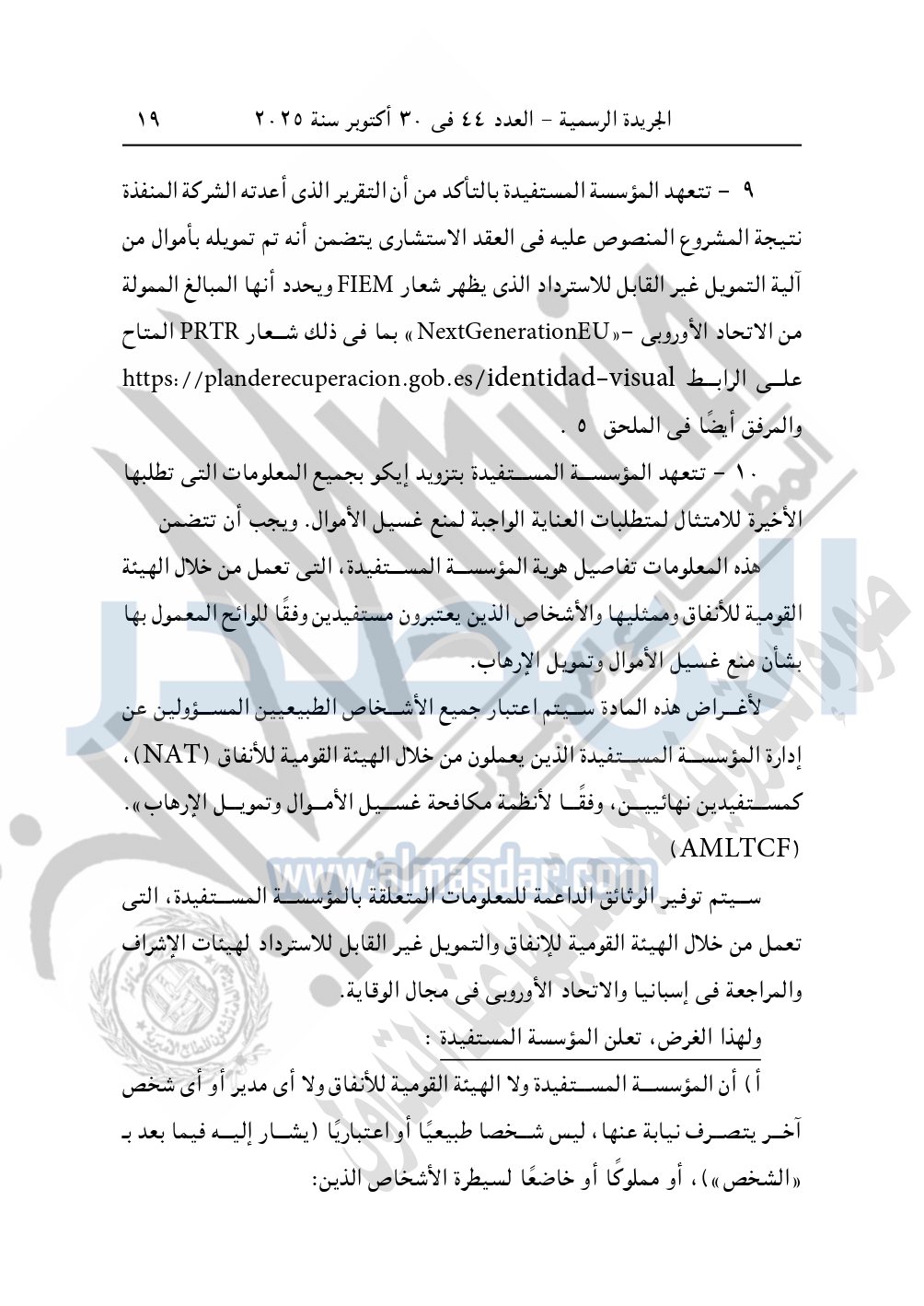 أوافق على الاتفاق التمويلي للمنحة غير القابلة للاسترداد لتمويل «دراسة الجدوى الأولية لمشروع امتداد الخط الأول لمترو القاهرة "المرج الجديدة - شبين القناطر"» بين حكومة جمهورية مصر العربية والحكومة الإسبانية، وذلك مع التحفظ بشرط التصديق.