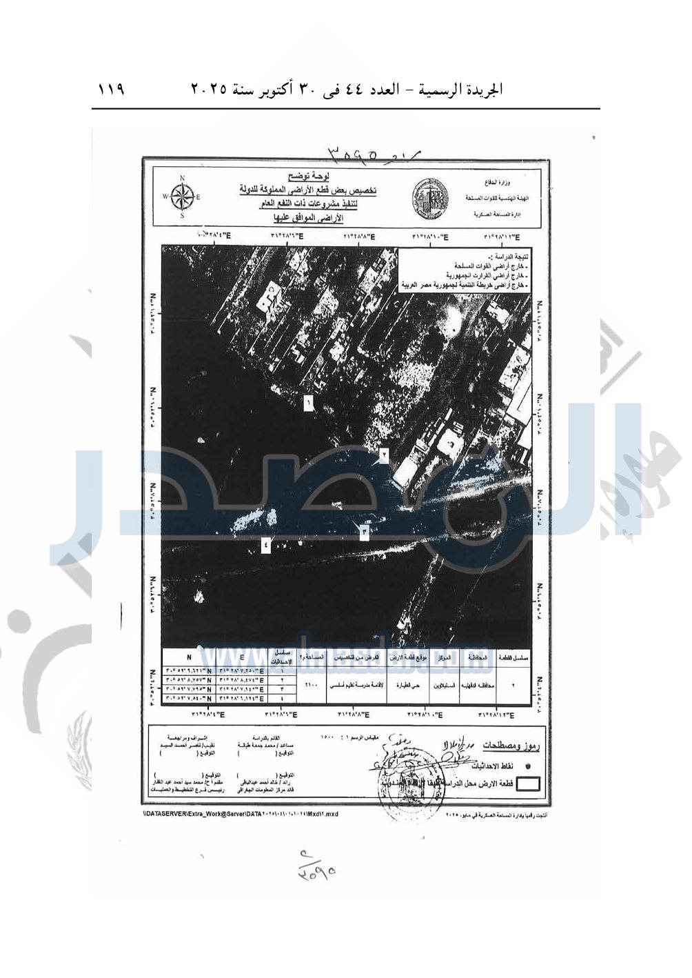 كما نشرت الجريدة الرسمية في العدد 44، بتاريخ 30 أكتوبر 2025، قرار رئيس مجلس الوزراء، رقم 3595 لسنة 2025، بشأن تخصيص قطعة أرض لصالح مديرية التربية والتعليم بمحافظة الدقهلية.