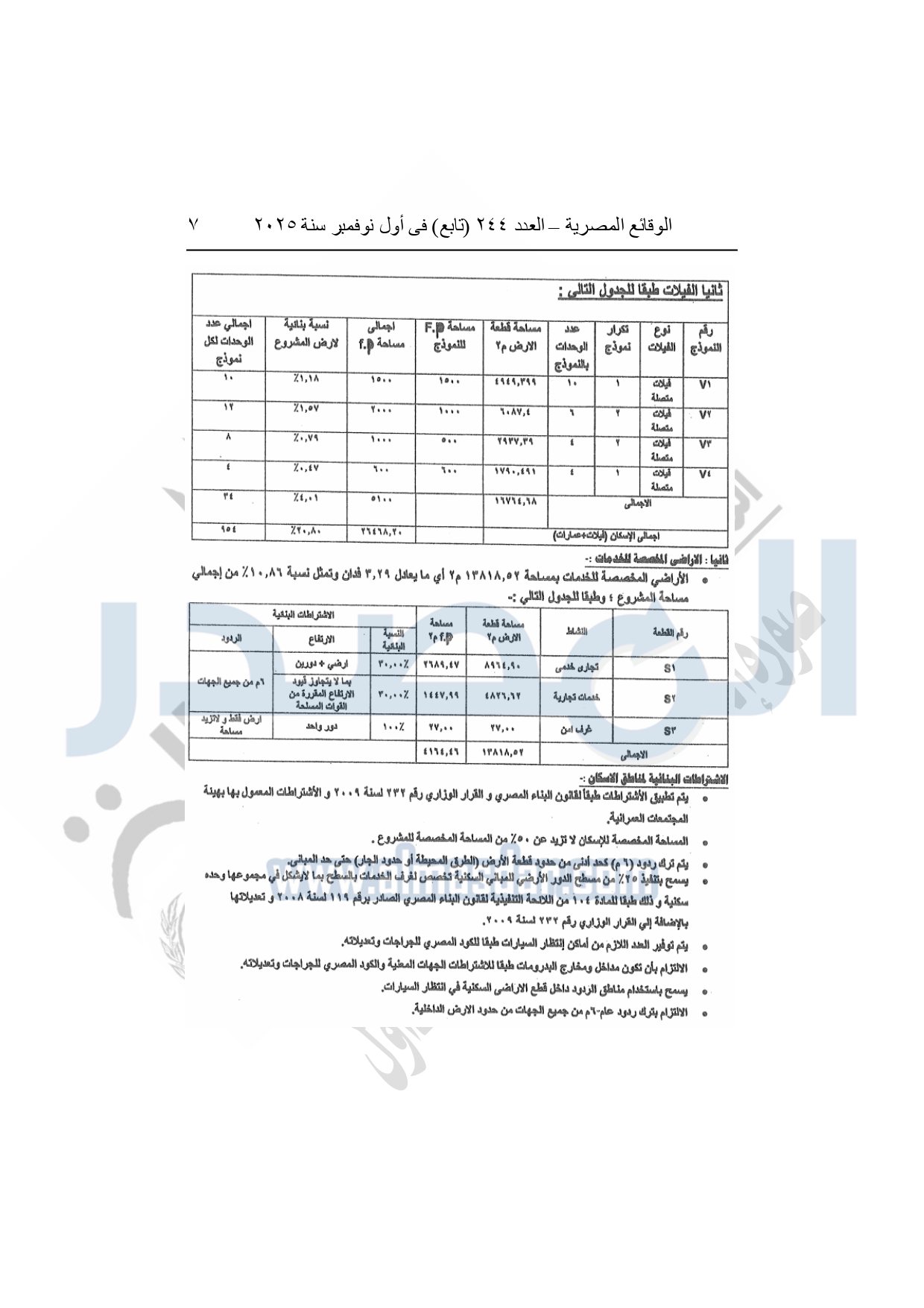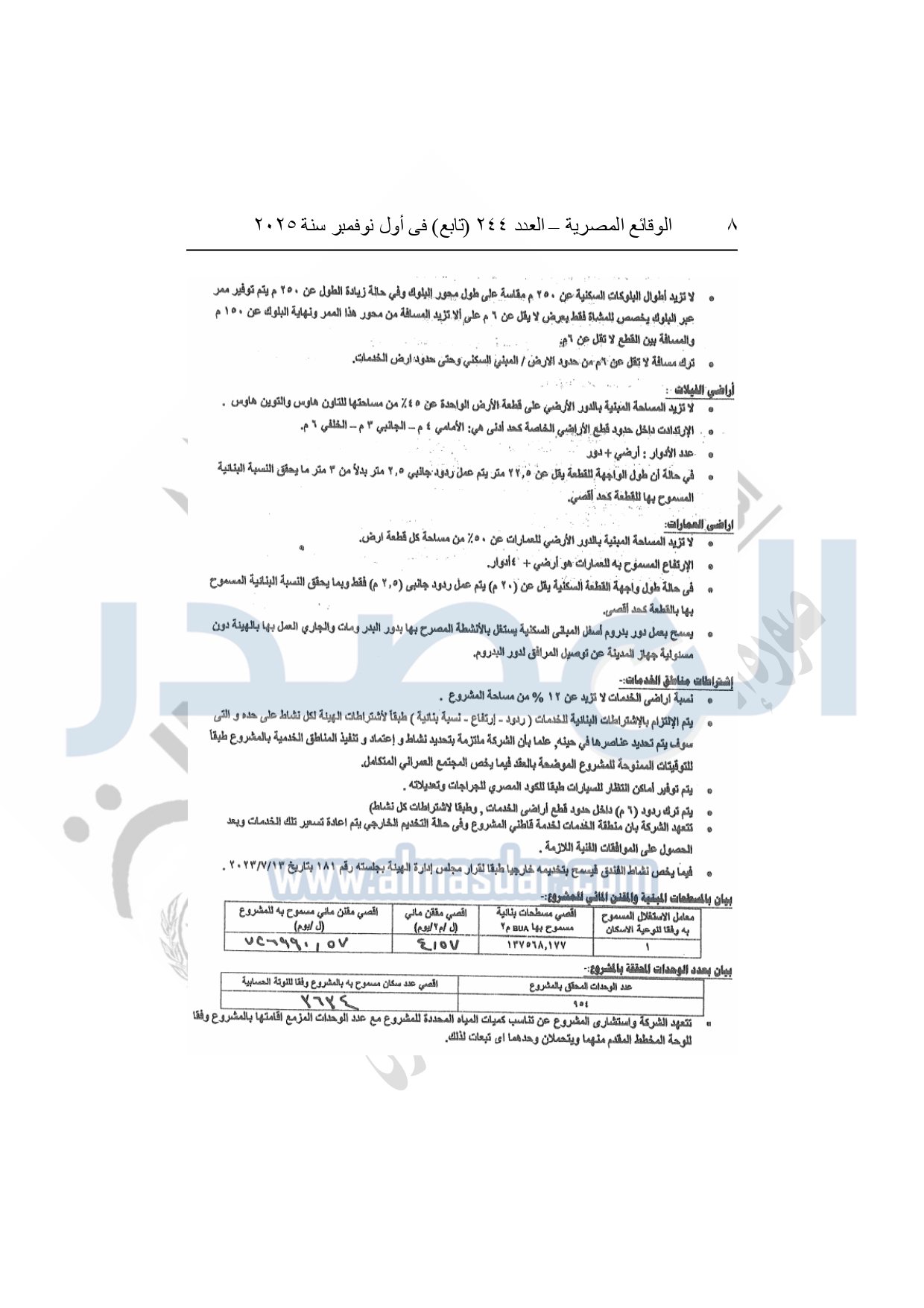 تلتزم الشركة المخصص لها قطعة الأرض بالاشتراطات البنائية المعمول بها كحد أقصى وبشرط عدم تجاوز قيود الارتفاع المسموح بها من قبل وزارة الدفاع.