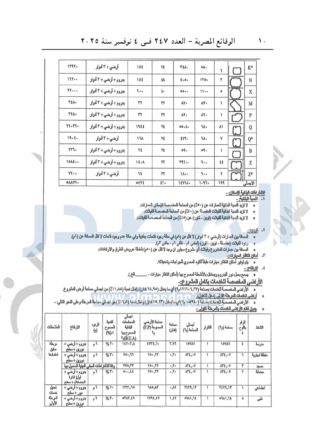تلتزم الشركة المخصص لها قطعة الأرض بالاشتراطات البنائية المعمول بها كحد أقصى وبشرط عدم تجاوز قيود الارتفاع المسموح بما من قبل وزارة الدفاع.