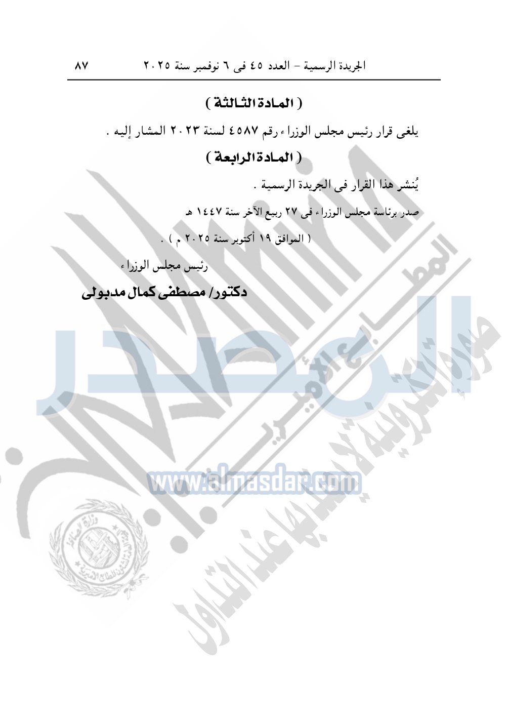 يلغى قرار رئيس مجلس الوزراء رقم 4587 لسنة 2023 المشار إليه.