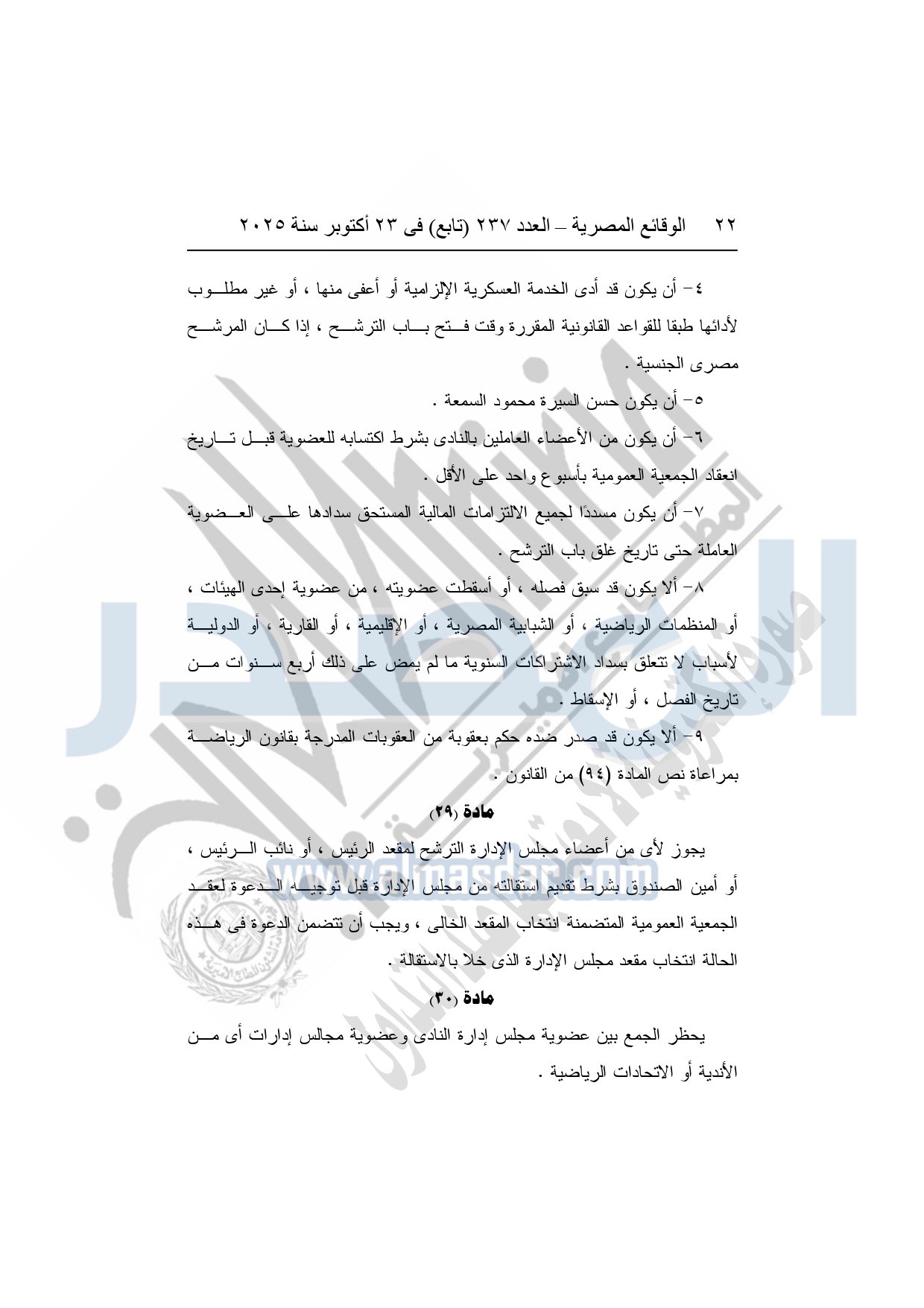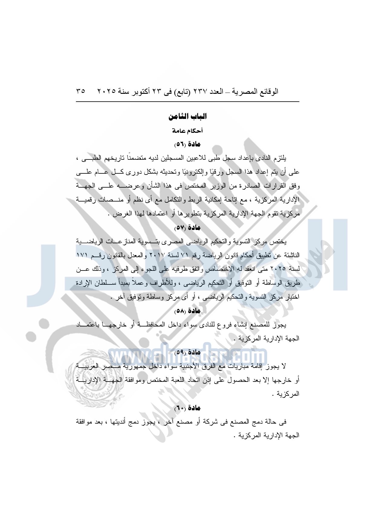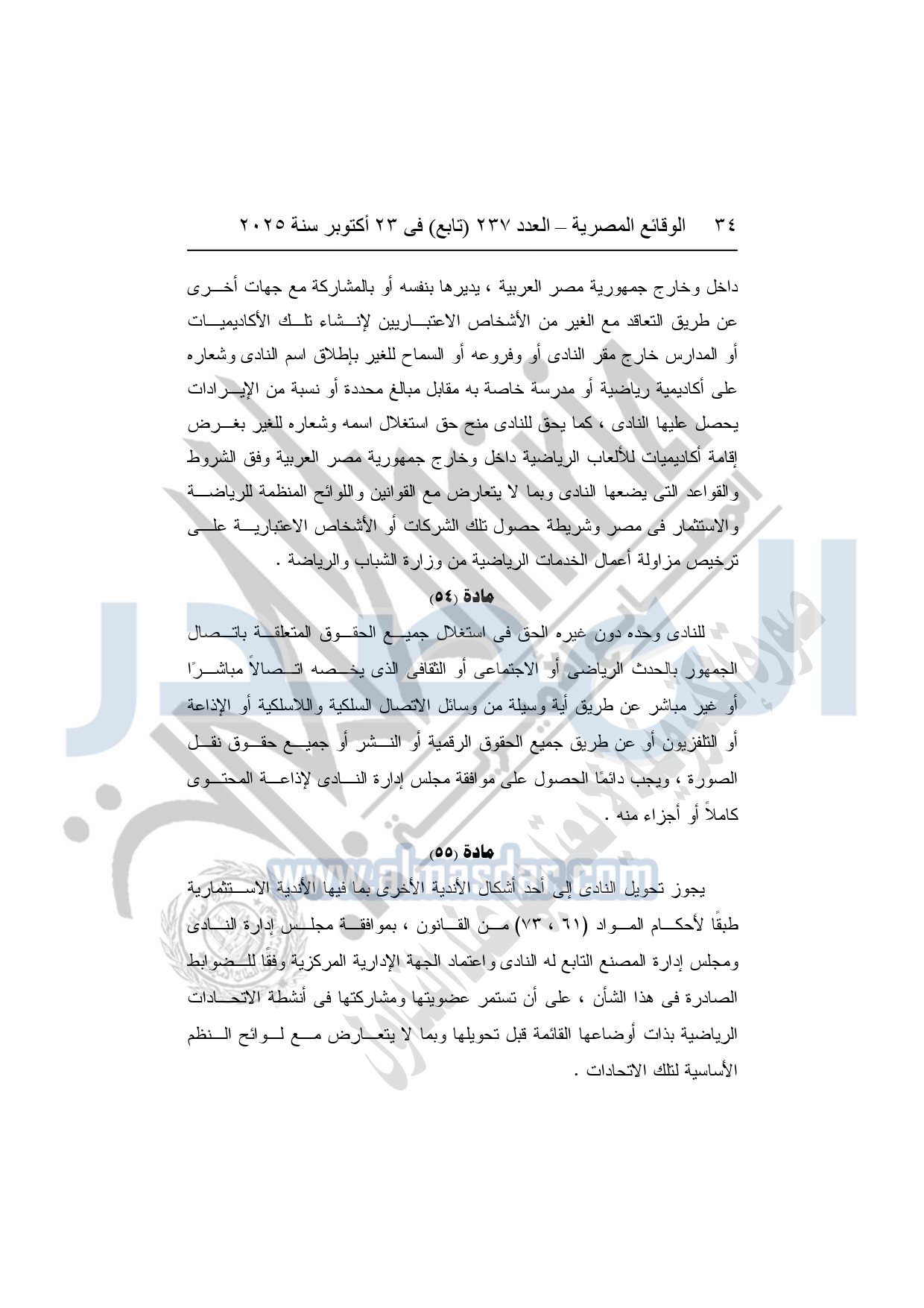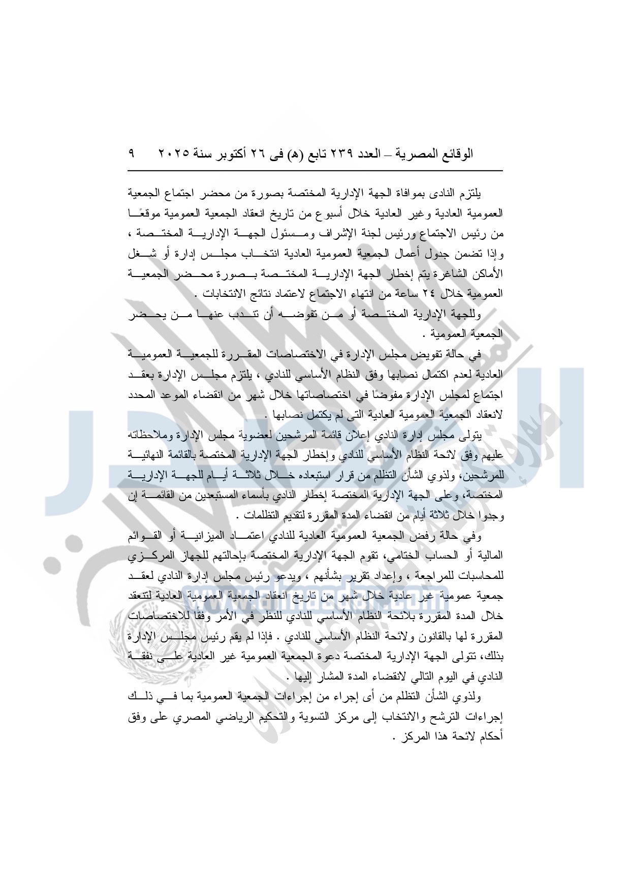 كما نشرت الوقائع المصرية في العدد 237 "تابع"، بتاريخ 23 أكتوبر 2025، قرار وزارة الشباب والرياضة، رقم 1400 لسنة 2025، بتاريخ 15-10-2025، بشأن اعتماد لائحة النظام الأساسي لنادي سيلا الريا.