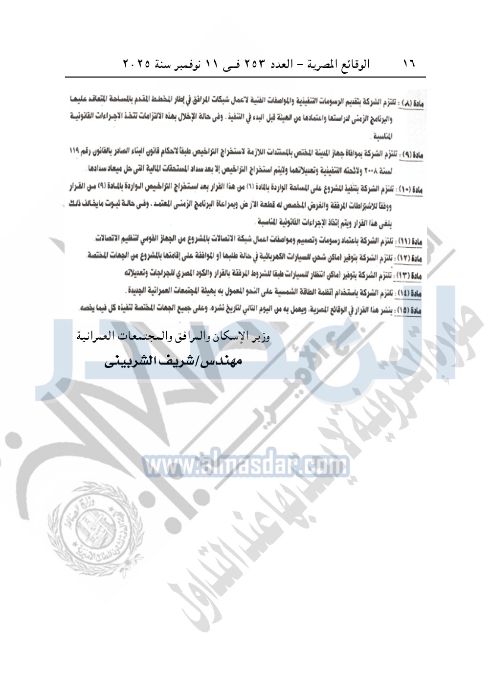 تلتزم الشركة واستشارى المشروع بمسئوليتهما عن تناسب كمية المياه المقررة للمشروع مع عدد الوحدات المزمع إقامتها وفقا للوحة المخطط المقدمة منهما وتحملهما وحدهما اية تبعيات لذلك ودون أدنى مسئولية على الهيئة أو الجهاز.