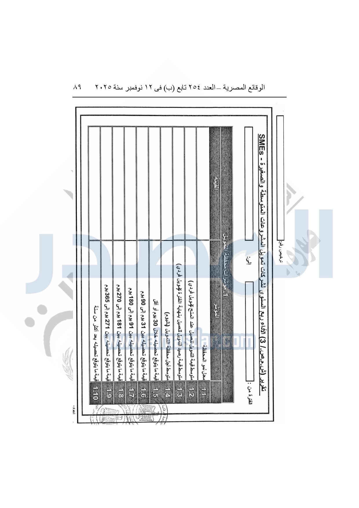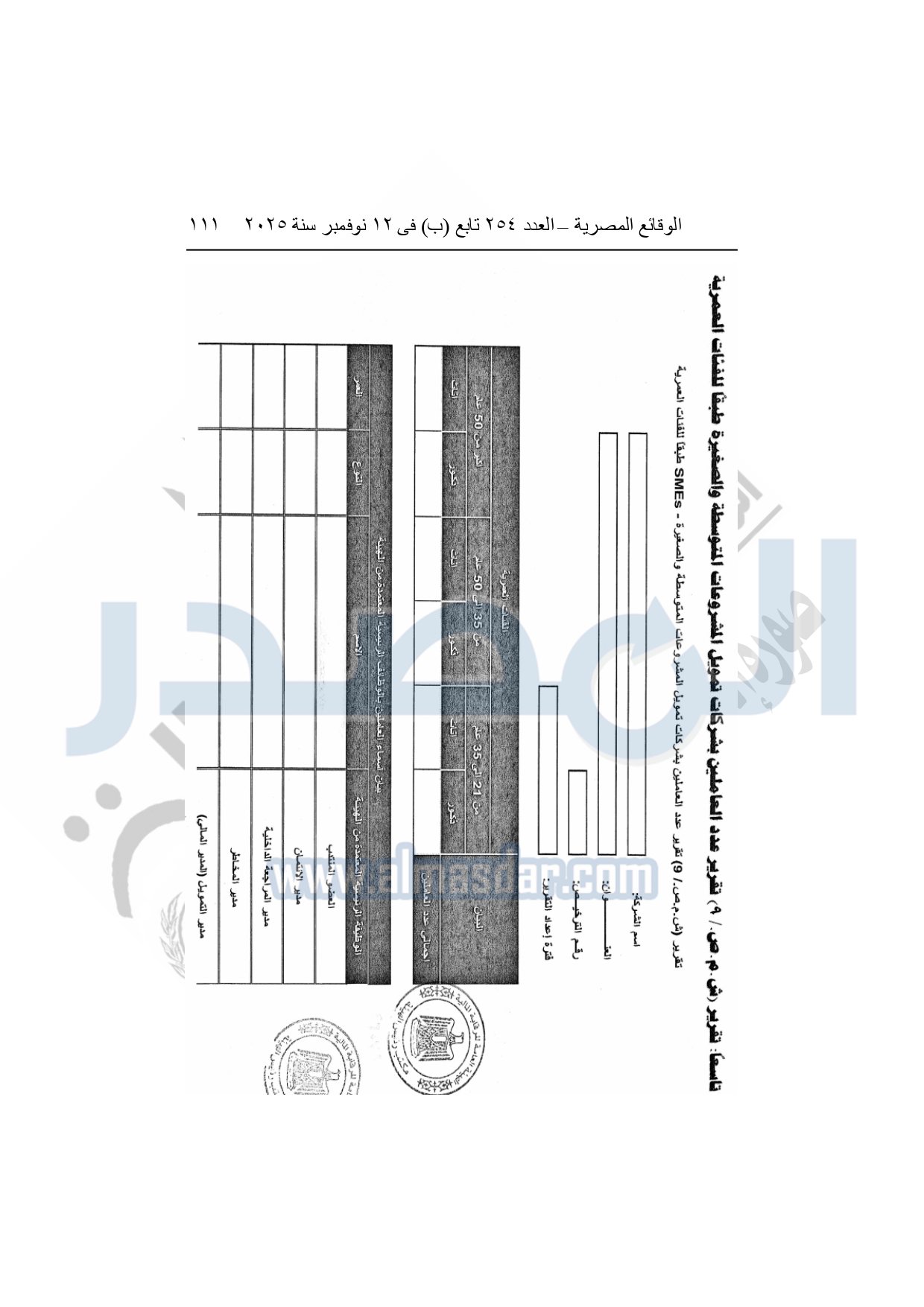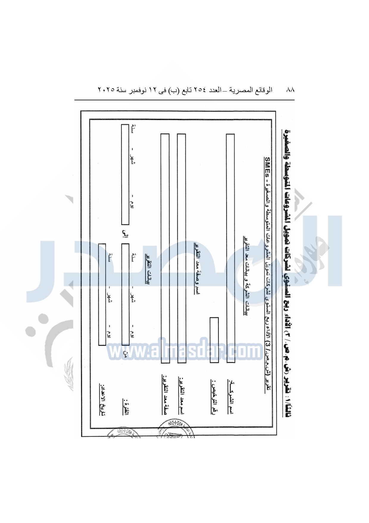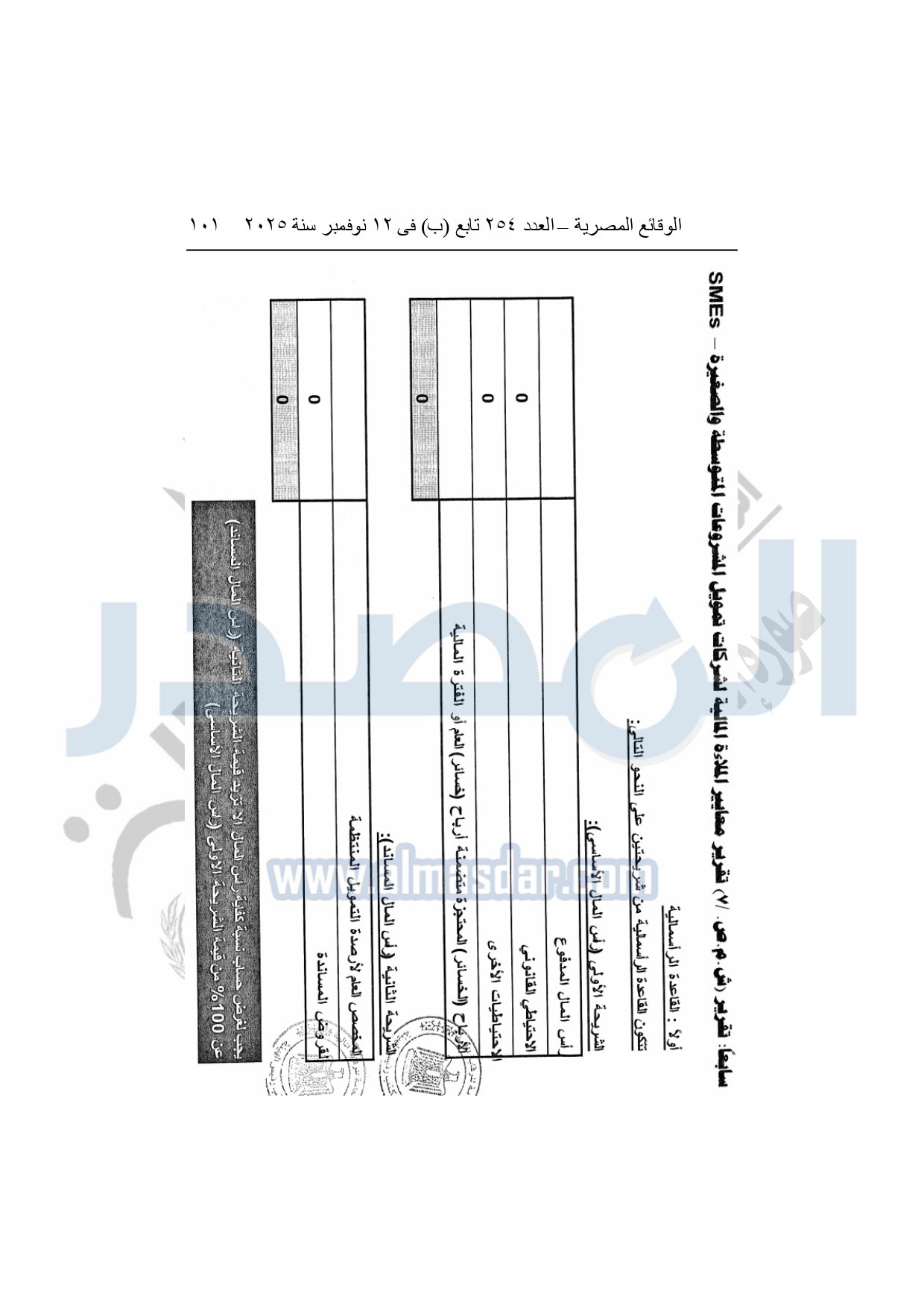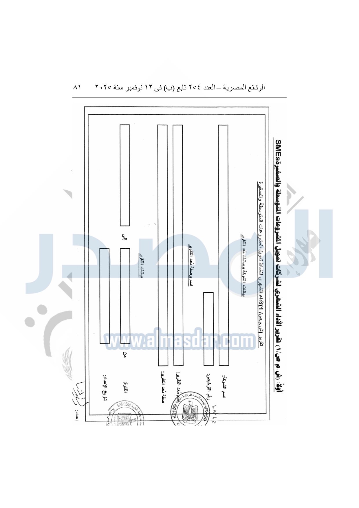نشرت الوقائع المصرية في العدد 254 "تابع"، الصادر في 12 نوفمبر 2025، قرار الهيئة العامة للرقابة المالية، رقم 245 لسنة 2025، بتعديل قرار مجلس إدارة الهيئة رقم 211 لسنة 2020، بشأن قواعد وضوابط مزاولة نشاط تمويل المشروعات المتوسطة والصغيرة للشركات المرخص لها بمزاولة هذا النشاط ومعايير الملاءة المالية وقواعد الرقابة والإشراف عليها.